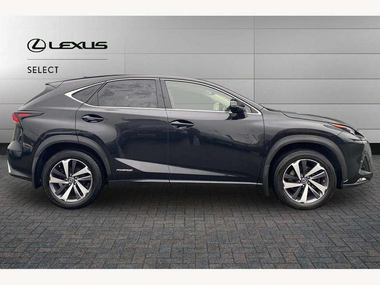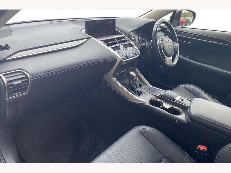 8" colour display screen, Adaptive cruise control + pre-crash system, Analogue clock, Blind spot monitoring, Bluetooth telephone connectivity, Drive mode selector, Electric speed sensitive power steering, Head up Display, Intelligent park assist, Lane keep assist, Multimedia display, Premium navigation system, Push button starter, Rear cross traffic alert, Remote touch interface, Service interval indicator, Surround camera system, Traffic sign recognition, Trip computer, VDIM, Vehicle Stability Control (VSC), Aux input, DAB Digital radio, DVD System, Mark Levinson audio with 14 speakers, Steering wheel mounted audio controls, USB connection, Adaptive high beam assist, Body colour bumpers, Chrome grille surround, Door mirror memory, Electric windows-anti jam+driver side one touch, Electric/heated/folding door mirrors, Electrochromatic rear view mirror, Headlight washers, Illuminated door handles, LED daytime running lights, LED front fog lights with static cornering light function, LED Headlights, LED rear lights, Privacy glass, Puddle lights in exterior door handles, Rain sensor windscreen wipers, Rear wiper, Roof rails, Roof spoiler, Shark fin roof aerial, 12V socket in centre console and luggage area, 2 cupholders in front centre console, 3 spoke heated leather steering wheel, 60/40 split folding rear seat, 8 way electrically adjustable front seats, Adjustable height seatbelt anchor, Adjustable rear seat backrest, Aluminium scuff plates, Centre armrest with storage box, Driver seat memory function, Driver's electric adjustable lumbar support, Dual climate control air conditioning system, Electric adjustable steering column, Front and rear textile carpet mats, Front seat back map pockets, Heated and ventilated front seats, Heated rear seats, Heated steering wheel, Isofix child seat attachment, Leather gear lever, Leather upholstery, LED interior illumination, Rear air vents, Rear centre armrest with 2 cupholders, Rear headrests, Shopping hook in boot, Sliding sunvisors with illuminated vanity mirrors, Tie down hooks in luggage area, Convenience pack - NX, 3x3 point rear seatbelts, ABS, Active front headrests, Curtain airbags, Driver/Front Passenger airbags, Driver/front passenger side airbags, Drivers knee airbag, EBD + Brake Assist, Electronic parking brake, Front/rear seatbelt pre-tensioners, Hill start assist, Passenger airbag cut-off device, Traction control, Tyre pressure warning, Immobiliser, Locking wheel nuts, Remote central double locking, Smart card entry, Speed sensitive power door locks, Space saver spare wheel,