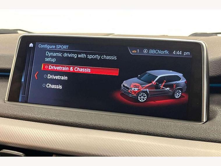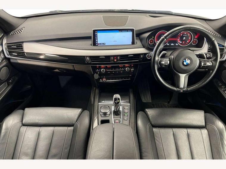20GB Hard drive, 6.5" colour display screen, BMW online + Apps interface, BMW remote services, BMW Teleservices, Brake force display, Check control system, iDrive controller and display with 10.2" colour display monitor, Lights on warning, On board computer, Outside temperature gauge, Park distance control, Professional multimedia navigation system, Real time traffic information, Remote tailgate release, Service interval indicator, Servotronic PAS, Stop/start button, Voice control system, Adaptive M suspension, Diesel particulate filter, Sport automatic transmission, Auxiliary point for auxiliary devices, BMW professional twin tuner radio with single CD player and MP3 CD playback facility, DAB Digital radio, Auto dimming rear view mirror, Auto upper tailgate release, Body colour bumpers, Body colour door handles, Body colour door mirrors, Chrome exhaust tailpipes, Clear indicator lenses, Door mirror integrated indicators, Double kidney grille with chrome surround and black slats, Downlights in exterior door handles, Electric folding/heated door mirrors + electrochromic on drivers side, Electric front/rear windows with anti-trap, Electric headlight adjustment, Follow me home headlights, Green tinted glass, Headlight washer jets, Heat insulated glass, Heated washer nozzles, Individual door sill finishers, Intermittent rear wash/wipe, M aerodynamic body kit, Rain sensor with auto light activation system, Two piece tailgate, 12V accessory power point in centre console, 12V socket in luggage compartment, 2 x 12V socket in rear centre console, 40:20:40 split folding rear seats, Ambient interior lighting, Anthracite Velour floor mats, Boot lashing points, Electric front seats + driver memory, Front and rear cupholders, Front armrest with storage bin, Front/rear courtesy lights with soft on/off dimming, Front/rear reading lights, Gearshift paddles on steering wheel, Heated front seats, Height adj rear head restraints, Illuminated glovebox with lock, Isofix child seat preparation, LED footwell lights, Luggage compartment cover, M leather steering wheel, Reach + rake adjustable steering column, Securing rings in luggage compartment, Storage bins on all doors, Sunvisors with illuminated vanity mirrors, Tilt/height adjustable front head restraints, Toolkit located in luggage compartment, Extended storage pack - X5, 3 rear 3 point seatbelts, ABS, ADB - Automatic Differential Brake, Automatic Stability Control (ASC), BMW emergency call, Child locks on rear doors, Cornering brake control (CBC), Crash Sensor - activates hazard/interior lighting + unlocks doors, Driver/Front Passenger airbags, DSC - Dynamic Stability Control, Dynamic brake control, Dynamic Traction Control - DTC, Electronic brake force distribution, Electronic parking brake, Front and rear head airbags, Front passenger airbag deactivation, Front passenger seat occupancy sensor, Front side airbags, Height adjustable front seatbelts, Hill start assist, Pyrotechnically pre-tensioned front seatbelts, Tyre pressure monitor, Warning triangle and first aid kit, Locking wheel nuts, Remote central locking, Thatcham cat 1 remote alarm/immobiliser, Run flat tyres,