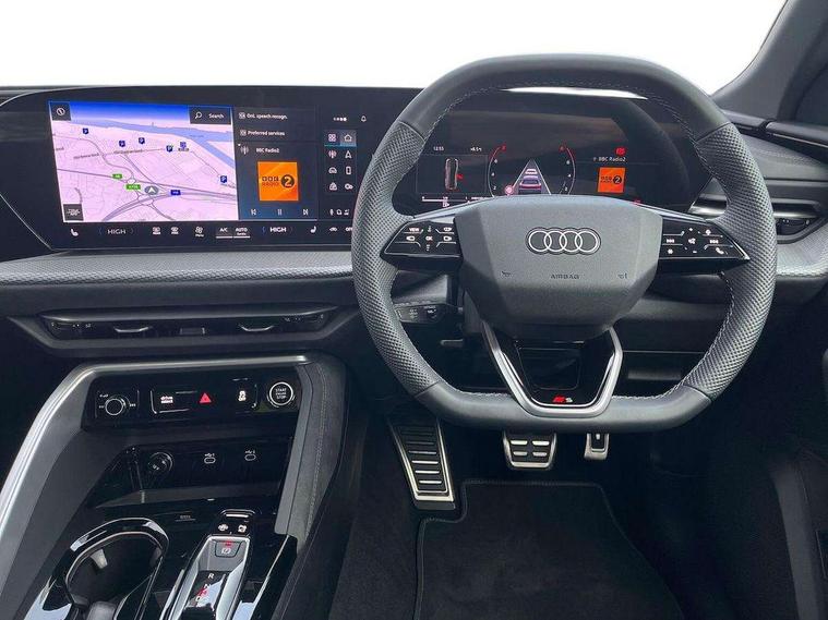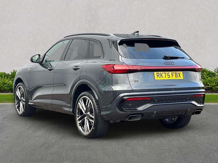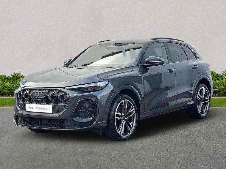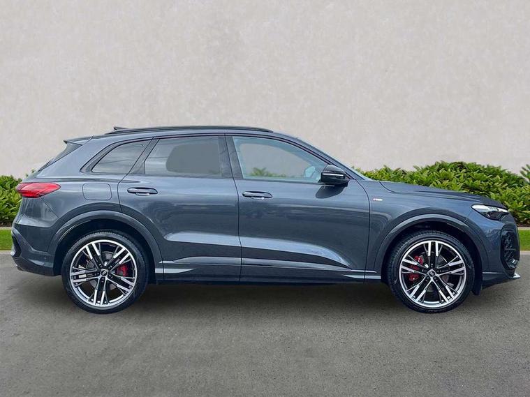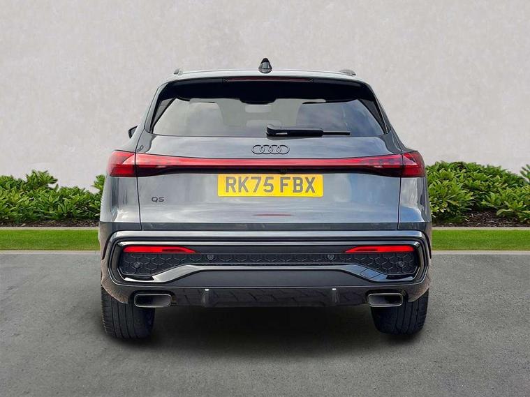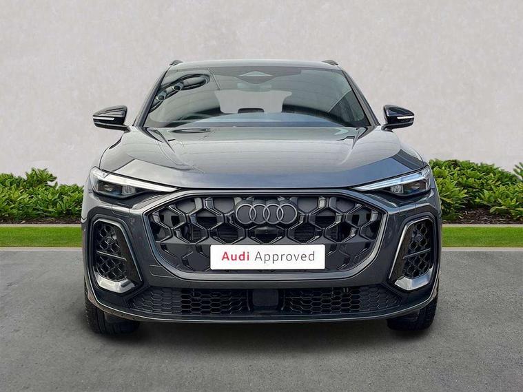 Adaptive cruise control, Advanced driver attention alert, Audi application store, Audi connect emergency call and service, Audi drive select, Audi smartphone interface, Audi virtual cockpit plus with 11.9" OLED colour display, Camera based traffic sign recognition, Fatigue monitor, Front cross traffic intersection assist, Lane change assistant with exit warning system, rear cross traffic alert and rear turn assist, Lane departure warning with emergency assist, MMI 10.9" front passenger touch display, MMI navigation plus with high resolution 14.5" OLED touchscreen colour display, Park assist plus, Parking system plus with 360 display, PAS, Reversing camera, Swerve assist and turn assist, Top view camera, Traffic sign based speed limiter, 2 USB-C ports in both the front and rear, Audi sound system impressive sound with 8 loudspeakers including centre speaker and subwoofer, 6-channel amplifier with a total output of 180 watts, DAB Digital radio, Smartphone compartment with wireless charging, Active digital light signatures - Six additional combinations of active daytime running light signature, Auto dimming rear view mirror, Black roof rails, Coming/leaving home lighting function, Electrically adjustable heated and folding + automatically dimming exterior mirrors, Exhaust tailpipes in dark chrome, Front and rear electric windows, Front door sill trims with aluminium inlays, illuminated with 'S' logo, Full body paint finish, Grill frame, inlay and front air inlets in matt anthracite chrome, Headlight cleaning system, Heated rear window, High beam assist, High gloss window surrounds, LED rear lights pro incl. dynamic rear indicators and illuminated light strip with animated coming and leaving home function, Logo projection light in exterior mirrors, Matrix LED headlights, Memory function for door mirrors, Privacy glass, Projection third brake light for rear window in LED, Radiator grille in phantom black, Rear and side windows with heat insulating glass, Rear honeycombe grille in matt black with inlay in matt anthracite chrome, Rear side wing doors, Rear wash/wipe, S Line badge on the front wings, Towbar preparation, Windscreen with acoustic glazing, 3 rear head restraints, 3 seat bench in 2nd row, 3 spoke leather steering wheel with multi-function buttons with touch control, flattened on top and bottom, with S badging and contrast stitching, 4 way electric lumbar support for driver and front passenger, 40:20:40 split folding rear seat bench with centre armrest and cup holders, Comfort centre armrest front, Deluxe 3 zone electronic climate control, Dinamica microfiber/leather upholstery with diamond stitching, Electrically adjustable front seats with memory function for driver's side, Front and rear floor mats, Front sport seats with integrated head restraints, Headlining in black cloth, Heated front seats, i-Size child seat mounting on the front passenger side and outer rear seats, i-Size and top tether on the outer rear seats, Interior trim in aluminium look, Luggage compartment lid, electrically opening and closing, Manual steering column adjustment, S embossed logo on front sport seats, Single front passenger seat, Softwrap in Dinamica, Stainless steel pedals and footrest, Steering wheel grips in perforated leather and shift paddles, Ambient lighting package plus - Q5, Black styling package plus - Q5, Storage and luggage compartment pack - Q5, 3x3 point rear seatbelts, ABS, Acoustic vehicle alerting system, Convenience key with safelock, Driver and front passenger airbag with passenger airbag deactivation, Electric child safety locks, First aid kit with warning triangle and high visibility vests, Front emergency brake assist, Front side airbags with head airbag system and front interaction airbag, Hill hold assist, Occupant detection in rear seat area, Proactive passenger protection system for front, sides and rear, Red brake calipers, Side airbags in front and rear with head airbag system and front interaction airbag, Tyre pressure loss indicator, Anti theft alarm, Anti-theft wheel bolts, Remote control key with SAFELOCK and keyless go, Accent surfaces and control buttons in gloss black, Black dashboard with contrast stitching, Steel grey seat stitching, Upper and lower interior elements in dinamica microfiber, Tyre repair kit,