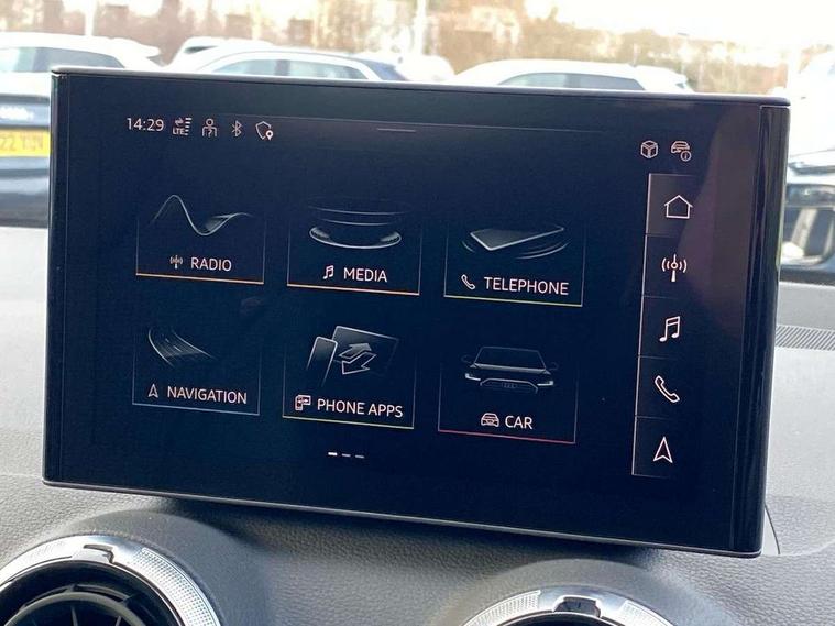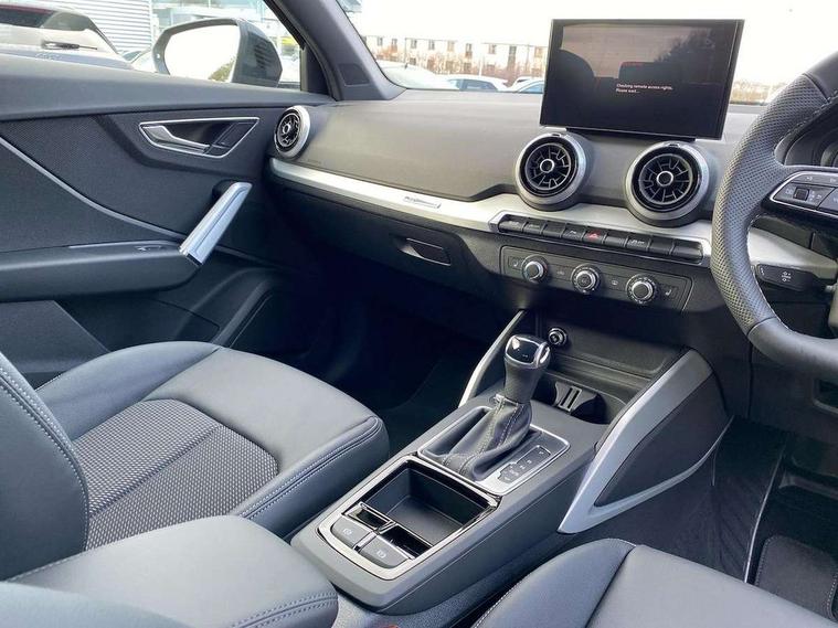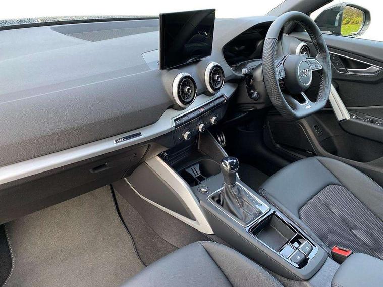 3D map display, Audi connect navigation and infotainment includes innovative services, Audi connect remote and control connects your vehicle to your smartphone, Audi drive select: S tronic - power steering assistance + engine + gearshift (modes: comfort, auto, dynamic, efficiency, individual), Audi smartphone interface - Apple carplay/Android Auto, USB connect, 2xSDXC card readers, voice control for navi, telephone, music and 3rd party apps, Audi virtual cockpit, Automatic start/stop system with recuperation, Bluetooth interface includes bluetooth audio streaming, Camera based traffic sign recognition, Cruise control, Distraction and Fatigue warning, E-call, Jukebox hard drive memory for music (10GB), Lane departure warning, MMI navigation plus with 8.8" touchscreen, Natural voice recognition, Power operated tailgate, Progressive steering, Rear parking sensors, Sport suspension, 6 passive loudspeakers, DAB Digital radio, USB type C port, Audi beam, Auto dimming rear view mirror, Black window trims, Bumper in full body colour paint finish, Electrically adjustable, folding, auto dimming and heated door mirrors with integrated LED side indicators, Front windscreen with grey tinted sunband, LED daytime running lights, LED headlights with dipped beam, high beam, position lights, indicators, LED rear lights, LED third brake light, Privacy glass - dark tinted rear and rear side windows from B-pillar backwards, Rear side wing doors, Rear wiper, Variable front intermittent wipers, Wheel arch trims in manhattan grey, 12V socket in front, 3 seat bench in 2nd row, 3 spoke flat bottomed multi-function leather sport steering wheel with gear shift paddles with S logo, 4-way electric lumbar support for front seats including manual seat height adjustment for both front seats, 60/40 split folding rear seat bench, Black carpets, Black cloth headlining, Front and rear head restraints, Front centre armrest, Front sport seats, Front/rear floor mats, Height/reach adjust steering wheel, Illuminated door sill trims with S logo, ISOFIX child seat mounting in front passenger and rear outer seats, Manual air conditioning, Single front passenger seat, Stainless steel pedals, Black styling pack - Q2, 3x3 point rear seatbelts, 6 airbags - Front, curtain and front side airbags, Electromechanical parking brake, Electronic stabilisation control including ABS, ASR and EDL, Front passenger airbag deactivation, Hill hold assist, Pre-sense front with pedestrian recognition, Seatbelt monitoring, Tyre pressure warning light with visual and acoustic warning, Warning triangle and first aid kit, Anti theft wheel bolts, Electronically operated child locks, Remote central door locking, Thatcham category 1 alarm, Aluminium interior element, Black dashboard, Gloss black centre console, Matt brushed aluminium trim inlays, Tool kit,