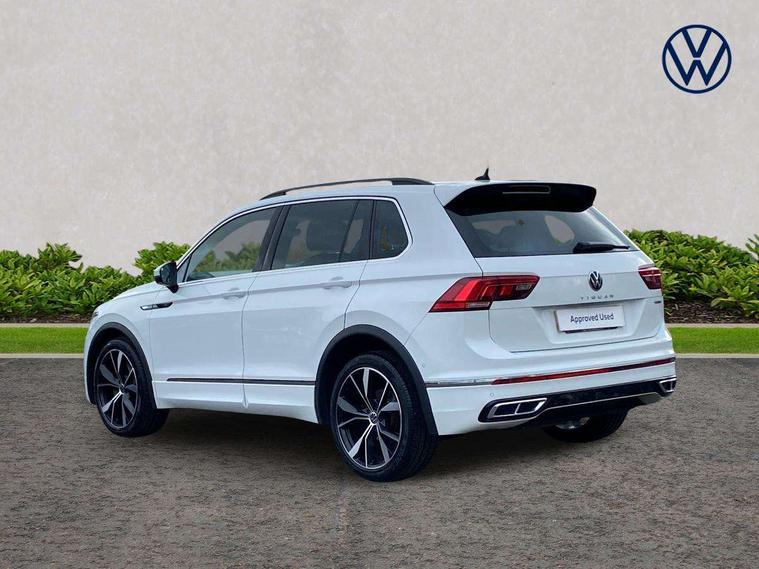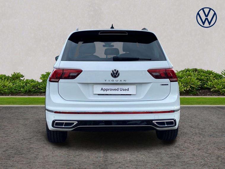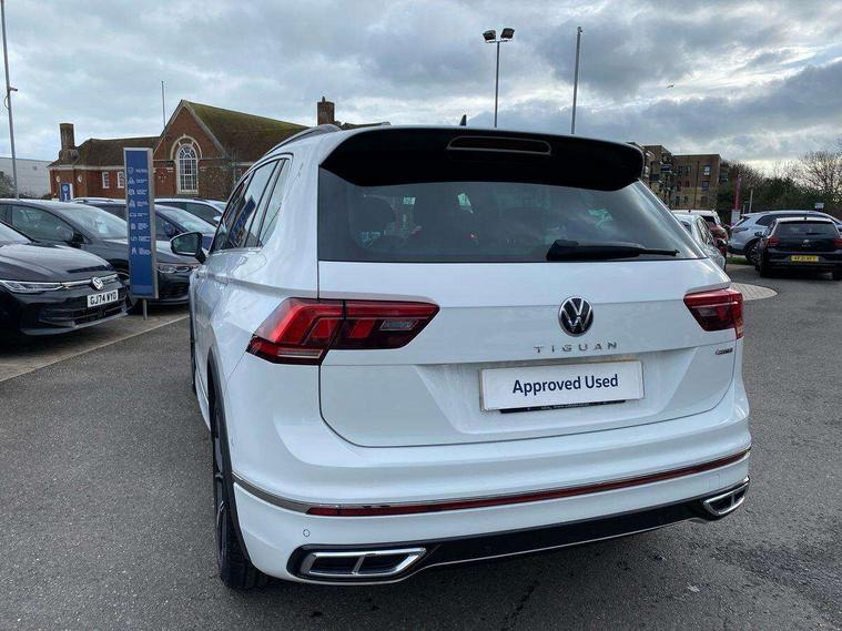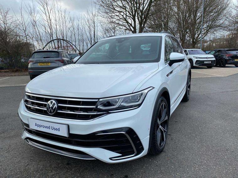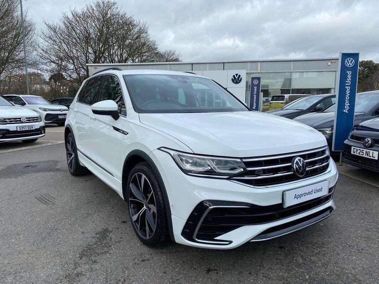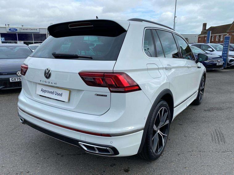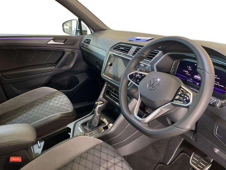 Adaptive cruise control ACC stop and go including speed limiter, App-Connect incl. App-Connect Wireless for Apple CarPlay and Android Auto, Bluetooth phone integration system, Digital Cockpit Pro - Active info display, Distance control assist, Driver alert system, Driver profile selection, Dynamic road sign display, eCall emergency call system, Electromechanical speed sensitive power steering, Engine start/stop button, Lane keeping system Lane Assist, Lights on warning, Multifunction front facing camera, Outside temperature display, Premium multifunction display with multi colour display, Remote control boot opening, Rev counter, Revision / skills operating concept travel assistant, Service interval indicator, Speed limit display, Start/stop system with regenerative braking, Trip computer, Warning sound and light for doors and tailgate open, All wheel drive - 4Motion, Battery regeneration during braking, Diesel particulate filter, Misfuel prevention device for diesel engine, Selective Catalytic Reduction, XDS electronic differential lock for improved traction and handling, 2 USB-C ports in the front, 1 USB-C charging socket on the center console in the rear, Diversity antenna for FM reception, Radio, SD card slot, Simultaneous pairing of 2 compatible mobile devices, SMS functionality - read, compose and send SMS messages using touch-screen display, Title and cover art display, Auto dimming interior rear view mirror, Automatic headlight control system, Black roof rails, Body colour door handles, Body coloured bumpers in R Line style, Body coloured door mirrors with integrated indicators, Chrome moldings on the side windows, Coming/leaving home lighting function, Dynamic headlight range control, Front and rear electric windows, Heated rear window, High level 3rd brake light, Laminated safety glass windshield, heat and sound insulating, LED rear number plate lights, License plate carrier in front and rear, Poor weather light and cornering light, Privacy glass for rear side windows and rear window, R Line body kit, R Line side sills, Rain sensor windscreen wipers, Rear exhaust tailpipe, Rear fog lamp, Rear side wing doors, Rear spoiler in R style, Rear windscreen washer and wiper with interval delay, Side and rear windows in heat insulating glass, Trailer Stability Programme, Unique R Line badging, Windscreen wipers/ intermittent wipe + 4 position delay, 12V outlet in center console rear and in luggage compartment, 12V outlet in front and tray, 2 cup holders in front, 2 LED front reading lights, 2 LED rear reading lights, 3 bench rear seats in 2nd row, 3 rear headrests, 4 load lashing points, 40:20:40 split folding rear seats, Air Care Climatronic 3 zone automatic climate control with enhanced air filter and controls in the rear, Backrest release for left front seat, Black headlining, Brushed stainless steel pedals and footrest, Carpet mats in front and rear with decorative stitching in Gray, Climate control unit rear with touch function, Door and side trim panel in foam film, insert in leatherette, Front centre armrest, Front footwell illumination, Front seats head restraints (x-adjustment), Height adjustable front seats, Height/reach adjust steering wheel, Instrument lighting white adjustable panel illumination, Interior light with delay, Isofix Preparation 2 Rear child seats, Leather gear knob, Lockable cooled glovebox, Luggage compartment lighting, Luggage net, Rear bench seat asymetrically split folding, longitudinally movable and folding with load-through hatch and center armrest, Remote unlocking for rear seat backrest, Removable luggage cover, Removable rear headrests, Safety optimised front head restraints, Single front passenger seat, Sliding/reclining rear seats, Standard rear seat release, Storage compartment in driver's door, Storage compartment in passenger's door, Storage compartment in rear doors, Storage compartments in luggage area left and right, Storage tray on dashboard, Sun visors with illuminated vanity mirrors, Top front comfort seats, Variable boot floor, height adjustable and removable, Ambience pack - Tiguan R Line, Driver assistance pack plus - Tiguan DSG, Park assist pack - Tiguan, 3 point seat belt for centre rear seats, 3 point seat belts with seat belt pretensioners for the outer rear seats, Active bonnet, Curtain airbags for front and rear passengers, Driver/Front Passenger airbags, Drivers knee airbag, Electronic parking brake with auto hold, Electronic Stability Control with driver steering recommendation, ABS, ASR, EDL, EDTC and trailer stabilization, Front assist with autonomous emergency braking (for Adaptive Cruise Control ACC up to 130 mph), Front disc brakes, Front passenger airbag deactivation, Front side airbags, Height adjustable front 3 point seatbelts + pretensioners, Hill hold control, Manual child proof rear door locks, Pedestrian monitoring system, Power assisted brakes, Proactive passenger protection system in combination with front assist, Rear disc brakes, Rigid safety cell with front and rear crumple zones, Two tone horn, Warning sound and light for front seat belts if unfastened, Anti theft alarm system with interior monitoring, backup horn and towing protection, Anti theft wheel bolts, Electronic engine immobiliser, 20" Misano black with diamond turned surface alloy wheels with Airstop tyres, Tool kit,