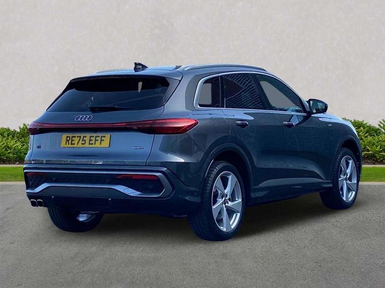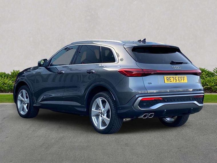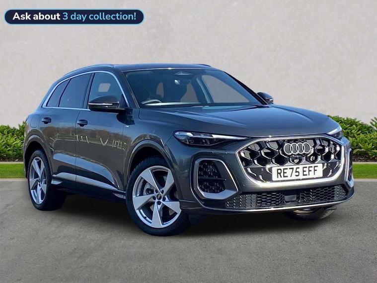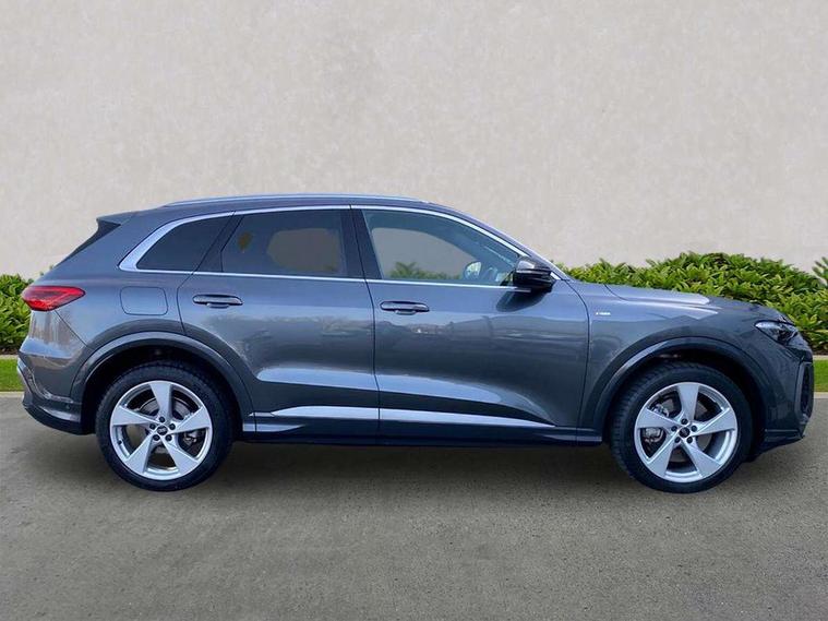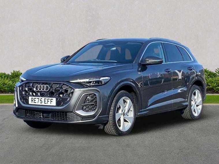 Adaptive cruise control, Advanced driver attention alert, Audi application store, Audi connect emergency call and service, Audi drive select, Audi smartphone interface, Audi virtual cockpit plus with 11.9" OLED colour display, Camera based traffic sign recognition, Fatigue monitor, Front cross traffic intersection assist, Lane departure warning system, MMI navigation plus with high resolution 14.5" OLED touchscreen colour display, Park assist plus, Parking system plus with 360 display, PAS, Reversing camera, Swerve assist and turn assist, Traffic sign based speed limiter, 2 USB-C ports in both the front and rear, Audi sound system impressive sound with 10 loudspeakers including centre speaker and subwoofer, 6-channel amplifier with a total output of 180 watts, DAB Digital radio, Smartphone compartment with wireless charging, Aluminium roof rails, Auto dimming rear view mirror, Body coloured door mirrors, Coming/leaving home lighting function, Electrically adjustable heated and folding + automatically dimming exterior mirrors, Front and rear electric windows, Front door sill trims with aluminium inlays, illuminated with 'S' logo, Headlight cleaning system, Heated rear window, High beam assist, High gloss window surrounds, Inlay and front air inlets in matt anthracite chrome, LED headlights plus incl. digital DRL, dynamic coming and leaving home function with turning/all weather/motorway/manouevring and intersection lights, LED rear lights pro incl. dynamic rear indicators and illuminated light strip with animated coming and leaving home function, Logo projection light in exterior mirrors, Privacy glass, Projection light for rear window, Radiator grille in phantom black, Rear and side windows with heat insulating glass, Rear honeycombe grille in matt black with inlay in matt anthracite chrome, Rear side wing doors, Rear wash/wipe, Red S line rhombus badging on rear, S line bumpers in contrasting Volcano grey metallic paint finish, Towbar preparation, Windscreen with acoustic glazing, 3 rear head restraints, 3 seat bench in 2nd row, 3 spoke leather steering wheel with multi-function buttons with touch control, flattened on top and bottom, with S badging and contrast stitching, 40:20:40 split folding rear seat bench with centre armrest and cup holders, Comfort centre armrest, Deluxe 3 zone electronic climate control, Front and rear floor mats, Front seats with manual adjustment for position and 4-way electric lumbar support, Front sport seats with integrated head reastrains, Headlining in black cloth, Heated front seats, i-Size child seat mounting on the front passenger side and i-Size and top tether on the outer rear seats, Interior trim in aluminium look, Luggage compartment lid, electrically opening and closing, Manual steering column adjustment, Single front passenger seat, Softwrap in leatherette, Stainless steel pedals and footrest, Steering wheel grips in perforated leather and shift paddles, Ambient lighting package plus - Q5, Storage and luggage compartment pack - Q5, ABS, Acoustic vehicle alerting system, Driver and front passenger airbag with passenger airbag deactivation, Electric child safety locks, First aid kit with warning triangle and high visibility vests, Front emergency brake assist, Front side airbags with head airbag system and front interaction airbag, Hill hold assist, Rear seat occupant reminder, Tyre pressure loss indicator, Anti theft alarm, Anti-theft wheel bolts, Remote control key with SAFELOCK and keyless go, Accent surfaces and control buttons in gloss black, Anthracite matt brushed aluminium inlays with linear embossing, Black dashboard with contrast stitching, Upper and lower interior elements in artificial leather, Tyre repair kit,
