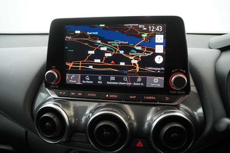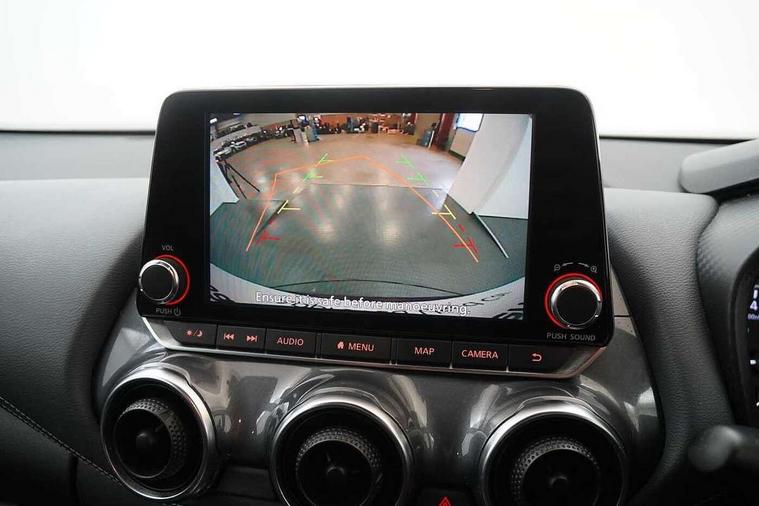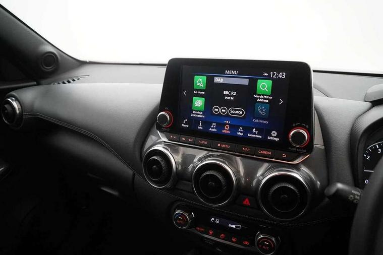 7" full colour TFT screen combimeter, 8" infotainment colour display with touch screen, Apple CarPlay and Google Android auto, Drive modes select (Eco, normal and sport), Emergency and breakdown call, Front parking sensor, Idle start/stop system, Intelligent lane intervention, Lane departure warning system, Nissan connect nav with TomTom traffic, Nissan connect services and Wifi connection, Outside temperature sensor, Power Steering, Rear parking sensor, Traffic sign recognition, Trip computer, Gasoline particulate filter, 6 speakers, Bluetooth system, USB, Aux-in and 12V socket, DAB Digital radio, Rear console USB port, Auto dimming interior rear view mirror, Automatic hazard signal with emergency stop signal, Body colour bumpers, Body colour door handles, Electrically adjustable door mirrors with integrated indicators, Follow me home headlights, Front and rear electric window with one touch driver window, Heated and auto folding door mirrors, High beam assist, LED daytime running lights, LED headlamps, LED rear fog lamp, LED rear lamps, Rain sensor windscreen wipers, Rear privacy glass, Rear wiper, Three blink turn signal, 3 height adjustable rear headrests, 60/40 split folding rear seat, Automatic climate control, Card holder on driver sunvisor, Cloth upholstery, Driver and passenger sliding and reclining seats, Driver side rear coat hanger, Driver/passenger sunvisors and vanity mirrors, Front and rear cabin lights, Front armrest, Front door pockets with bottle holders, Front head restraints, Front/rear passenger grab handles, Grey synthetic leather kneepad, Height adjustable driver's seat, Internal chrome door handles, Leather gearshift knob, Leather steering wheel, Luggage board, Luggage space lighting, Monoform sporty seats, Multifunction steering wheel, Rear door bottle holders, Telescopic steering wheel adjustment, Two cupholders in front centre console, Two rear isofix child seat anchorage points with top tether, Voice recognition switch on steering wheel, Welcome light and console tray ambient lighting, ABS with EBD and brake assist, Active ride control, Active Trace Control, Driver and passenger airbags, Driver and passenger side airbags, Electric handbrake with auto hold function, Electronic Stability Programme (ESP), Front and rear curtain airbags, Height adjustable seatbelts, Hill start assist, Intelligent emergency braking with pedestrian and cyclist recognition, Seatbelt reminder for driver/front passenger and rear seats, Single tone horn, Three 3 point rear seatbelts, Traction control, Tyre pressure monitoring system, VDC Dynamic Vehicle Control, Ventilated rear brake discs, Alarm, Immobiliser, Intelligent Key with push button starter, Remote central locking,
