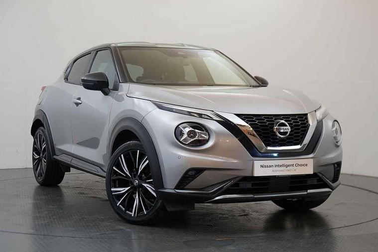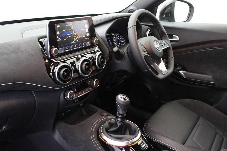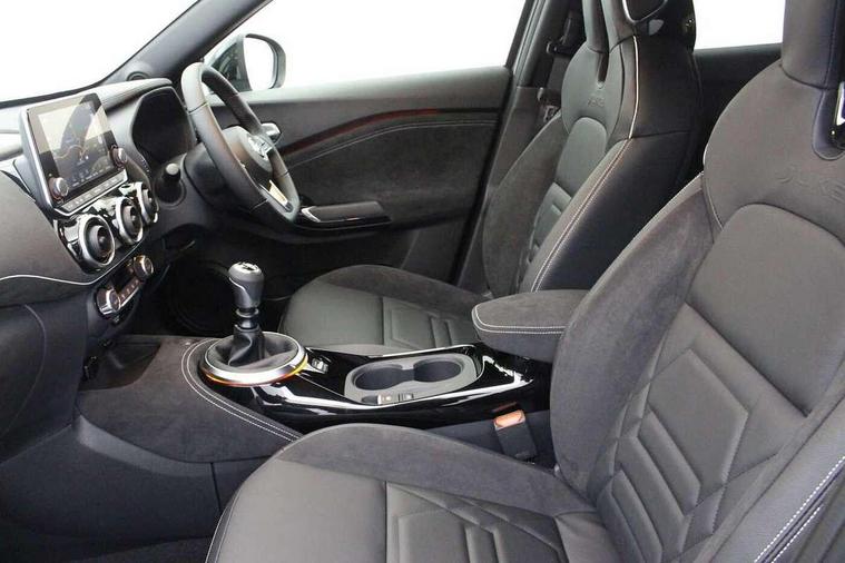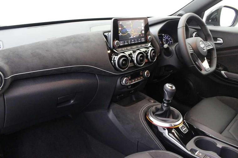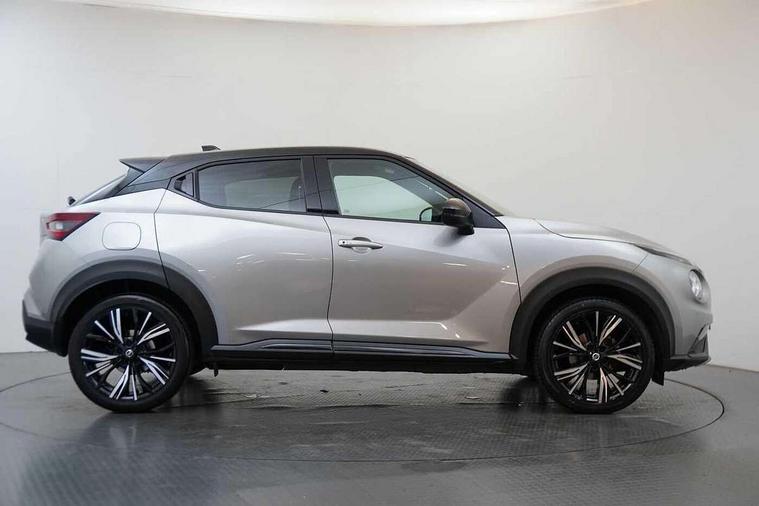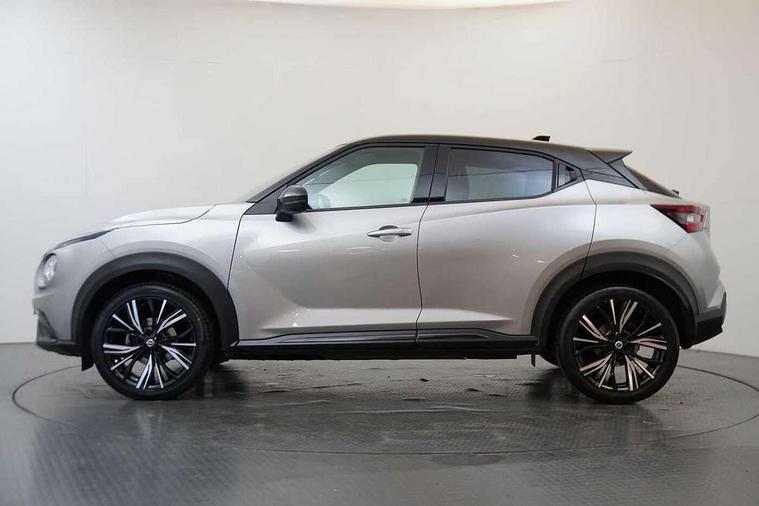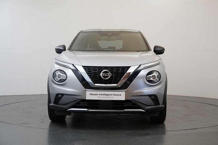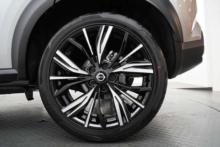 7" full colour TFT screen combimeter, Apple CarPlay and Google Android auto, Drive modes select (Eco, normal and sport), Emergency and breakdown call, Front parking sensor, Idle start/stop system, Intelligent lane intervention, Lane departure warning system, Nissan connect 8" touch screen entertainment system, Nissan connect nav with TomTom traffic, Nissan connect services and Wifi connection, Outside temperature sensor, Power Steering, Rear parking sensor, Traffic sign recognition, Trip computer, Voice recognition, Gasoline particulate filter, 10 Bose speakers 6 speakers and 2 headrest speakers for driver/passenger seats, Bluetooth system, USB, Aux-in and 12V socket, Bose personal sound stage control, DAB Digital radio, Rear console USB port, Auto dimming interior rear view mirror, Auto headlights, Automatic hazard signal with emergency stop signal, Body colour bumpers, Body colour door handles, Electrically adjustable door mirrors with integrated indicators, Follow me home headlights, Front and rear electric window with one touch driver window, Heated and auto folding door mirrors, High beam assist, LED daytime running lights, LED front fog lights, LED headlamps, LED rear fog lamp, LED rear lamps, Rain sensor windscreen wipers, Rear privacy glass, Rear side wing doors, Rear wiper, Satin silver front bumper finisher, Thermaclear heated windscreen, Three blink turn signal, 3 height adjustable rear headrests, 3 seat bench in 2nd row, 60/40 split folding rear seat, Automatic climate control, Card holder on driver sunvisor, Door ambient lighting, Driver and passenger sliding and reclining seats, Driver seat back pocket, Driver side rear coat hanger, Driver/passenger sunvisors and vanity mirrors, Front and rear cabin lights, Front armrest, Front door pockets with bottle holders, Front head restraints, Front passenger isofix child seat anchorage point, Front/rear passenger grab handles, Gear console ambient circle lighting, Grey synthetic leather kneepad, Heated front seats, Height adjustable driver's seat, Height adjustable passenger seat, Internal chrome door handles, Leather gearshift knob, Leather steering wheel, Luggage board, Luggage space lighting, Monoform sporty seats, Multifunction steering wheel, Passenger seat back pocket, Rear door bottle holders, Single front passenger seat, Telescopic steering wheel adjustment, Two cupholders in front centre console, Two rear isofix child seat anchorage points with top tether, Welcome light and console tray ambient lighting, Advanced safety shield pack - Juke, ABS with EBD and brake assist, Active ride control, Active Trace Control, Driver and passenger airbags, Driver and passenger side airbags, Electric handbrake with auto hold function, Electronic Stability Programme (ESP), Front and rear curtain airbags, Height adjustable seatbelts, Hill start assist, Intelligent emergency braking with pedestrian and cyclist recognition, Rear door child safety locks, Seatbelt reminder for driver/front passenger and rear seats, Single tone horn, Three 3 point rear seatbelts, Traction control, Tyre pressure monitoring system, VDC Dynamic Vehicle Control, Ventilated rear brake discs, Alarm, Immobiliser, Intelligent key and start push button with walk away lock and approach unlock functions, Remote central locking, 19" Akari alloy wheels,