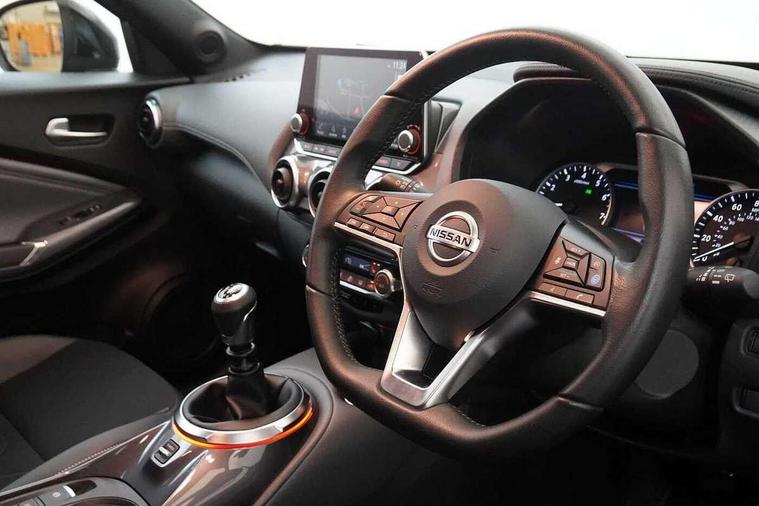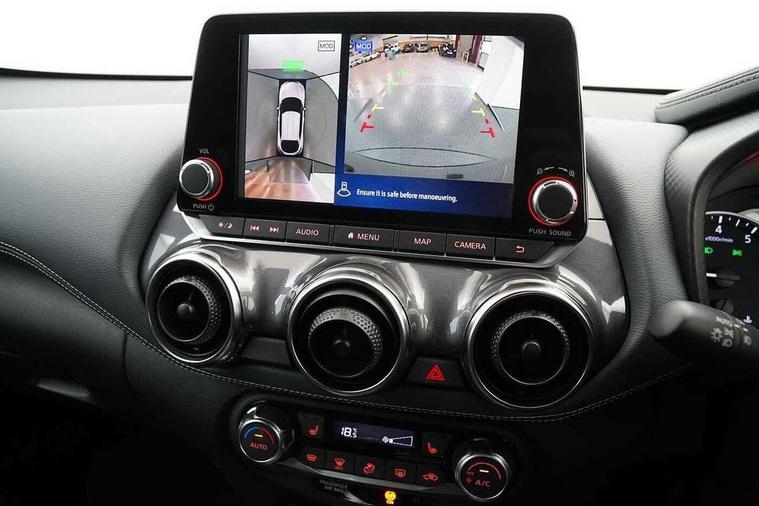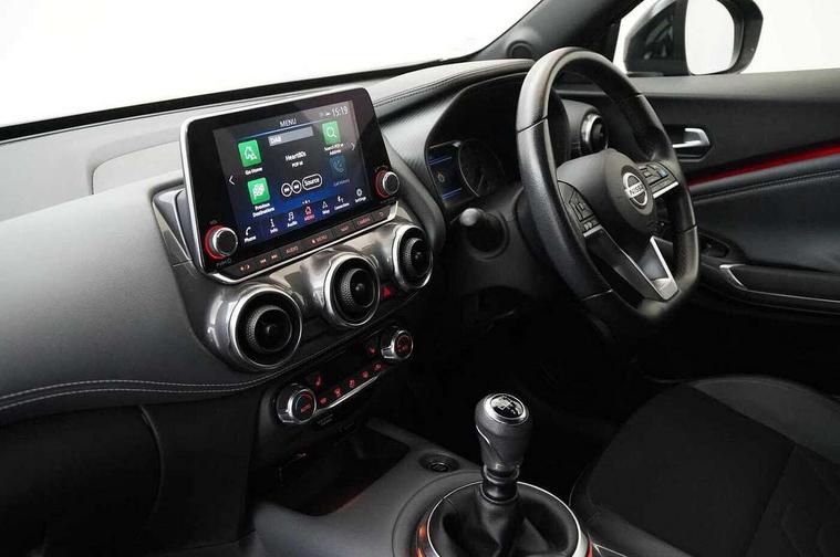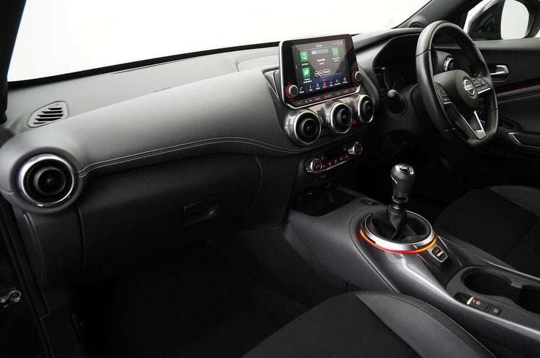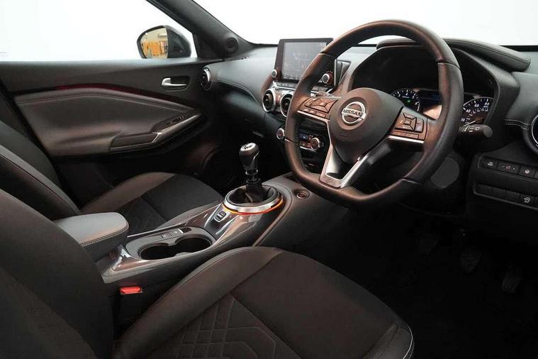 7" full colour TFT screen combimeter, Apple CarPlay and Google Android auto, Drive modes select (Eco, normal and sport), eCall emergency call system, Emergency and breakdown call, Front parking sensor, Idle start/stop system, Intelligent lane intervention, Lane departure warning system, Nissan connect 8" touch screen entertainment system, Nissan connect nav with TomTom traffic, Nissan connect services and Wifi connection, Outside temperature sensor, Power Steering, Rear parking sensor, Traffic sign recognition, Trip computer, Voice recognition, Gasoline particulate filter, Bluetooth system, USB, Aux-in and 12V socket, Bose personal plus audio system with 8 speakers(4 speakers and 2 headrest speaker for driver and passenger seats), Bose personal sound stage control, DAB Digital radio, Rear console USB port, Auto dimming interior rear view mirror, Auto headlights, Automatic hazard signal with emergency stop signal, Body colour bumpers, Body colour door handles, Electrically adjustable door mirrors with integrated indicators, Follow me home headlights, Front and rear electric window with one touch driver window, Heated and auto folding door mirrors, High beam assist, LED daytime running lights, LED front fog lights, LED headlamps, LED rear fog lamp, LED rear lamps, Rain sensor windscreen wipers, Rear privacy glass, Rear side wing doors, Rear wiper, Thermaclear heated windscreen, Three blink turn signal, 3 height adjustable rear headrests, 3 seat bench in 2nd row, 60/40 split folding rear seat, Automatic climate control, Card holder on driver sunvisor, Cloth/Synthetic leather upholstery, Door ambient lighting, Driver and passenger sliding and reclining seats, Driver seat back pocket, Driver side rear coat hanger, Driver/passenger sunvisors and vanity mirrors, Front and rear cabin lights, Front armrest, Front door pockets with bottle holders, Front head restraints, Front passenger isofix child seat anchorage point, Front/rear passenger grab handles, Gear console ambient circle lighting, Grey synthetic leather kneepad, Heated front seats, Height adjustable driver's seat, Height adjustable passenger seat, Internal chrome door handles, Leather gearshift knob, Leather steering wheel, Luggage board, Luggage space lighting, Monoform sporty seats, Multifunction steering wheel, Passenger seat back pocket, Rear door bottle holders, Single front passenger seat, Telescopic steering wheel adjustment, Two cupholders in front centre console, Two rear isofix child seat anchorage points with top tether, Welcome light and console tray ambient lighting, Advanced safety shield pack - Juke, ABS with EBD and brake assist, Active ride control, Active Trace Control, Driver and passenger airbags, Driver and passenger side airbags, Electric handbrake with auto hold function, Electronic Stability Programme (ESP), Front and rear curtain airbags, Height adjustable seatbelts, Hill start assist, Intelligent emergency braking with pedestrian and cyclist recognition, Rear door child safety locks, Seatbelt reminder for driver/front passenger and rear seats, Single tone horn, Three 3 point rear seatbelts, Traction control, Tyre pressure monitoring system, VDC Dynamic Vehicle Control, Ventilated rear brake discs, Alarm, Immobiliser, Intelligent Key with push button starter, Remote central locking,