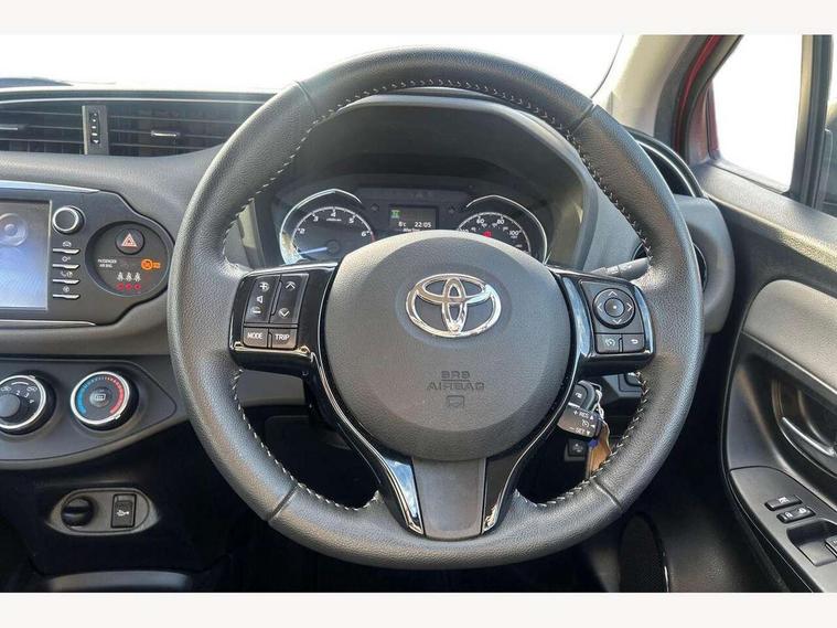 4.2" coloured LED TFT multi information display, Analogue speedometer, Analogue tachometer, Auto speed limiter, Bluetooth connectivity, Cruise control, External temperature gauge, Fuel indicator with low level warning, Key reminder warning, Lights on warning, Multi information display switches on steering wheel, Power Steering, Reversing camera, Trip computer, 6 speakers, Auxiliary input socket, Steering wheel mounted audio/telephone switches, Toyota Touch 2 with DAB, USB connection, Auto up and down function on drivers window, Automatic wipers, Black lower front grille, Body colour bumpers, Body colour door handles, Body coloured door mirrors, Daytime running lights, Electric adjustable heated door mirrors, Electric front windows, Follow me home headlights, Front fog lights, Headlight cut-off reminder, LED High mounted stop lamp, Manual dimming rear view mirror, Projector headlights, Rain sensitive windscreen wipers, Rear combination lights bulb type, Rear window defogger, Rear wiper, Turning signal integrated indicators in door mirrors, 12v power outlet - front, 3 adjustable rear headrests, 3 spoke leather steering wheel, 60/40 split folding rear seat, Boot light, Data Communication Module (DCM) connected services, Driver and front passenger personal light, Driver and front passenger Whiplash Injury Lessening seats, Driver/passenger vanity mirrors with covers, Front and rear cup holders, Front map reading lights, Front seats with lumbar support, Glovebox, Height adjustable driver's seat, Height adjustable front head restraints, Illuminated entry system, Isofix seat fixing, Leather gearshift, Manual air conditioning, Map pockets on the backs of the front seats, Pollen filter, Removable rear parcel shelf, Sliding front seats, Soft touch inner door garnish, Spirit fabric upholstery, Tilt/telescopic steering column, 3 point seatbelts on all rear seats, ABS+EBD+Brake assist, Active headrests, Collision mitigation braking system, Emergency brake light system (EBS), Front passenger airbag on/off switch, Front seatbelt reminder, Height adjustable front seatbelts with pre-tensioners and load limiters, Hill start assist control (HAC), Rear child proof door locks, Rear seat belt reminder, Road sign information display, Seatbelt warning lamp and buzzer, Supplemental restraint system (SRS) airbags - 7 airbags including driver, front passenger, curtain, side and knee airbags, Toyota safety sense including Road sign assist, Pre collision system, auto high beam and lane departure alert), Tyre pressure warning system, Vehicle stability control VSC + traction control, Engine immobiliser, Power and remote door locking, Soft touch instrument panel, Space saver spare wheel,