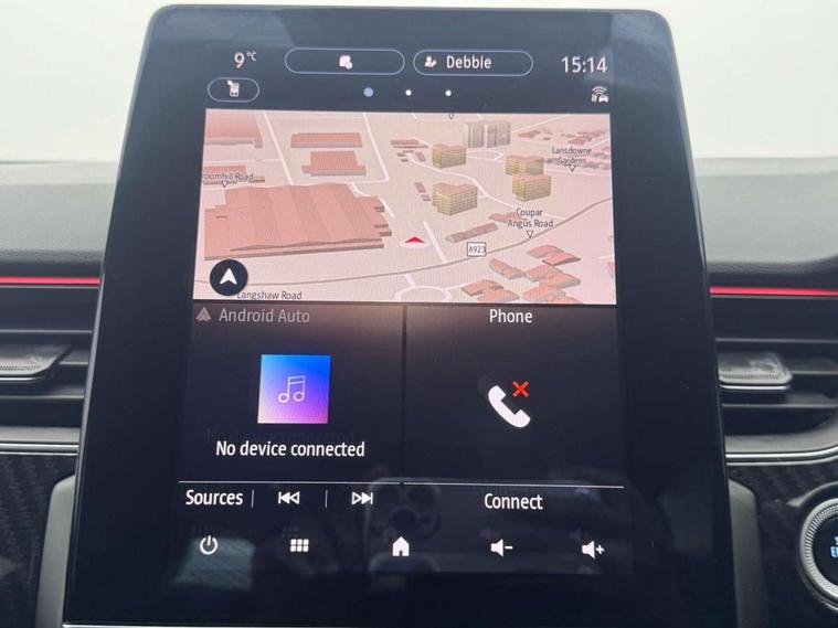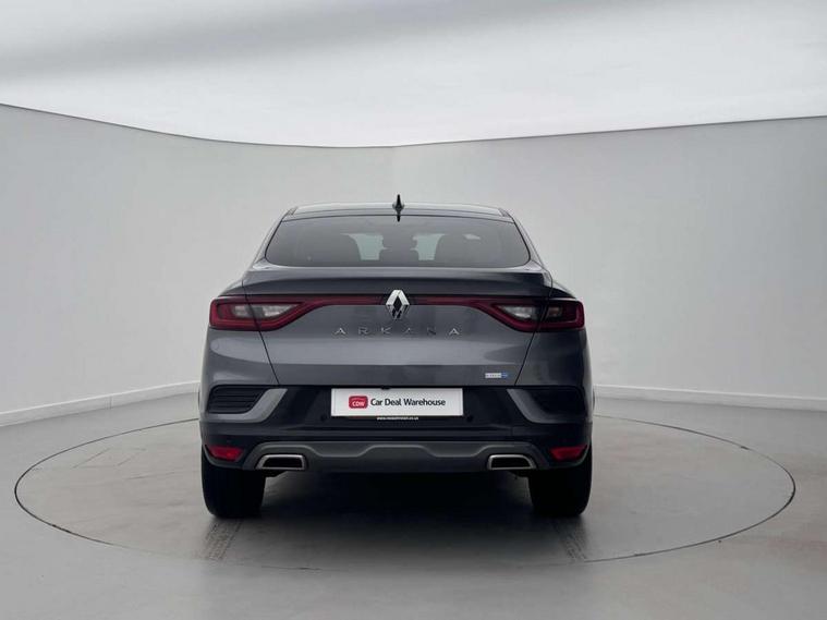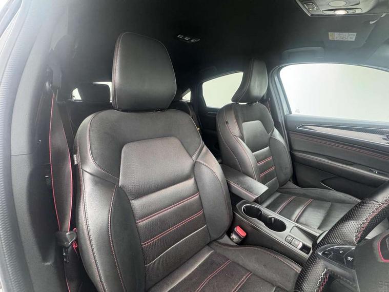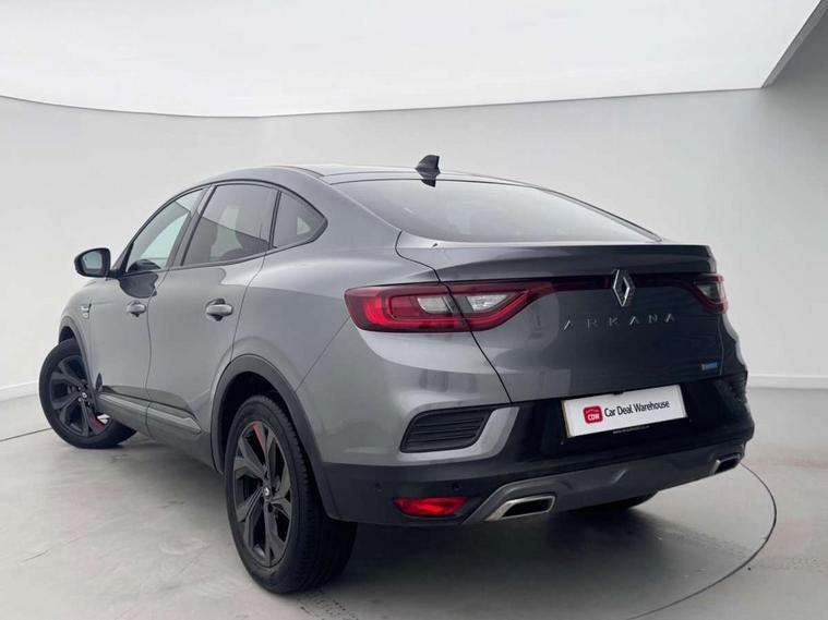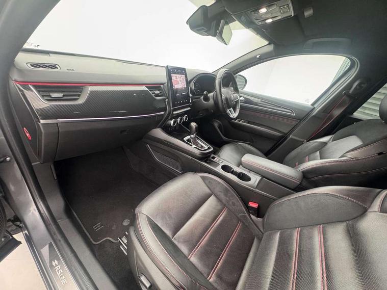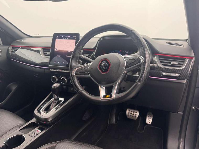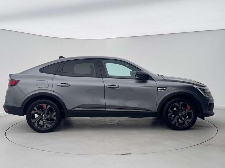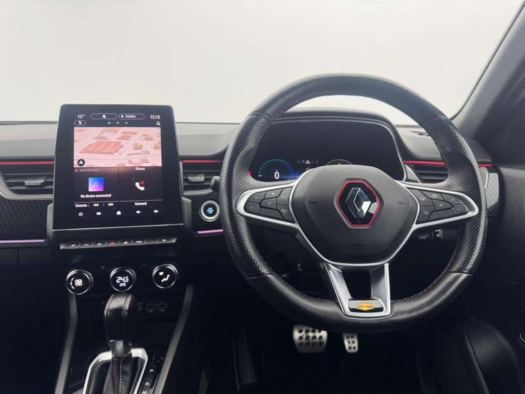 7" TFT Driver information display, Blind spot warning, Bluetooth system, EASY LINK 9.3" portrait touchscreen with navigation, Google search and traffic information, eCall emergency call system, Eco mode, EV button to activate pure mode, Front and rear parking sensors, Gear change indicator, Lane departure warning, Lane keep assist, Multi-sense - 3 driving modes and 8 ambient lighting, Rear cross traffic alert, Rear view camera, Renault automatic emergency assist, Smartphone integration compatible with Apple CarPlay and Android Auto, Traffic sign recognition with over speed prevention, Trip computer, Variable assistance electric power steering, Wireless phone charger, DAB radio, USB port, 3rd brake light, Auto dimming rear view mirror, Automatic headlights, Automatic high / low beam, Automatic windscreen wipers with rain sensor, Black side door protection with gun metal insert, Body coloured bumpers, C-shaped LED front signature lighting, Chrome decopart on wing (fender molding) with R.S. Line badge, Double chromed exhaust tailpipes elements, Extra tinted rear windows and tailgate, Frameless rear view mirror, Front and rear electric windows, Front bumper with F1 blade and honeycomb front grille, Front driver window with one touch facility and anti-pinch function, Front grille with chrome on upper part, Full LED headlights, Glossy black door mirror and lower window lining, Gun Metal front and rear skid plates, Heated rear window, R.S. Line badges on front wing and hatch door, Rain sensor, Rear windscreen wiper, Shiny black shark fin antenna, Side mirrors adjustable electrically, electrically foldable, with defrosting and temperature sensor, automatically foldable at vehicle closure, 3 seat bench in 2nd row, 60:40 split and fixed base rear seats, Aluminium pedals, Automatic climate control with combined filter, humidity sensor and AQS, Black interior roof lining, Carbon style dashboard, Central console with storage, Driver's seat height adjustment, Electrically adjustable front seats, Front and rear head restraints, Height and reach adjustable steering wheel, ISOFIX child seat fixing points on rear outermost seats, LED front and rear roof lights, Passenger seat height adjuster, R.S. line black suede-leather upholstery with red/grey stiching, R.S. Line perforated leather steering wheel with red/black harmony and R.S. Line badge, Rear air vents, Red inserts on air vents, Single front passenger seat, Parking Pack - Hands-free parking & flank protection - Arkana, Winter pack - Arkana, 3x3 point rear seat belts, ABS+EBA, Active emergency braking system, B Brake Mode - One pedal driving with increased regenerative braking, Distance warning alert, Driver airbag, Driver and passenger front and side airbag deactivation, Driver and passenger side airbags, Driver height adjustable seat belt, Electronic parking brake with auto hold, ESC (Electronic Stability Control), Front and rear no seatbelt warning sound, Front curtain airbags, Front head airbags, Hill start assist, Passenger airbag, Tyre pressure warning light, Anti drill door locks and locking fuel cap, Central door locking, Deadlocking system, Hands free keycard with Keyless access and start, RAID (Renault Anti-Intruder Device) automatic door locking, Rear side wing door and window child locking function (front driver door control panel), Superlocking, Thatcham alarm, 18" Silverstone diamond alloy wheels with red inserts,