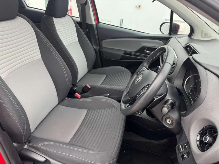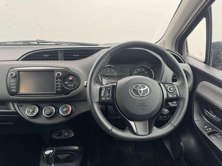 4.2" coloured LED TFT multi information display, Analogue speedometer, Analogue tachometer, Auto speed limiter, Bluetooth connectivity, Cruise control, External temperature gauge, Fuel indicator with low level warning, Key reminder warning, Lights on warning, Multi information display switches on steering wheel, Power Steering, Reversing camera, Trip computer, 6 speakers, Auxiliary input socket, Steering wheel mounted audio/telephone switches, Toyota Touch 2 with DAB, USB connection, Auto up and down function on drivers window, Automatic wipers, Black lower front grille, Body colour bumpers, Body colour door handles, Body coloured door mirrors, Daytime running lights, Electric adjustable heated door mirrors, Electric front windows, Follow me home headlights, Front fog lights, Headlight cut-off reminder, LED High mounted stop lamp, Manual dimming rear view mirror, Projector headlights, Rain sensitive windscreen wipers, Rear combination lights bulb type, Rear window defogger, Rear wiper, Turning signal integrated indicators in door mirrors, 12v power outlet - front, 3 adjustable rear headrests, 3 spoke leather steering wheel, 60/40 split folding rear seat, Active headrests, Boot light, Data Communication Module (DCM) connected services, Driver and front passenger personal light, Driver and front passenger Whiplash Injury Lessening seats, Driver/passenger vanity mirrors with covers, Front and rear cup holders, Front map reading lights, Front seats with lumbar support, Glovebox, Height adjustable driver's seat, Height adjustable front head restraints, Illuminated entry system, Isofix seat fixing, Leather gearshift, Manual air conditioning, Map pockets on the backs of the front seats, Pollen filter, Removable rear parcel shelf, Sliding front seats, Soft touch inner door garnish, Spirit fabric upholstery, Tilt/telescopic steering column, 3 point seatbelts on all rear seats, ABS+EBD+Brake assist, Collision mitigation braking system, Emergency brake light system (EBS), Front passenger airbag on/off switch, Front seatbelt reminder, Height adjustable front seatbelts with pre-tensioners and load limiters, Hill start assist control (HAC), Rear child proof door locks, Rear seat belt reminder, Road sign information display, Seatbelt warning lamp and buzzer, Supplemental restraint system (SRS) airbags - 7 airbags including driver, front passenger, curtain, side and knee airbags, Toyota safety sense including Road sign assist, Pre collision system, auto high beam and lane departure alert), Tyre pressure warning system, Vehicle stability control VSC + traction control, Engine immobiliser, Power and remote door locking, Soft touch instrument panel, Space saver spare wheel,