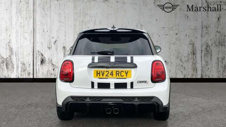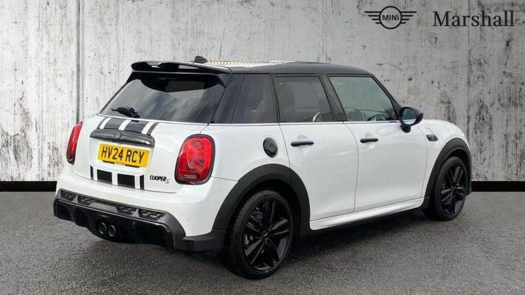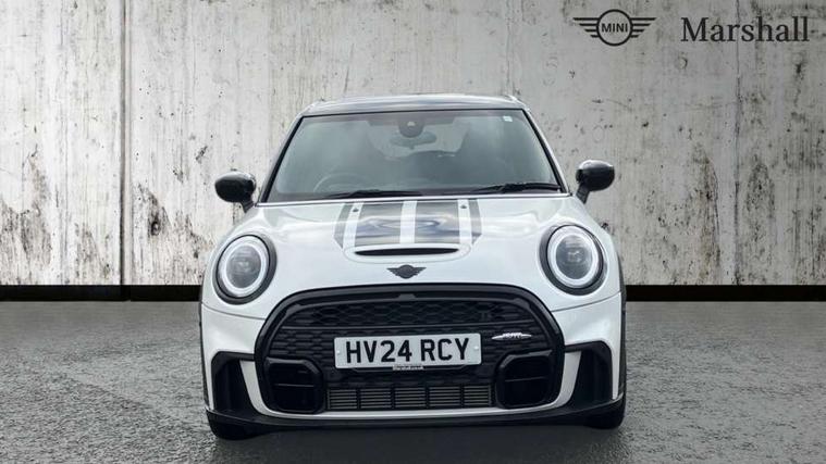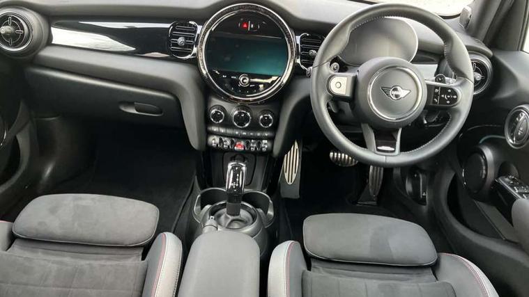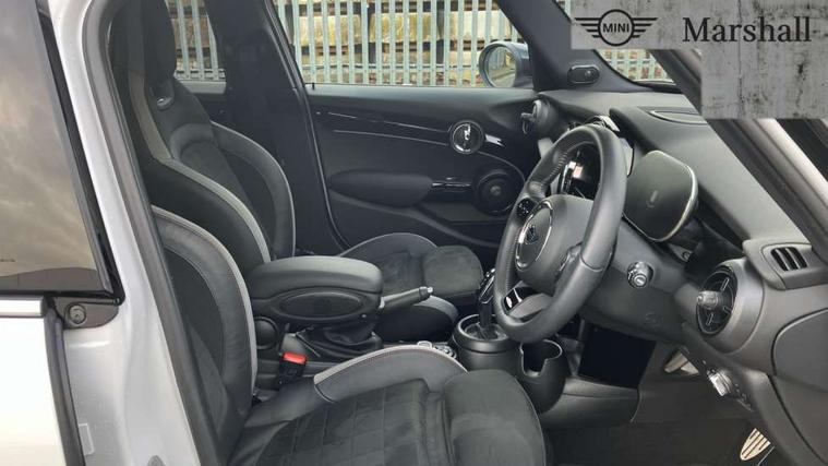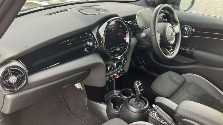 Apple CarPlay, Automatic start/stop function with brake energy recuperation, Compatible mobile phone bluetooth with audio streaming, Electro-mechanical speed dependant steering assistance, Flexible car sharing preparation, MINI Driving Modes - centre toggle switch to control driving setting (sport, mid and green), Mini E-call, MINI TeleServices, On board computer, Rear park distance control, Service interval indicator, Adaptive suspension, Double Vanos system, Fully variable valve control, Gear change indicator display, High precision injection, Performance Control, Steptronic sport transmission with double clutch and steering wheel paddles, 8.8" touchscreen with LED ring, FM tuner and DAB digital radio, 3rd brake light, Automatic headlight activation switch, Bonnet scoop, Dynamic brake lights, Electric front+rear windows, Heated rear window, Heated windscreen washer jets, JCW Aerodynamic kit - Front and rear bumpers with sporty JCW styling and part-painted side sills with MINI John Cooper Works door sill finishers, John Cooper Works rear spoiler, Metal door sill strips with Cooper S imprint, Model logo Cooper S on right of tailgate, Radiator grille chrome border with honeycomb structure including S Badge, Rain sensor window wipers, Rear fog lights, Rear LED lights with union jack design, Rear side wing doors, Rear window wiper, Side scuttle panel with integrated indicator, Sun/heat protection glass, Two central exhaust tailpipes with chrome finisher, White indicator lenses, 12V Accessory socket in centre console, 3 seat bench in 2nd row, 4 lashing eyes in luggage compartment, 60/40 split folding rear seat, Anthracite headliner including grab handles and clothes hooks, Carbon black colour line - Knee roll and door armrest, Chrome interior highlights, Cupholders, Front and rear isofix with front passenger airbag deactivation, Front and rear velour floor mats, Glove compartment, Height and length steering column adjustment, Interior lighting with 12 different colours across the dashboard, underneath door bezel with illuminated laser-engraved design on central display, JCW Sport seats with integrated headrests, adjustable thigh support and John Cooper Works logo, Leatherette gearshift lever and handbrake gaiters, LED reading lights, vanity mirror lights, front foot well light and spotlight on front seats, Mechanical seat adjustment - forward/back & backrest for front seats and driver seat height adjust, Multifunction steering wheel, Single front passenger seat, Sport leather steering wheel with speed limiter and audio/communication controls, Storage compartments in doors, Storage pocket on back of front seats, Sunvisors with vanity mirrors, Walknappa leather steering wheel with grey seam and John Cooper Works badge on Piano Black lower steering wheel spoke, Piano black exterior pack - Mini Hatchback Cooper S, 3 point seatbelts on all five seats, 6 Airbags - front, side, head and seat belt tensioners, Anti-lock braking system (ABS), Child locks on rear doors, DSC - Dynamic Stability Control, Front and rear disc brakes, Hill start assist, Two tone horn, Tyre pressure monitoring system, Alarm system with tilt sensor, monitoring doors, bonnet interior and tailgate, Electronic vehicle immobiliser, Start/stop toggle with keyless go, Piano black interior trim, Tool kit,