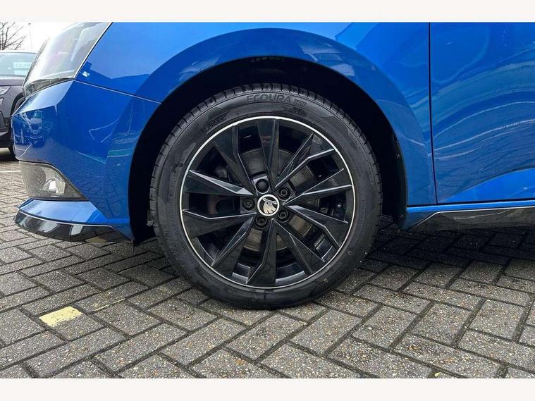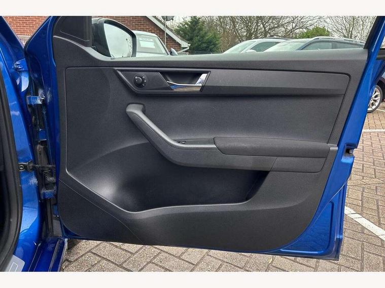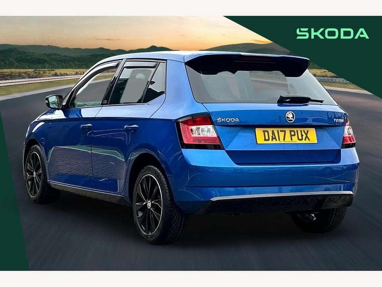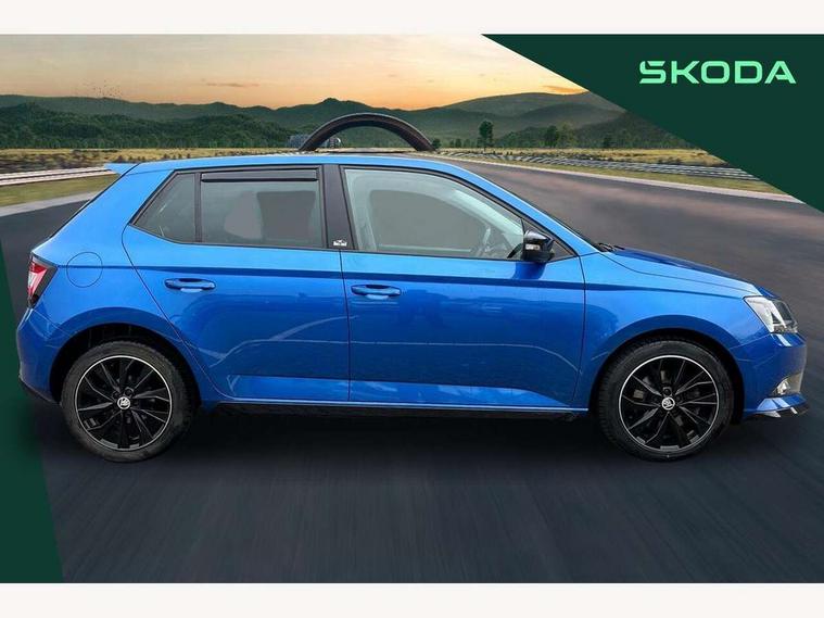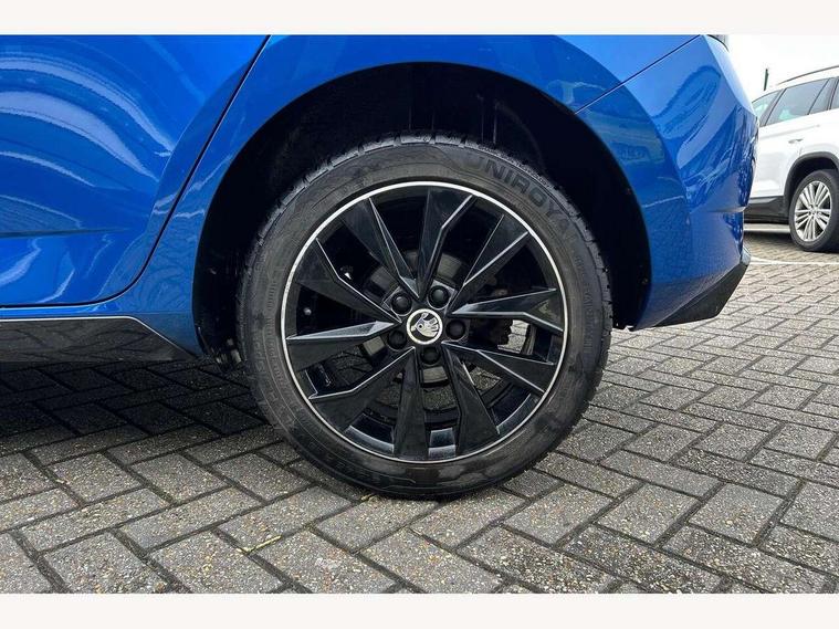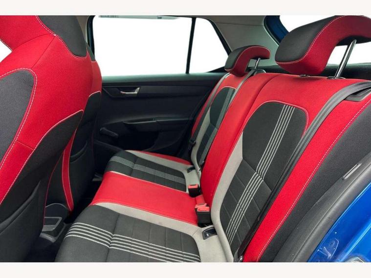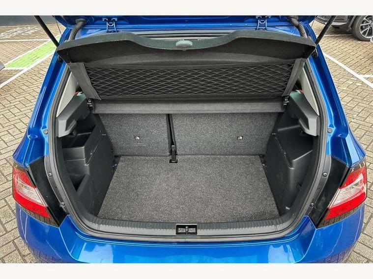 Bluetooth system, Exterior temperature gauge, Front assistant collision mitigation, Maxi dot trip computer, PAS, Service interval indicator, SmartLink, Auxiliary socket for external MP3 player, Bolero radio with telephone control, Mirror Link, USB and SD card, DAB Digital radio, Black door mirrors, Black radiator grille, Body colour bumpers, Body colour door handles, Body coloured rear spoiler, Electric front windows, Electrically adjustable and heated door mirrors, Heated rear window, Height adjustable headlamps, Illuminated door sill inserts, Intermittent rear wash/wipe, LED daytime running lights, Panoramic sunroof, Sunset glass from b-pillar back, Tinted rear windows, Tinted windscreen, 1.5L bottle holder in front door panels, 2 height adjustable rear headrests, 3 spoke leather multifunction sports steering wheel with red stitching, 60/40 split folding rear seat, Boot stowage box, Cargo area storage tray, Cloth upholstery, Driver + passenger vanity mirrors, Floor mats with red stitching, Folding grab handles, Front reading lights, Front sports seats, Height adjustable driver's seat, Height adjustable front headrests, Height adjustable passenger seat, Height/reach adjust steering wheel, Interior light with delay, Leather gearshift, Leather handbrake, Lower glovebox cover, Luggage load hooks, Parcel shelf, Pearl grey carpets, Pearl grey headlining, Pollen filter, Rear courtesy light, Rear storage trays, Storage compartment under front seats, Ticket holder, Two rear outer seat isofix location points, Arkamys surround sound pack - Fabia, Chrome Pack - Fabia, 3x3 point rear seatbelts, ABS, Curtain airbags, Driver and passenger airbags, Driver and passenger side airbags, EDS, ESC with ASR, Front seatbelt pretensioners, Hydraulic Brake Assist (HBA), Passenger airbag deactivate switch, Seatbelt warning, Tyre pressure monitor, Alarm with interior monitoring, Immobiliser, Locking wheel bolts, Remote central locking, Black cube decorative insert,