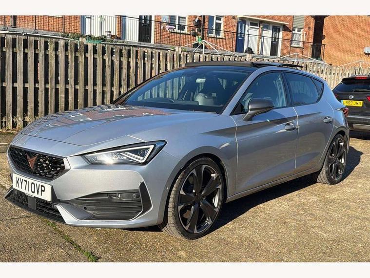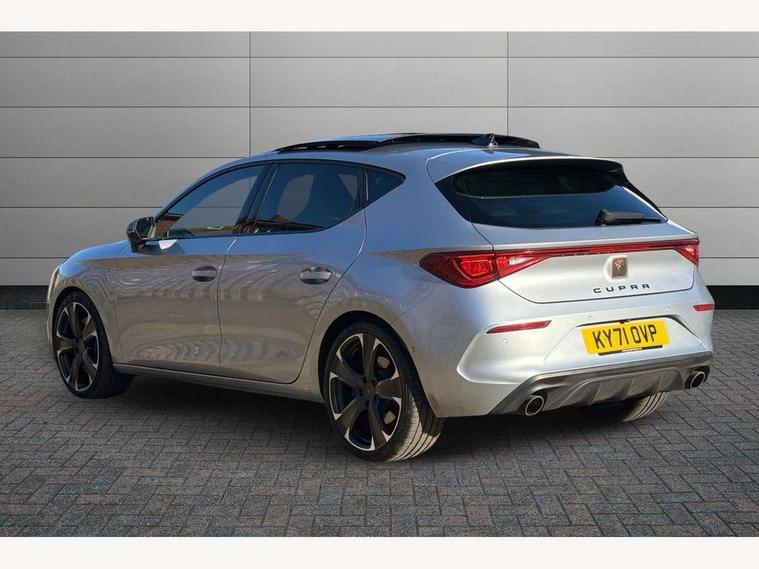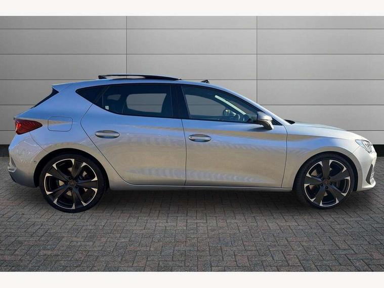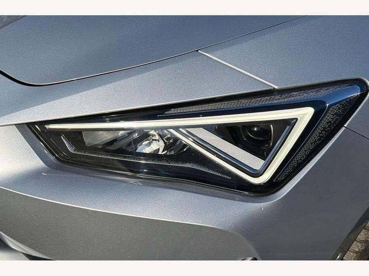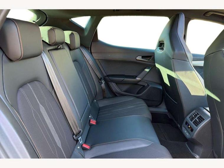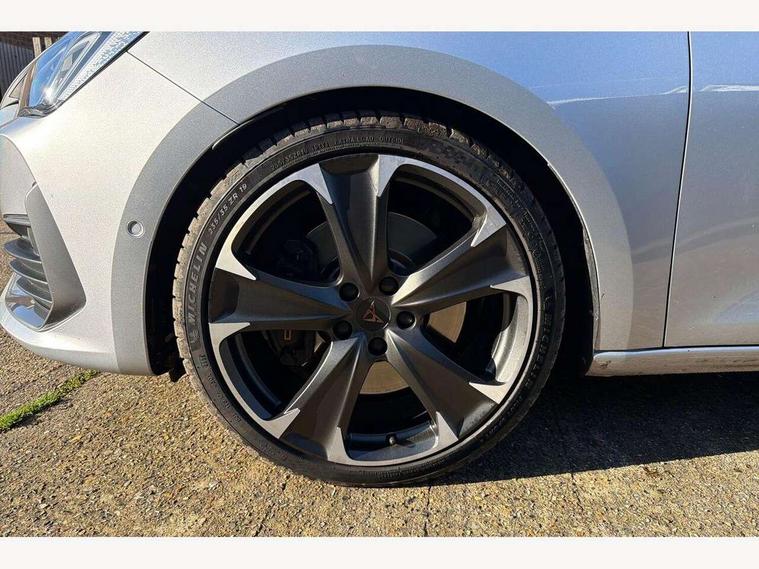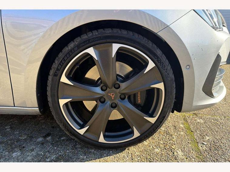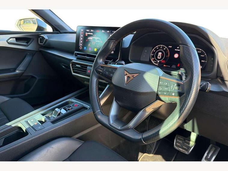 CUPRA drive profile selection with 4 modes (Comfort/Cupra/Sport/Individual), throttle response and gearshift mode, Digital cockpit, E-call, Four x USB Type C ports, Front assist with forward collision warning braking reaction to vehicles, pedestrians and cyclists, Full link smartphone integration with Mirror Link, wireless Apple CarPlay and wired Google Android Auto, Lane assist, Lockable tailgate, Park assist (inc front/rear parking sensors), Rear view camera, RPM, trip computer, outside temp gauge, instrument light brightness, low fuel warning light, lights on reminder, gearshift indicator, Service interval indicator, Start/stop system with regenerative braking, Standard suspension, XDS electronic differential lock and dynamic traction support, 7 speakers, Auxiliary input socket, Auto dimming rear view mirror, Body colour door handles, Body coloured bumpers, Cupra sports bumpers, Dark tinted rear windows, Electric front/rear windows, Electrically adjustable, heated and folding door mirrors, LED front fog lamps with cornering function, LED headlights and tail lights with dynamic turn signals, welcome light silhouette from exterior mirrors and dynamic headlight range control, LED rear fog lamp, Rain sensing wipers, Rear coast to coast lighting, Rear diffuser with splitter and oval quad exhaust pipes, Rear side wing doors, Rear wash/wipe, Separate daytime running light with automatic headlight control and coming home feature, Third brake light, 12v power supply in centre console, 3 seat bench in 2nd row, 5 headrests, 60/40 split rear bench seat with armrest, Ambient lighting (glovebox, footwell, ambient lighting multicoloured), Black headlining, CUPRA Leather flat bottomed, heated, perforated steering and gearshift paddles, Cupra sports pedals, Driver/passenger manual seat height adjustment, Dust/pollen filter, Folding boot cover, Front and rear reading lights X 4, Front centre armrest, Front seats manual lumbar adjustment, Height/reach adjust steering wheel, Illuminated interior front door sills, Interior wraparound lighting, ISOFIX points in outer rear seats with top tether anchorage points, Jack and tool kit, Luggage tie-down hooks, PVC/Cloth upholstery with copper stitching + Cupra embossed logo on headrest, Single front passenger seat, Sports bucket seats, Storage pockets on rear of front seats, Sunvisors with illuminated mirror, Three zone climate control, Dynamic and comfort pack - Leon Cupra, Media system plus with navigation pack - Leon Cupra, 3 point seatbelts on all rear seats, ABS, Brake control system - ESC and brake booster, Child proof door locks, Cupra black brake calipers, Driver and front passenger airbags with front passenger airbag de-activation, front side and curtain airbags, Electronic parking brake, Extended safety system - seat belt tensioner, window closure and hazard lights, Hill hold control, Rear disc brakes, Seat belt reminder for front and rear seats, Tiredness recognition system, Tyre pressure monitoring system, Anti theft alarm system with interior monitoring in cab, backup horn and towing protection, KESSY Advanced - Keyless start, keyless entry, Locking wheel bolts, Chrome and copper interior detailing, 19" Machined black and silver alloy wheels with 91Y tyres, Space saver spare wheel,