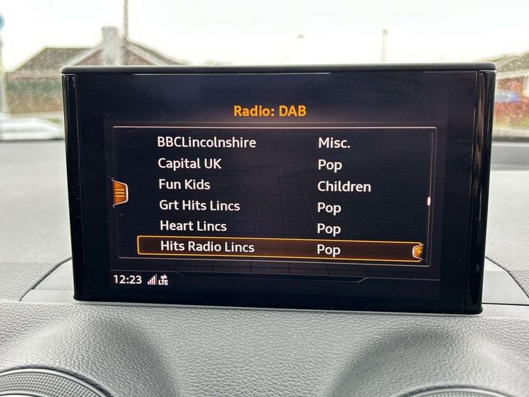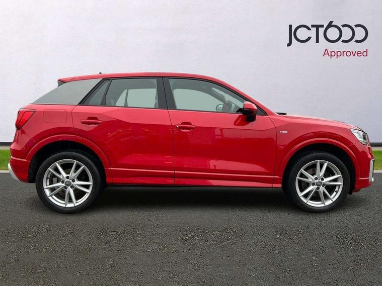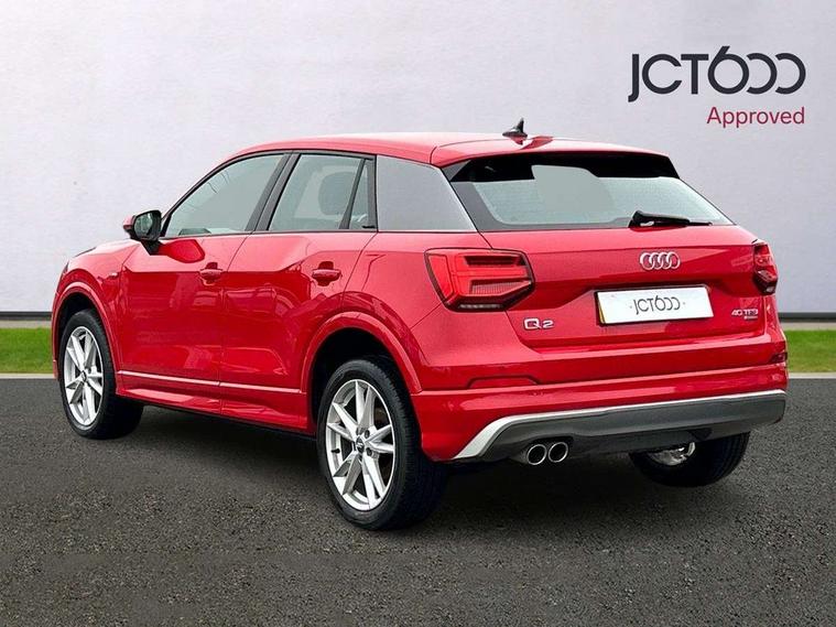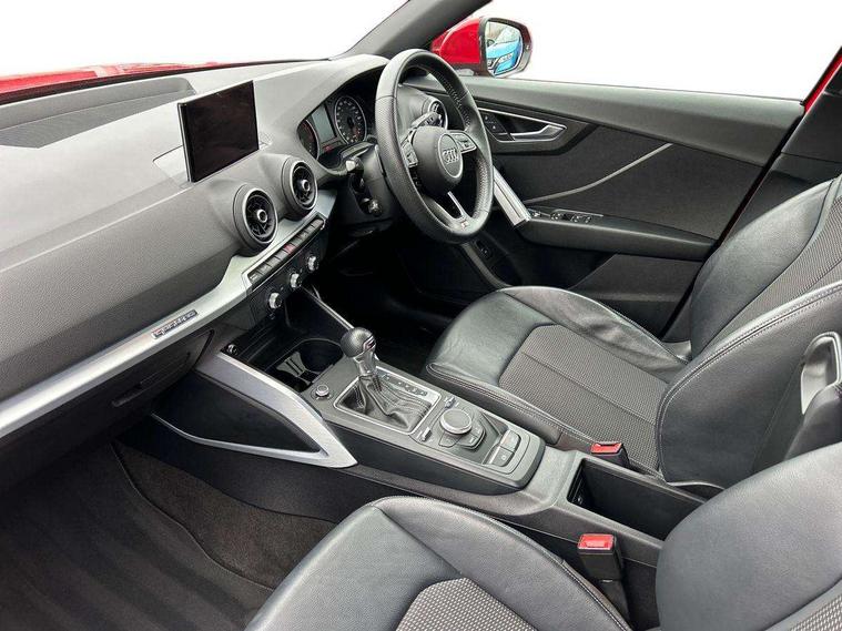 Audi drive select, Audi smartphone interface, Automatic start/stop system with recuperation, Bluetooth interface includes bluetooth audio streaming, MMI - Multi Media Interface control system, MMI SD card Navigation, Power operated tailgate, Progressive steering, Service interval indicator, Voice control system, Audi music interface - apple iPod, apple iPhone, USB storage media, compatible MP3 players, 2 x USB charging points and 1 x Aux-in, CD Drive, DAB digital radio reception, MMI radio plus with 7" colour MMI screen and MMI controller, Black window trims, Chrome exhaust tailpipe, Electrically adjustable and heated door mirrors with integrated LED side indicators, Front and rear electric windows, Front underbody guard and rear diffuser trim in selenite silver, Front windscreen with grey tinted sunband, Headlight washers, Interior mirror, LED headlights with LED rear lights + dynamic rear indicators, LED indicator lights, Rain and light sensors, Rear wiper, S Line badges on the front wings, S Line body styling - front and rear bumpers, side skirts, radiator grille, rear diffuser insert and front air intakes, Black cloth headlining, Floor mats with contrast stitching, Front centre armrest, Front headrests, Front sport seats with S embossed logo, Height/reach adjust steering wheel, Illuminated door sill trims with S logo, ISOFIX child seat mounting with top tether and electrically operated child lock, Manual seat adjustment including seat height adjustment for front seats, Stainless steel pedals, Storage compartments - Glovebox, cupholder compartment in centre console, storage compartment in rear centre console, front and rear door pockets, Three rear headrests, Connectivity pack - Q2, Non smoking pack - Q2, 3x3 point rear seatbelts, 6 airbags - Front, curtain and front side airbags, Electromechanical parking brake, Electronic stabilisation control including ABS, ASR and EDL, Extended and proactive pedestrian protection, Multi collision brake assist, Pre-sense front with pedestrian recognition, Seatbelt monitoring, Tyre pressure warning light, Warning triangle and first aid kit, Anti theft alarm, Anti theft wheel bolts, Central locking system with remote control key, Aluminium interior element, Matt brushed aluminium fascia and door trim inlays,
