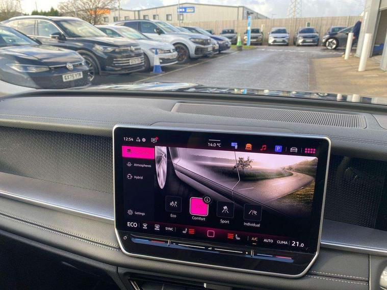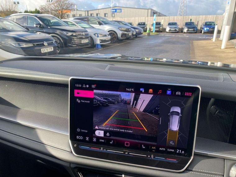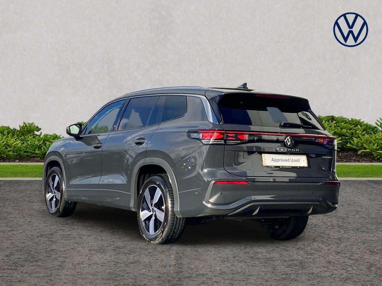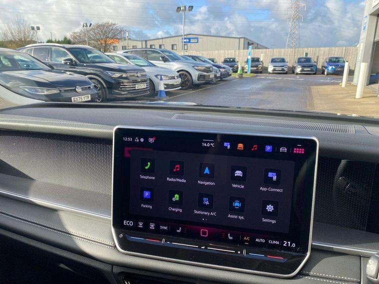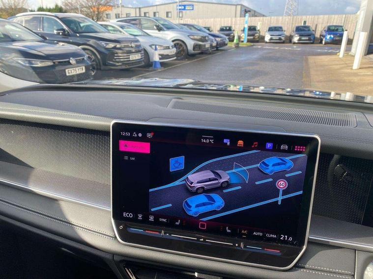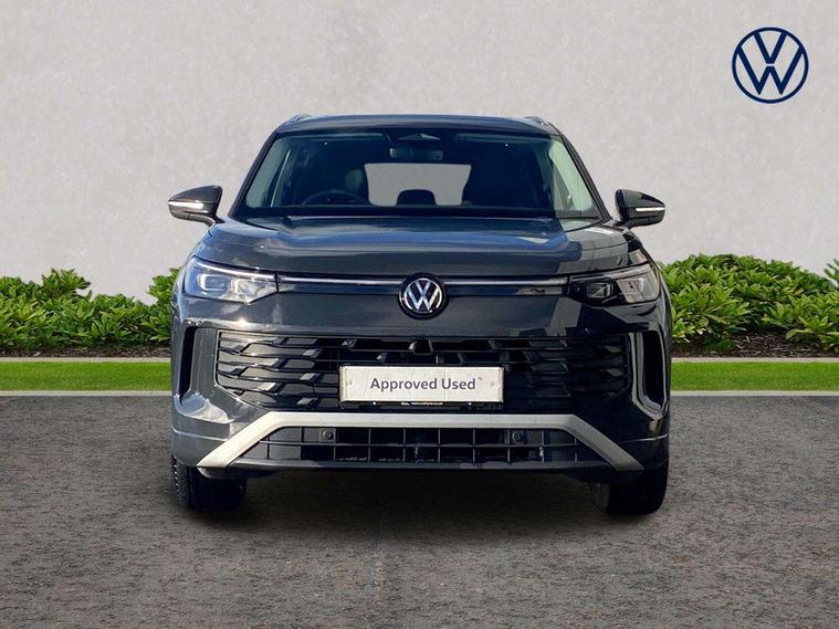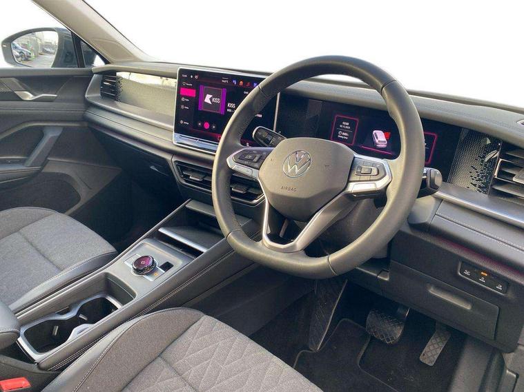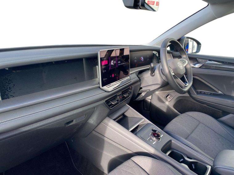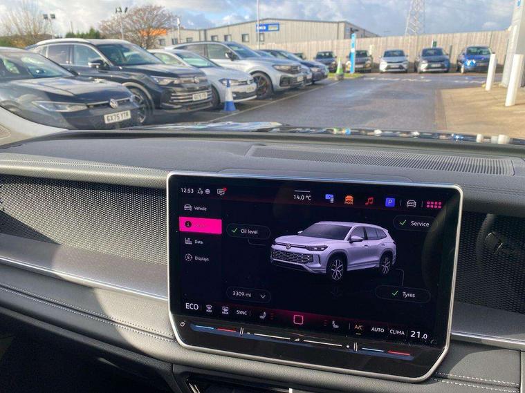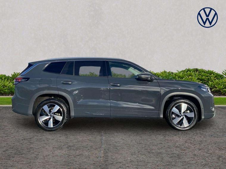Adaptive cruise control (ACC), Digital Cockpit Pro - 10.25" high resolution dash display screen with customisable menus and information, Driver alert system, Driver attention monitoring system, Dynamic road sign display, E-Sim card for online connectivity, eCall emergency call system, Lane change system, Side assist, Rear traffic alert and Exit warning system, Multifunction front facing camera, Oncoming vehicle braking when turning including swerve support, Power assisted steering with speed sensitive, Start/stop system with regenerative braking, Voice activation spoken voice commands for telephone and navigation system, Warning signal and warning light for front and rear seatbelts not fastened, Wireless App-Connect, Adaptive chassis control DCC pro includes driving mode selection, Charging cable Mode 2 Type 2 / G (10A), Charging cable Mode 3 Type 2 / 3 (16A), Front shock absorption G08, Front wheel drive, Rear shock absorption, Digital radio reception (DAB), Diversity antenna for FM reception, Auto dimming interior rear view mirror, Automatic headlight control system, Body colour door handles, Body-coloured exterior mirror housings, Chrome moldings on the side windows, Comfort bumpers, Coming/leaving home lighting function, Exterior mirrors convex on the left and aspherical on the right, Heat insulating glass in side and rear windows, Laminated safety glass windshield, heat insulating, LED 3rd brake light, Puddle lights, Rain sensor windscreen wipers, Rear fog light on one side, reversing light on both sides, Rear side wing doors, Rear wiper, Reverse activated passenger's door mirror, Surround lighting with welcome light, Tilting and sliding panoramic sunroof with rear panoramic sunroof, 12V outlet in center console rear and in luggage compartment, 3 rear headrests, 3 rear seat bench in 2nd row, split folding, longitudinally movable and folding with load-through hatch, Carpet mats, front and rear, Centre console with illuminated storage compartment with sliding cover and two drinks holders, Door and side trim panel with leatherette insert, Flat luggage compartment floor, Front centre armrest, ISOFIX anchors for child seats on outer rear seats and front passenger seat compatible with i-Size, Mechanical rear seat release, Power adjustable lumbar support in front, Single front passenger seat, Sun visors with illuminated vanity mirrors, Comfort package with park assist pro - Tayron, 3 Point seat belts in front with pretensioners, 3 point seatbelts in outer rear with ECE label, Autonomous emergency braking front assist with pedestrian and cyclist monitoring, Driver and front passenger airbag with front passenger airbag deactivation, Electronic parking brake with auto hold, First aid kit with warning triangle and safety vest, Front and rear curtain airbags, Front and rear side airbags, Front centre airbag, Front disc brakes, Hill start assist, Rear disc brakes, Two tone horn, Decorative material set, Tool kit for tyre mobility set, Tyre mobility kit including compressor and sealing foam. In lieu of spare wheel,