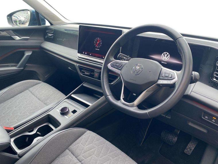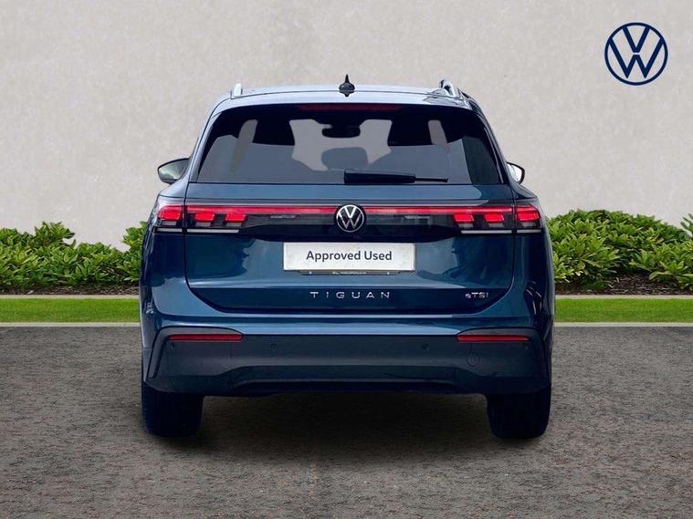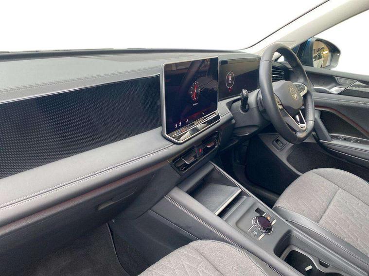 Adaptive cruise control (ACC), Advanced driver attention and drowsiness monitor, Bluetooth mobile phone interface, Car2X technology, Digital Cockpit Pro - 10.25" high resolution dash display screen with customisable menus and information, Dynamic road sign display, E-Sim card for online connectivity, eCall emergency call service, Front Assist - Autonomous emergency braking with pedestrian and cyclist monitoring, Lane change system, Side assist, Rear traffic alert and Exit warning system, Lane keeping system Lane Assist, Multifunction front facing camera, Oncoming vehicle braking when turning including swerve support, Park assistance plus with front and rear parking sensors, Power assisted steering with speed sensitive, Start/stop system with regenerative braking, Warning signal and warning light for front and rear seatbelts not fastened, Wireless App-Connect, Front wheel drive, Digital radio reception (DAB), Diversity antenna for FM reception, Ambient lighting with logo projection, Auto dimming interior rear view mirror, Automatic headlight control system, Body coloured bumpers and air intake with chrome trim, Body coloured door handles, Body-coloured exterior mirror housings, Coming/leaving home lighting function, Heat insulating glass in side and rear windows, Heat insulating windshield, Heated rear window, High level 3rd brake light, Illuminated door handle recesses, Illuminated lightline between headlamps, Rain sensor windscreen wipers, Rear fog light on one side, reversing light on both sides, Rear side wing doors, Rear wiper, 12V outlet in center console rear and in luggage compartment, 12V socket in centre console, 3 bench rear seats in 2nd row, Air care climatronic 3 zone air conditioning system with rear air conditioning control panel, Carpet mats, front and rear, Centre console with illuminated storage compartment with sliding cover and two drinks holders, Ceramique headlining, Door and side trim panel in foam film and woven fabric, Front centre armrest, ISOFIX anchors for child seats on outer rear seats and front passenger seat compatible with i-Size, Mechanical rear seat release, Power adjustable lumbar support in front, Rear bench seat, split folding, longitudinally movable and folding with load-through hatch and centre armrest, Safety optimised front head restraints, Single front passenger seat, Sun visors with illuminated vanity mirrors, Three rear head restraints, Variable luggage compartment floor, Comfort package with park assist plus and Safelock - Tiguan, Design package - Tiguan, 3 point seat belt for centre rear seats, 3 Point seat belts in front with pretensioners, 3 point seatbelts in outer rear with ECE label, Driver and front passenger airbag with front passenger airbag deactivation, Electronic parking brake with auto hold, Front and rear curtain airbags, Front and rear side airbags, Front centre airbag, Front disc brakes, Manual child proof rear door locks, Rear disc brakes, Two tone horn, Warning triangle, Anti theft wheel bolts, Soul instrument panel,