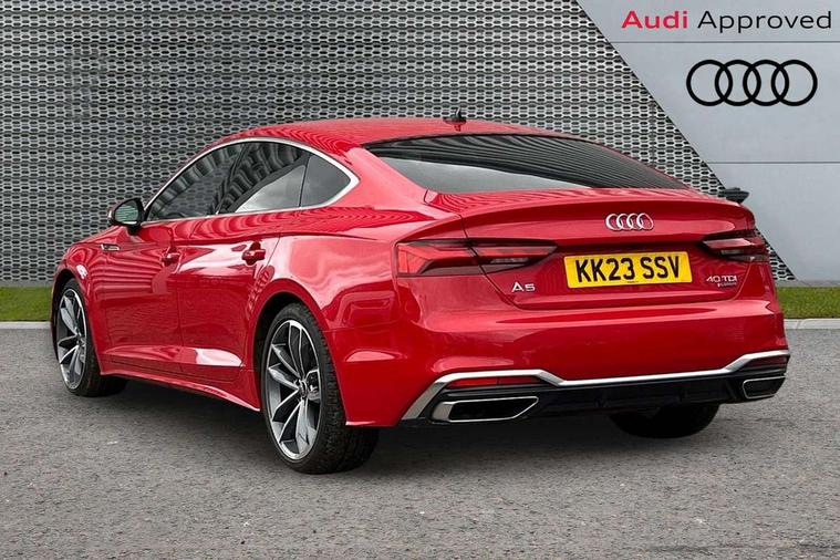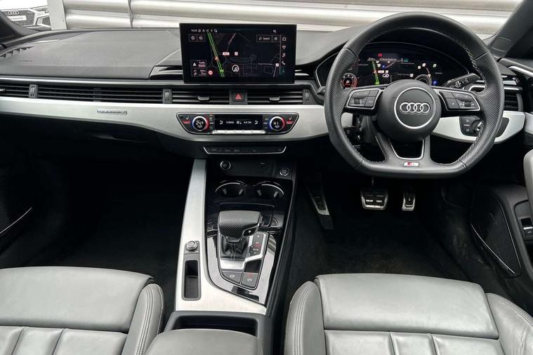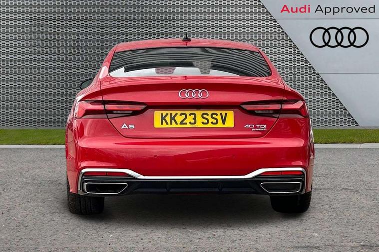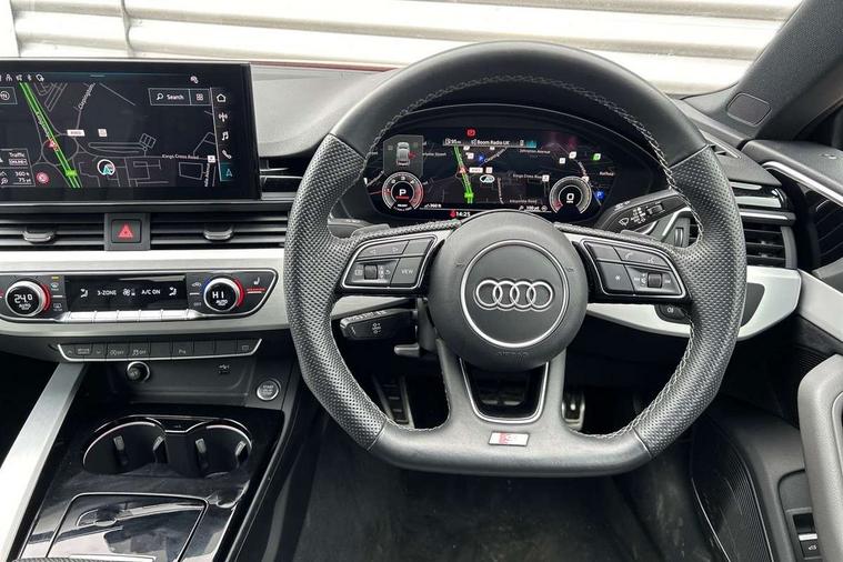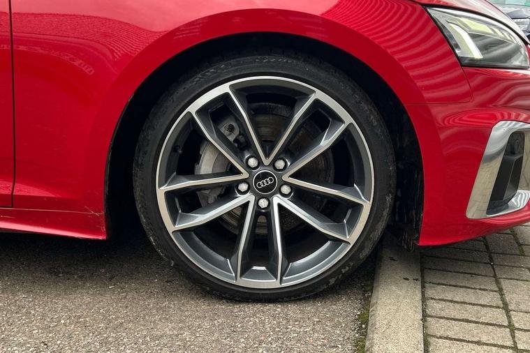 Audi connect safety and service (e-call), Audi connect with Amazon Alexa Integration, Audi drive select (Auto, Comfort, Dynamic, Efficiency and Individual), Audi parking system plus with front and rear sensors, Audi smartphone interface, Audi virtual cockpit - 12.3" full colour digital instrument cluster, vehicle/engine speed, Radio/media information+Driver assistance systems, Automatic start-stop system with coasting functionality and efficiency programme, Bluetooth interface, Electro-mechanical power steering, Email, calendar and text messages displayed via MMI, MMI nav+ with MMI touch - 10.1" high resolution MMI display, touch sensitive, 3D map, route/country info, dynamic route guide, personal route assist, Power operated tailgate, Rear view camera, Service interval indicator, Voice control system, Diesel particulate filter, Sports suspension lowered by 23mm, 8 passive loudspeakers, CD player, DAB digital radio reception, Two additional USB ports for rear passenger in rear centre console, Two SDXC card slots, Audi matrix LED headlights with LED rear lights + dynamic front and rear indicators, Auto dimming door mirrors, Auto dimming rear view mirror, Body colour bumpers, Body colour door handles, Body colour front spoiler lip, Body colour side sill trim, Body coloured door mirrors, Electric adjustable heated door mirrors, Electric folding door mirrors, Electric front windows, Front fog lights, Honeycomb structure radiator grille in grained matt black, Kerb-view function for passenger side, LED daytime running lights, LED side indicator lights integrated into door mirrors, LED third brake light, Matt aluminium silver tailpipe trim, Privacy glass, Rain and light sensors, Rear side wing doors, S line badges on front wings, S line front and rear bumpers with side skirts, S Line rear diffuser in matt anthracite black with trim strip in matt aluminium silver, Side air inlets in grained matt black with matt aluminium silver inlay, Variable front intermittent wipers, Windscreen with acoustic glazing, 3 seat bench in 2nd row, 3 spoke high multifunction leather sport steering wheel with paddle shfit and S badging perforated leather grips, 4 way electric lumbar support for driver and front passenger, 40/20/40 split folding 3 seater rear bench seat, Adjustable steering column, Black cloth headlining, Black perforated leather gearknob, Contrast stitching on seats, steering wheel and gear lever gaiter, Deluxe 3 zone electronic climate control, Front centre armrest, Front head restraints, Front/rear floor mats, Heated front seats, Illuminated door sill trim with S logo, ISOFIX child seat mounting and top tether, Luggage compartment mat, Manual seat adjustment, Rear centre armrest, Rear headrests, Single front passenger seat, Stainless steel pedals, Sunvisors with vanity mirrors, LED interior light pack - A5/RS5, 3x3 point rear seatbelts, 6 airbags - Driver, front passenger, curtain and side airbags, Electromechanical parking brake, Electronic Stabilisation Control (ESC) including ABS, ASR and EDL, Front passenger airbag deactivation, Height adjustable front seatbelts, Hill hold assist, Manual child lock in rear doors, Multi collision brake assist, Pop-up bonnet for pedestrian protection, Pre sense city, Seatbelt monitoring, Tyre pressure warning, Variable restraint system, Warning triangle and first aid kit, Anti theft alarm system, Anti theft wheel bolts, Immobiliser, Keyless Go, Remote central locking, Matt brushed aluminium inlays, Tool kit, Tyre repair kit,