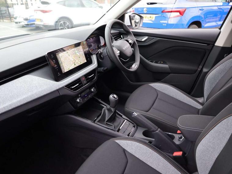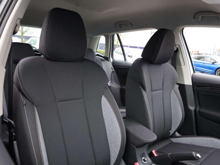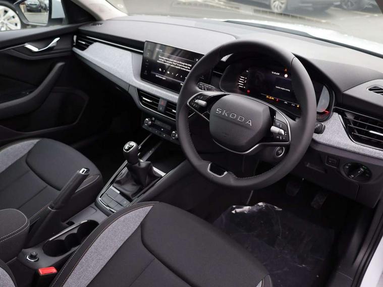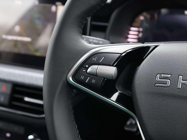 Advanced driver attention and drowsiness monitor, Bluetooth system, E-call, Front assist system, PAS, Rear parking sensors, Rear view camera, Service indicator, Speed limiter, Traffic sign recognition, Virtual cockpit with 10.25" display, Wireless smartlink, 4 USB C ports, 8 Speakers, 9.2" Skoda navigation display, DAB Digital radio, Auto dimming rear view mirror, Automatic headlight control with coming home and leaving home feature, Black roof rails, Body colour bumpers, Body colour door mirrors and handles, Chrome grille surround, Front and rear electric windows, Full LED headlights, Heated rear window, LED brake lights, LED daytime running lights, LED front turning lights, LED high beam, LED low beam, LED third brake light, Rear LED fog light, Rear side wing doors, Rear wiper, Ticket holder inside windscreen, 12V socket in luggage compartment, 3 seat bench in 2nd row, Black hotstamping, Cargo elements, Chrome inner door handles, Driver and passenger sun visors with vanity mirror, Dual zone climate control, Front and rear roof lights, Front centre armrest, Front head restraints, Glove compartment with illumination, Height adjustable driver seat, Height adjustable front passenger seat, Ice scraper, Inner circulation control with pollen filter, ISOFIX on front passenger seat, Isofix preparation for back seats, Krepp recycled decor inserts, Leather gearknob and handbrake lever, Loft cloth upholstery, Manual lumbar support for front seats, Net package and top tether hooks in boot space, Net under rear shelf, Overhead glasses storage compartment, Pocket on the back of both front seats include mobile phone pockets, Rake/reach adjustable steering wheel, Reading lights, Satin black door inserts, Single front passenger seat, Textile floor mats, Third rear headrest, Top tether for front passenger seat, Umbrella in driver's door, 3x3 point rear seatbelts, Airbags - driver and front passenger, Disc brakes, ESP, Extended and predictive pedestrian/cyclist protection, Front passenger airbag deactivation switch, Front side airbags with curtain airbags, Hill hold control, Manual leather parking brake, Manual rear child locks, One tone horn, Seatbelt reminder for driver an co-driver, Traction control, Tyre pressure monitor, Anti-theft alarm system with interior monitoring, backup horn, towing protection and remote central locking with SAFE system, Anti-theft wheel bolts, Electronic engine immobilizer,
