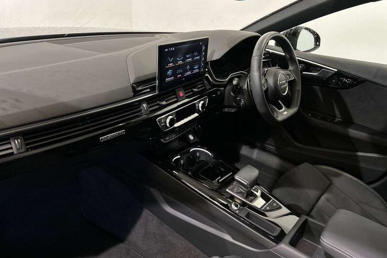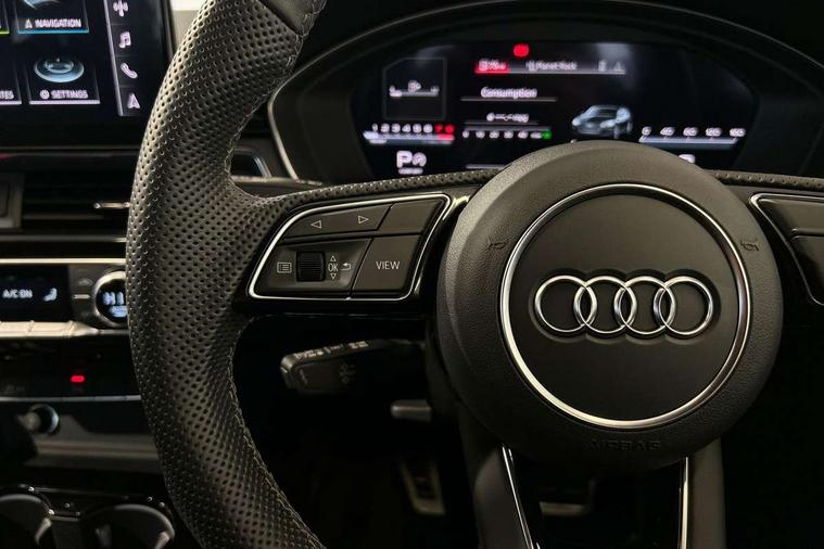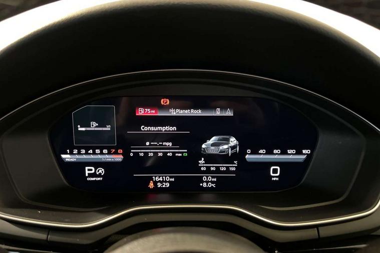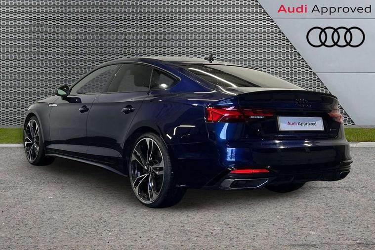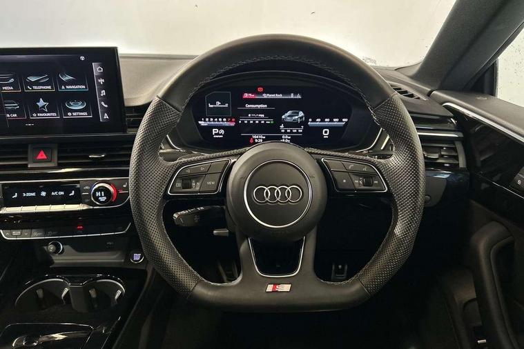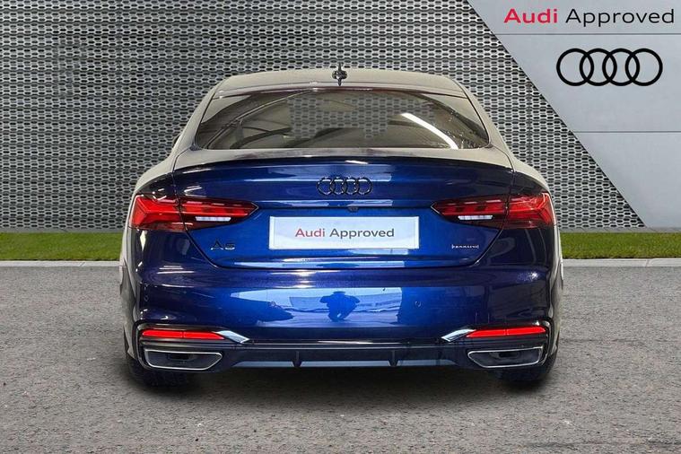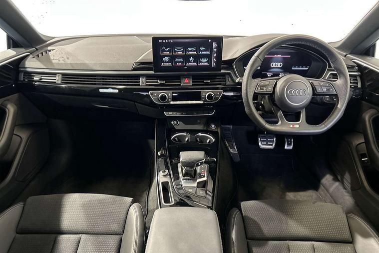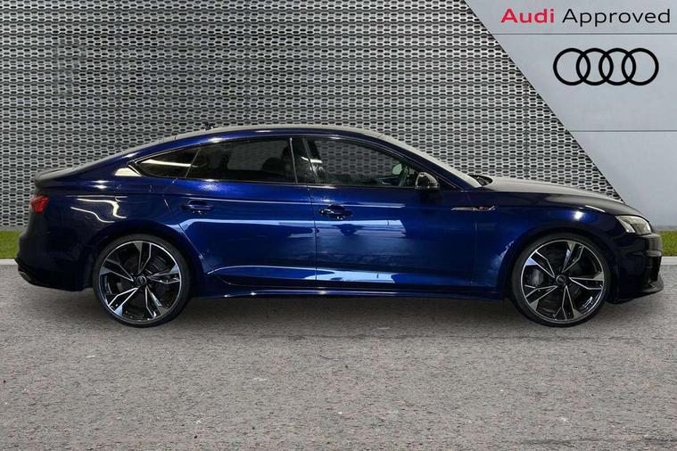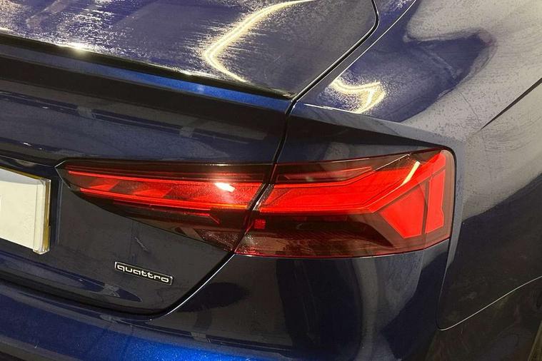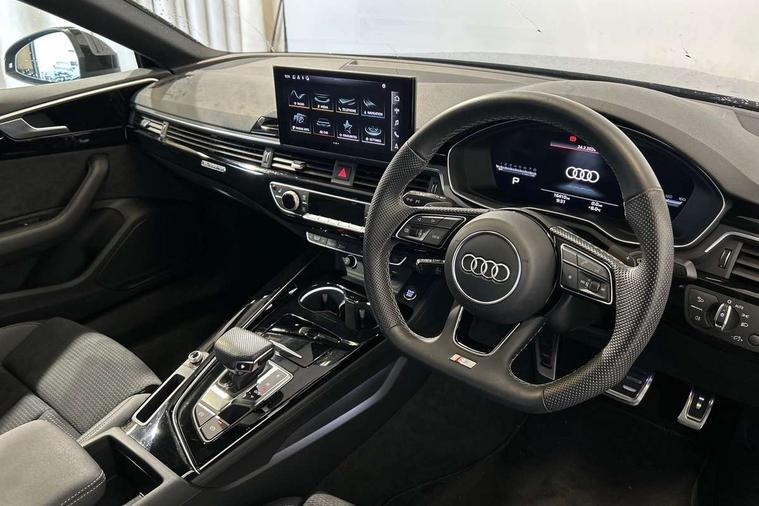 Audi connect safety and service (e-call), Audi connect with Amazon Alexa Integration, Audi drive select (Auto, Comfort, Dynamic, Efficiency and Individual), Audi parking system plus with front and rear sensors, Audi smartphone interface, Audi virtual cockpit - 12.3" full colour digital instrument cluster, vehicle/engine speed, Radio/media information+Driver assistance systems, Automatic start-stop system with coasting functionality and efficiency programme, Bluetooth interface, Electro-mechanical power steering, Email, calendar and text messages displayed via MMI, MMI nav+ with MMI touch - 10.1" high resolution MMI display, touch sensitive, 3D map, route/country info, dynamic route guide, personal route assist, Power operated tailgate, Rear view camera, Service interval indicator, Voice control system, Sports suspension lowered by 23mm, 8 passive loudspeakers, CD player, DAB digital radio reception, Two additional USB ports for rear passenger in rear centre console, Two SDXC card slots, Audi matrix LED headlights with LED rear lights + dynamic front and rear indicators, Auto dimming rear view mirror, Black audi rings decal above rear sills, Black door mirror housings, Body colour door handles, Body colour front spoiler lip, Body colour side sill trim, Electric adjustable heated door mirrors, Electric folding door mirrors, Electric front windows, Front fog lights, Honeycomb structure radiator grille in grained matt black, LED daytime running lights, LED third brake light, Matt aluminium silver tailpipe trim, Privacy glass, Rain and light sensors, Rear diffuser in matt titanium black with trim strip in matt aluminium silver, Rear side wing doors, S model rear spoiler in black, Side air inlets in grained matt black with matt aluminium silver inlay, Sport front and rear bumpers with side skirts, Variable front intermittent wipers, Windscreen with acoustic glazing, 3 Spoke flat bottom high multi-function leather steering wheel with shift paddles, 4 way electric lumbar support for driver and front passenger, 40/20/40 split folding 3 seater rear bench seat, Adjustable steering column, Black cloth headlining, Black perforated leather gearknob, Contrast stitching on seats, steering wheel and gear lever gaiter, Deluxe 3 zone electronic climate control, Front centre armrest, Front head restraints, Front/rear floor mats, Heated front seats, Illuminated door sill trim with S logo, ISOFIX child seat mounting and top tether, Luggage compartment mat, Manual seat adjustment, Rear headrests, Single front passenger seat, Stainless steel pedals, Sunvisors with vanity mirrors, Black styling pack - A5 Coupe/Sportback, LED interior light pack - A5/RS5, 3x3 point rear seatbelts, 6 airbags - Driver, front passenger, curtain and side airbags, Electromechanical parking brake, Electronic Stabilisation Control (ESC) including ABS, ASR and EDL, Front passenger airbag deactivation, Height adjustable front seatbelts, Hill hold assist, Multi collision brake assist, Pop-up bonnet for pedestrian protection, Pre sense city, Seatbelt monitoring, Tyre pressure warning, Variable restraint system, Warning triangle and first aid kit, Anti theft alarm system, Anti theft wheel bolts, Immobiliser, Keyless Go, Remote central locking, Piano black finish inlay, 20" 5 twin spoke polygon design alloy wheels in gloss anthracite black and gloss turned finish, Tool kit, Tyre repair kit,