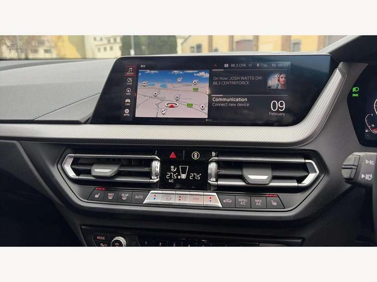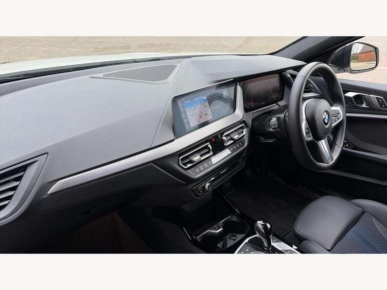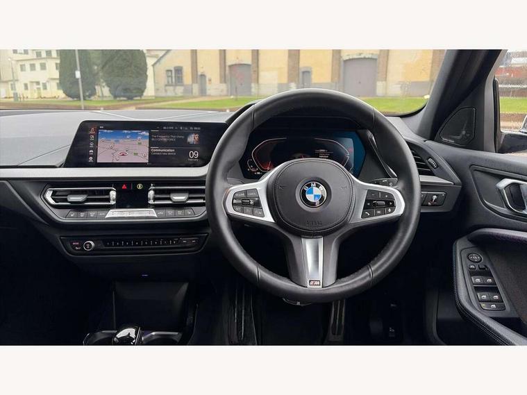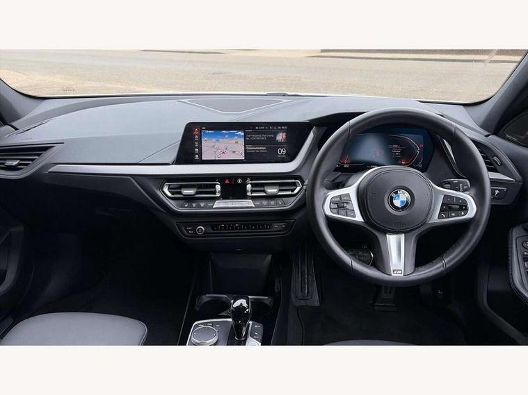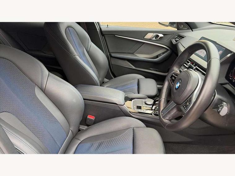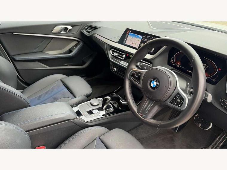 Active guard plus, Attentiveness assist, BMW ConnectedDrive online services, BMW Teleservices, Check Control warning system for monitoring of lights and door/luggage compartment open warning, Cruise control with brake assist, Eco pro mode, Front axle single joint with specific axle kinematics to minimise drive influences on steering + provide increased rigidity agile driving behaviour, Integrated owners handbook, Lane departure warning system, Oil sensor for level and grade, On board computer, Optimum shift indicator, Personal Profile, Pull away assistant, Rigidly mounted rear subframe - Multi link construction with separate spring / damper configuration and excellent driving characteristics, Speed limit Info including no-overtaking indicator, Speed limiter, Aluminium lightweight construction, Anti roll bar front and rear, Balancer shaft, Double VANOS twin scroll turbocharging system, Drive Performance Control, Electronic differential lock, High precision injection, M sport suspension, Petrol Particulate Filter, Twin tube gas filled shock absorbers with degressive characteristic curve, VALVETRONIC engine management, DAB Digital radio, Auto dimming rear view mirror, Automatic headlight beam throw control, Automatic windscreen wipers and automatic headlight, Body colour door handles, Body colour mirror caps, Body colour roof trims, Chrome 'M' logo side designation, Chrome exhaust twin tailpipes round 90mm in left, Chrome kidney grille frame with Satin Aluminium struts, Direction indicator side lights in exterior mirrors, Fading support, Folding side mirrors with auto dimming/folding wing mirrors with auto dimming, Follow me home headlights, Front and rear bumper system with replaceable deformation elements, Front and rear electric windows with open and close fingertip control, anti trap facility and comfort closing, Front door sill finishers in black plastic with M designation in metallic look, Green tinted heat protection glazing, Heated, electrically adjustable exterior mirror aspheric on driver side, convex on passenger side, High gloss shadowline window frame, Recess cover mirror frames and B/C pillar embelisher trim, High level third brake light, Integrated front windscreen with washer jets, LED daytime running lights, LED eyebrow turn indicators, LED front fog lights, LED Headlights, Lightweight engineering, Matt black air guide grilles, Matt black wheel arch trim, Model designation on electric bootlid, Nearside reverse light in rear light cluster, Preparation for high beam assistant, Rear fog lights, Rear side wing doors, Rear window wiper, Shark fin antenna, Trailer stabilisation logic, Visible VIN plate, Welcome lighting, 12V power socket in front centre console with blanking plug, 3 rear seat head restraints, 3 seat bench in 2nd row, 3 spoke sports leather steering wheel with black leather and stitching, pearl chrome decorative finish, specific M Badge, Anthracite headlining, Black boot net with lashing eyes, Cargo function on 2nd seat row, Child seat ISOFIX attachment for two outer rear seats and front passenger seat with anchorage points, Conditioned based service, Driver and front passenger seat heating, Folding rear clothes hook, Four grab handles integrated in roof lining, Front and rear door pockets with bottle holders, Front and rear side armrest integrated into door trim, Front armrest, Front sports seats, Glove compartment, Height adjustable front head restraints, Luggage compartment for bag hooks on left and right, foldable luggage compartment liner and four lashing eyelets, Manual adjust steering wheel, Multi-function controls for steering wheel, Single front passenger seat, Storage compartment in centre console, Sun visors with vanity mirrors and insert tab, Two front centre console cupholders, Two zone automatic air conditioning, Velour floor mats, Additional interior lighting pack - 1 Series, BMW live cockpit professional pack- 1 Series, Connected pack professional - 1 Series, Interior lights pack - 1 Series, M Sport exterior styling aerodynamics pack - 1 Series, 2 tone horn, 3 point seatbelts on all seats, front pyrotechnic belt tensioners, stopper and belt force limiters, rear coded belt buckles, Airbags - Front driver/passenger, front and rear curtain head protection, front side, manual deactivation of front passenger airbag, Anti lock braking system (ABS) with brake assist, BMW emergency call, Brake drying, Braking readiness, Child proof locking system in rear door, City braking function, Comfort modes, Cornering brake control, Crash sensor activating central locking release, hazard warning lights, fuel cut off, interior lighting + activation of safety battery terminal clamp, Driver and front passenger seat belt security check, Dynamic stability control + (DSC+), Dynamic Traction Control - DTC, Electrically operated hand brake including automatic hold function, Front and rear disc brakes, Seatbelt warning, Side impact protection, Tyre pressure monitoring system, Warning triangle and first aid kit, Central locking switch for all doors, fuel filler cap and luggage compartment, Deadlocking function system to all doors, Drive away locking system on all doors and luggage compartment with de-activated in iDrive settings, Locking wheel bolts, Remote control with integrated key with High-gloss Black inlay and M designation and 1 button for open/ close lock, window, open luggage compartment, Start/stop button illuminated in centre console with keyless engine start and auto start stop deactivation button, Thatcham Cat.1 alarm and immobiliser, Wheel slip limitation close to the actuator (ARB), Contrast stitching on instrument panel, Electrically powered 12V compressor, Reduced rolling resistance tyres,