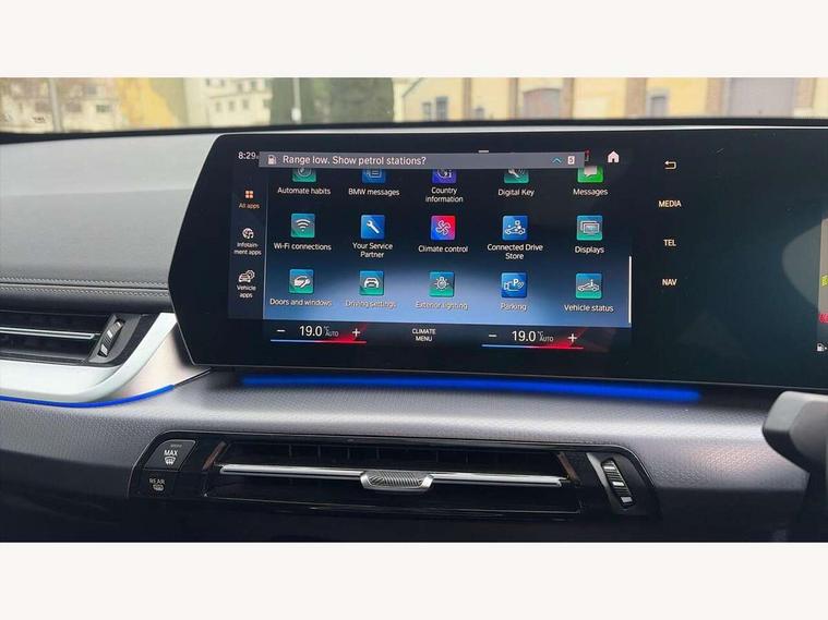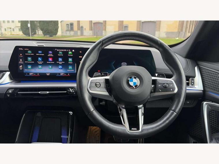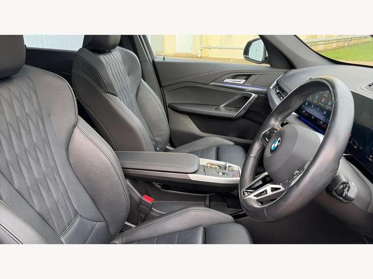 Active Guard + lane departure warning, speed limiting, front collision warning, Left turn warning with brake function and evasion assist, Attentiveness assist, Automatic start/stop function, BMW Live Cockpit Plus with 10.25" instrument cluster and 10.7" display, BMW Online services, BMW Teleservices, Brake pad wear indicator, Condition based service, Connected eDrive Services, Drive off assistant, Electrically opening/closing tailgate with opening/closing with remote control and contactless opening and closing, iDrive controller, Language version English, My Modes, Parking Assistant with Reversing Assistant, active PDC, Lateral Parking Aid, Rear View Camera and Park Distance Control, Personal Profile - automatic lock when driving away selectable, Servotronic PAS, Tyre puncture warning system, Widescreen display, Wireless charging, M Adaptive suspension, Performance Control, Petrol Particulate Filter, Steptronic transmission with double clutch and gear shift paddles, DAB Digital radio, Auto dimming interior rear view mirror, Badge on engine compartment lid and tailgate, Contoured rear roof spoiler in vehicle colour with side aeroblades in black high-gloss, Dynamic brake lights, Electric adjustable heated door mirrors, Electric windows - front and rear, with open/close fingertip control, anti-trap facility and comfort closing, Folding door handles integrated flush with surface, Folding wing mirrors with auto dimming, Follow me home headlights, Front and rear bumper panel with M specific design, in body colour with inserts in black high gloss, Front door exit lights, Front entry sills aluminium inserts with M inscription, Heated rear window, High gloss shadow line includes B-pillar trim panel/window cavity cover/window frame/window guide rail front doors/door mirrors in high gloss black, Invisible exhaust tailpipe, Key with M identification, LED 3rd brake light integrated in rear spoiler, LED daytime running lights, LED number plate light, M identification on the sides, M roof rails high gloss shadow line, M specific radiator grille in satinated aluminium, Matt black roof strips, Model inscription on right tailgate, Rain sensor including auto headlights activation, Rear side wing doors, Rear wiper, Side sill covers with M specific design in body colour, Trailer stabilisation logic, Welcome lighting, Window washer nozzle for rear view camera, Windscreen wipers with front and rear heated washer nozzles, 12V - Power sockets with front centre console and luggage compartment, 2 cup holders in front, 2 x USB Type C ports for charging and data transmission (front centre console) and 2 x USB Type C ports for charging (rear centre console), 3 rear headrests, 3 seat bench in 2nd row, 3 upper retaining strap clips integrated into rear panels of seat backrests, 40:20:40 split folding rear seats, Ambient interior lighting, Anthracite headlining, Anthracite Velour front and rear floormats, Bottle trays in all doors, Child seat ISOFIX attachment for two outer rear seats and front passenger seat with anchorage points, Clothes hook rear, Driver and front passenger heated seats, Dual zone automatic air conditioning, Front and rear door pockets, Front centre console storage compartment, Front sports seats, Front/rear adjustable head restraints, Glove compartment, Light on right in luggage compartment, M sport leather steering wheel, Manual steering column height and depth adjustment, Map pockets, Middle centre console storage compartment, Rear armrest in door trim panel, Single front passenger seat, Sport leather multifunction steering wheel with thumbrests and operation of instrument display, audio, telephone and driver assistance, Storage compartment with folding cover under centre console armrest cushion, Connected Package Professional - X1, Technology pack - X1, ABS/EBD, Automatic hold function, Automatic Stability Control (ASC), BMW emergency call, Braking readiness, Cornering brake control (CBC), Crash Sensor - activates hazard/interior lighting + unlocks doors, Driver/Front Passenger airbags, Driver/front passenger side airbags, Dry braking, Dynamic stability control + (DSC+), Electromechanical parking brake, Energy recovery system, Front and rear brake discs, Front and rear head airbags, Front passenger airbag deactivation, Integrated brake system, PC iBrake PostCrash approach control warning with light braking function, Rear door child safety locks, Three point seat belts in all seats, Tyre pressure monitor, Warning triangle, Alarm system with tilt sensor, monitoring doors, bonnet interior and tailgate, Closing system with central locking, Locking wheel bolts, Luxury instrument panel, Tyre repair kit (including Tyre sealant and 12V Compressor),