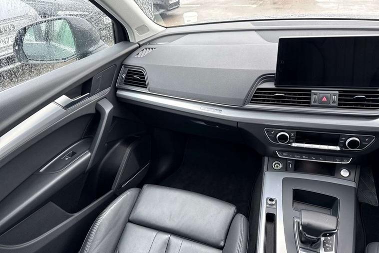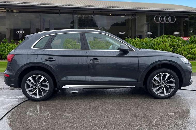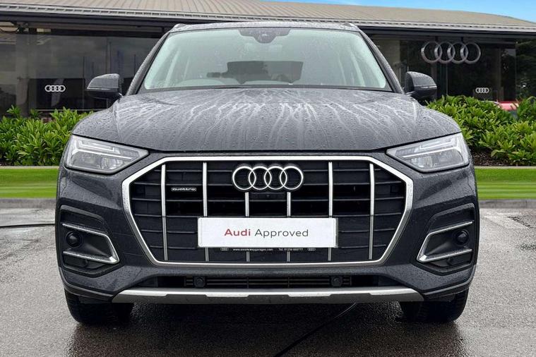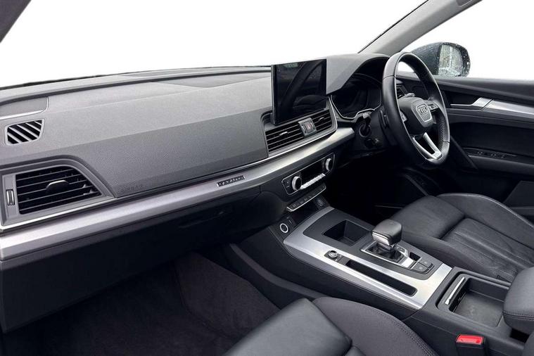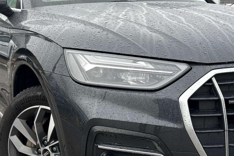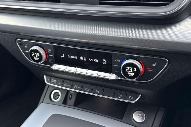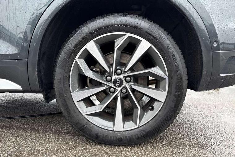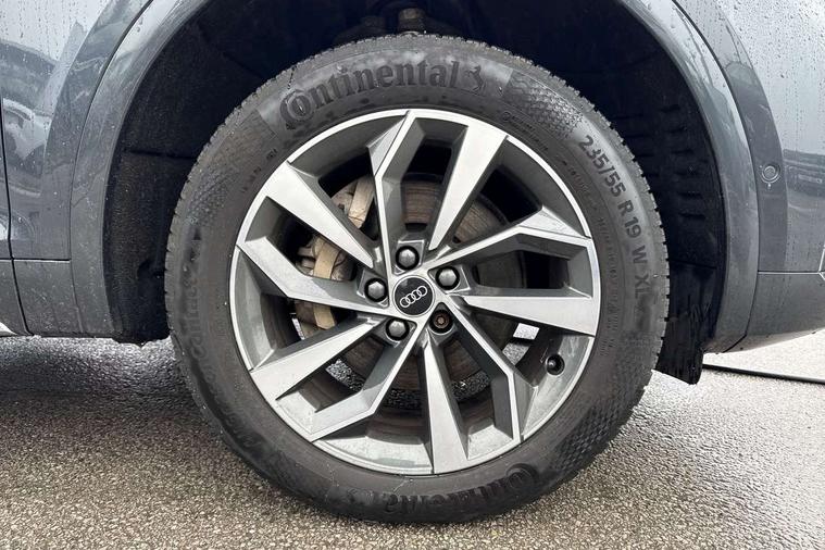 Audi connect safety and service (e-call), Audi connect with Amazon Alexa Integration, Audi drive select, Audi virtual cockpit plus with 12.3" screen and three different layout designs, Audi wireless smartphone interface, Automatic start-stop system with coasting functionality and efficiency programme, Bluetooth interface, Cruise control + speed limiter, Electro - mechanical power assisted steering, MMI navigation plus with 10.1" touch screen, Power tailgate, Reversing camera, Service interval indicator, Voice control system with Audi hotword activation "Hey Audi", Dynamic suspension, Quattro on demand, DAB Digital radio, 3rd brake light, Acoustic windscreen, Air inlets in matt titanium black with blades in matt aluminium silver, Aluminium roof rails, Auto dimming door mirrors, Auto dimming rear view mirror, Automatic headlight adjustment, Automatic headlights and windscreen wipers, Body colour bumpers, Body colour door mirrors, Chrome plated exhaust trims, Daytime running lights, Door sills in Selenite silver, Electric adjustable/heated/folding door mirrors, Front and rear electric windows, LED headlights and LED tail lights, Lower bumpers painted in contrast Manhattan grey, Matt selenite silver underbody protection, Matt twilight grey radiator grille with chrome vertical struts, Rear chrome trim strip below lights, Rear diffuser strip in selenite silver, Rear side wing doors, Rear spoiler, Rear wiper, Roof bars, 2 x USB charging port with aux input socket, 3 rear headrests, 3 spoke multifunction leather steering wheel with shift paddles, 40:20:40 split folding 3 rear bench seat in 2nd row with rear centre armrest, Comfort front centre armrest, Deluxe 3 zone electronic climate control, Door sills trims with aluminium inlays, Front/rear floor mats, Heated front seats, Height adjustable front head restraints, Height/reach adjustable steering column, ISOFIX child seat mounting and top tether, Luggage compartment cover, Manual seat adjustment with 4-way electric lumbar support, Removable luggage compartment floor, Silver cloth headlining, Single front passenger seat, Sunvisors with vanity mirrors, Twin leather upholstery + front sports seats, High gloss pack - Q5, LED interior light pack - Q5, 3 point seatbelts on all seats, 6 airbags - Driver, front passenger, curtain and side airbags, Electrically operated child locks on rear doors, Electromechanical parking brake, Electronic stabilisation control including ABS, ASR and EDL, Front passenger airbag deactivation, Hill descent control, Hill hold assist, Multi collision brake assist, Pop-up bonnet for pedestrian protection, Pre sense city, Seat belt force limiter, Seatbelt monitoring, Tyre pressure warning, Warning triangle and first aid kit, Anti theft alarm, Anti-theft wheel bolts, Keyless Go access/ignition system, Remote central locking, Aluminium rhombus inlay,
