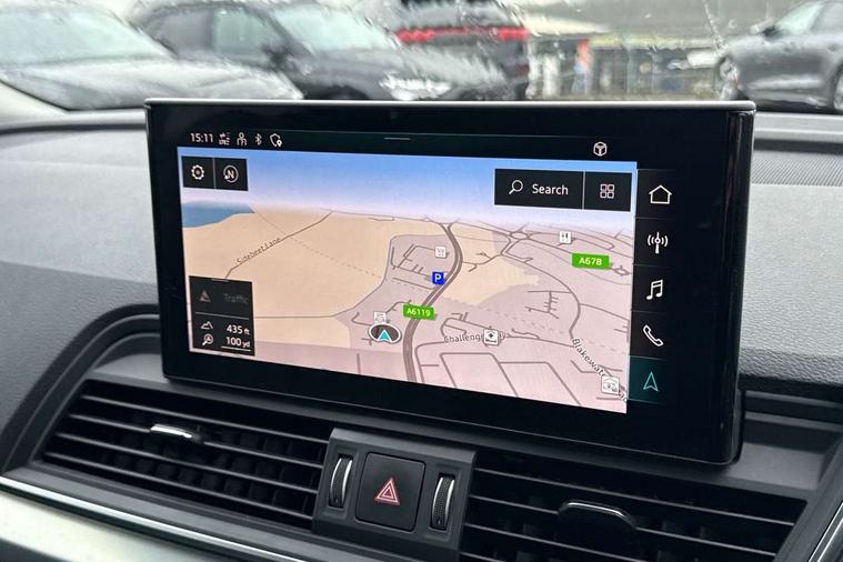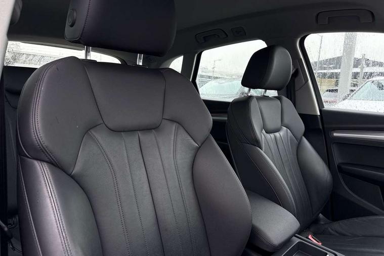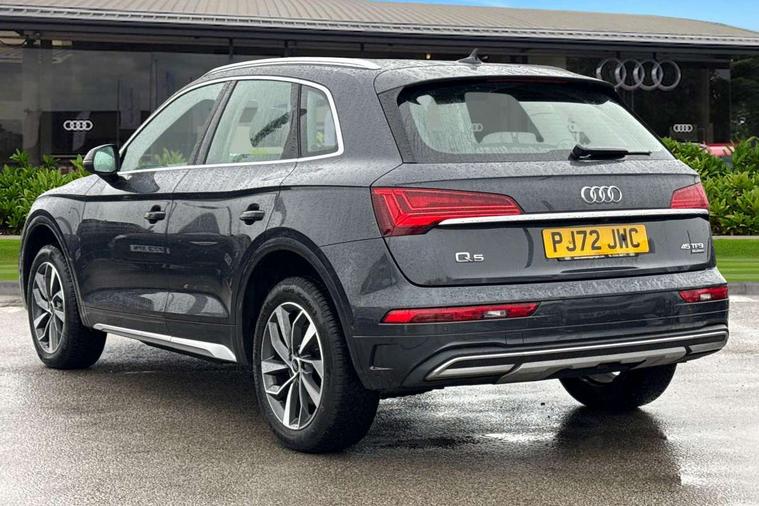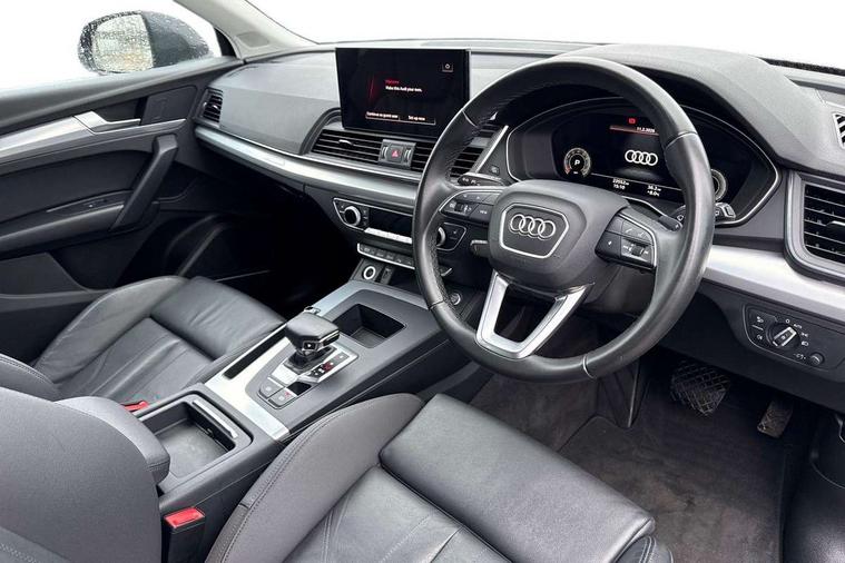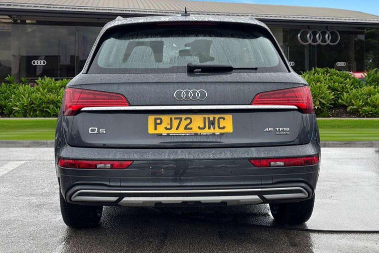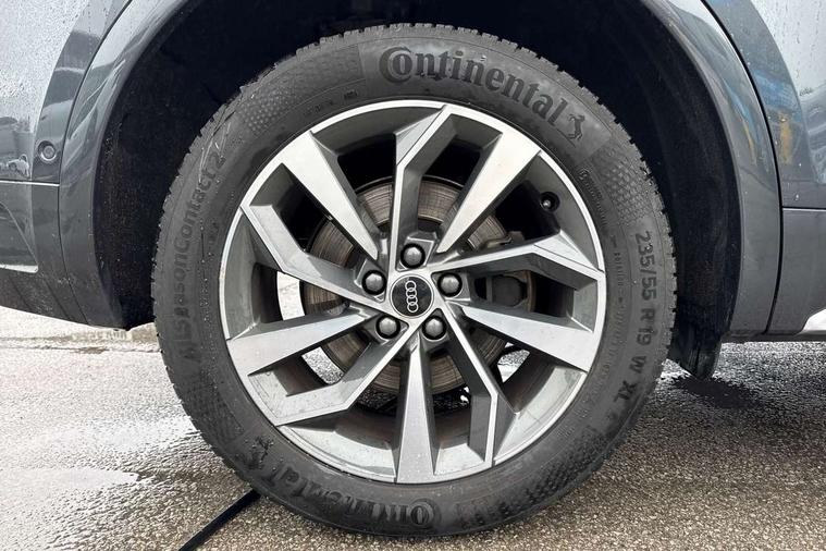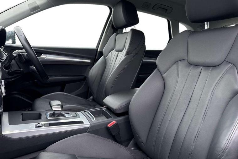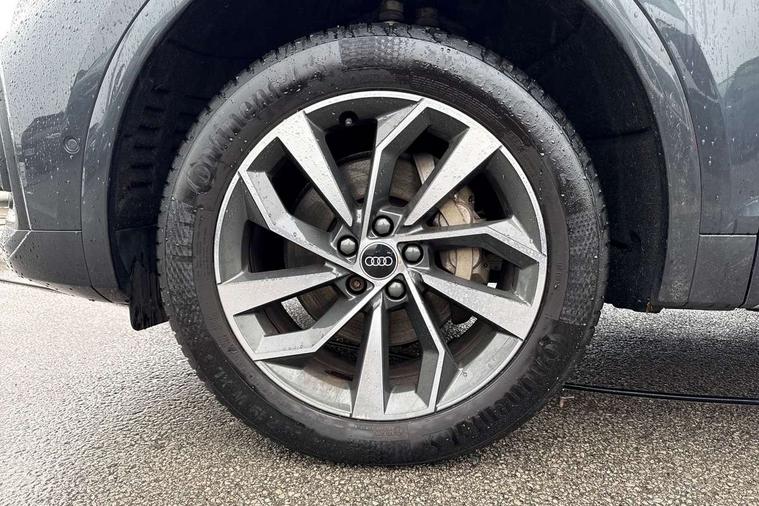 Audi connect safety and service (e-call), Audi connect with Amazon Alexa Integration, Audi drive select, Audi virtual cockpit plus with 12.3" screen and three different layout designs, Audi wireless smartphone interface, Automatic start-stop system with coasting functionality and efficiency programme, Bluetooth interface, Cruise control + speed limiter, Electro - mechanical power assisted steering, MMI navigation plus with 10.1" touch screen, Power tailgate, Reversing camera, Service interval indicator, Voice control system with Audi hotword activation "Hey Audi", Dynamic suspension, Quattro on demand, DAB Digital radio, 3rd brake light, Acoustic windscreen, Air inlets in matt titanium black with blades in matt aluminium silver, Aluminium roof rails, Auto dimming door mirrors, Auto dimming rear view mirror, Automatic headlight adjustment, Automatic headlights and windscreen wipers, Body colour bumpers, Body colour door mirrors, Chrome plated exhaust trims, Daytime running lights, Door sills in Selenite silver, Electric adjustable/heated/folding door mirrors, Front and rear electric windows, LED headlights and LED tail lights, Lower bumpers painted in contrast Manhattan grey, Matt selenite silver underbody protection, Matt twilight grey radiator grille with chrome vertical struts, Rear chrome trim strip below lights, Rear diffuser strip in selenite silver, Rear side wing doors, Rear spoiler, Rear wiper, Roof bars, 2 x USB charging port with aux input socket, 3 rear headrests, 3 spoke multifunction leather steering wheel with shift paddles, 40:20:40 split folding 3 rear bench seat in 2nd row with rear centre armrest, Comfort front centre armrest, Deluxe 3 zone electronic climate control, Door sills trims with aluminium inlays, Front/rear floor mats, Heated front seats, Height adjustable front head restraints, Height/reach adjustable steering column, ISOFIX child seat mounting and top tether, Luggage compartment cover, Manual seat adjustment with 4-way electric lumbar support, Removable luggage compartment floor, Silver cloth headlining, Single front passenger seat, Sunvisors with vanity mirrors, Twin leather upholstery + front sports seats, High gloss pack - Q5, LED interior light pack - Q5, 3 point seatbelts on all seats, 6 airbags - Driver, front passenger, curtain and side airbags, Electrically operated child locks on rear doors, Electromechanical parking brake, Electronic stabilisation control including ABS, ASR and EDL, Front passenger airbag deactivation, Hill descent control, Hill hold assist, Multi collision brake assist, Pop-up bonnet for pedestrian protection, Pre sense city, Seat belt force limiter, Seatbelt monitoring, Tyre pressure warning, Warning triangle and first aid kit, Anti theft alarm, Anti-theft wheel bolts, Keyless Go access/ignition system, Remote central locking, Aluminium rhombus inlay,