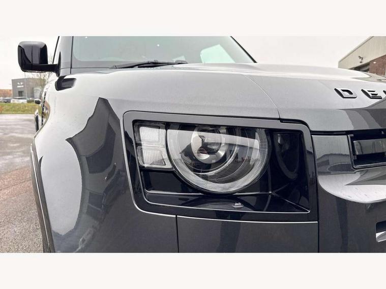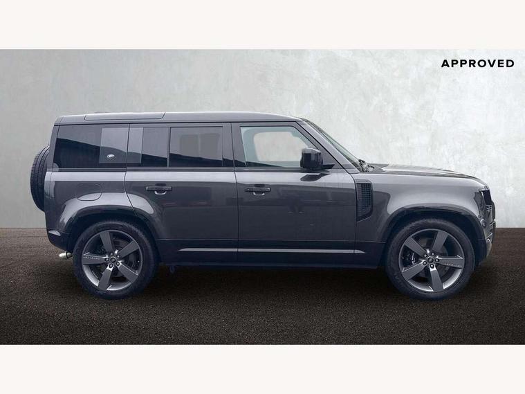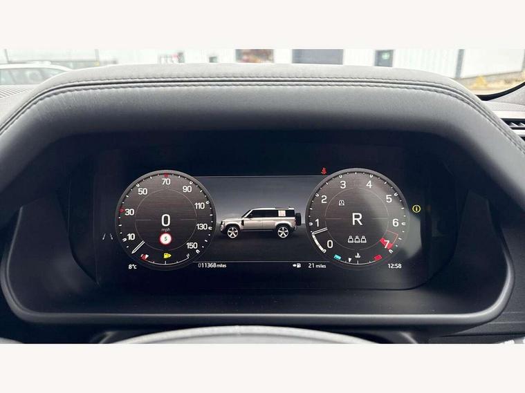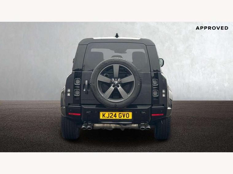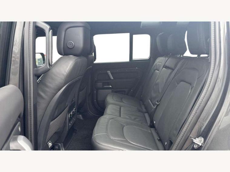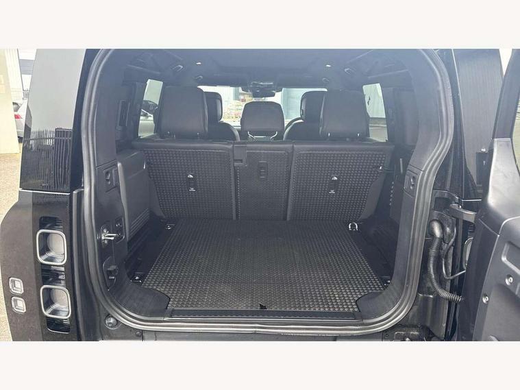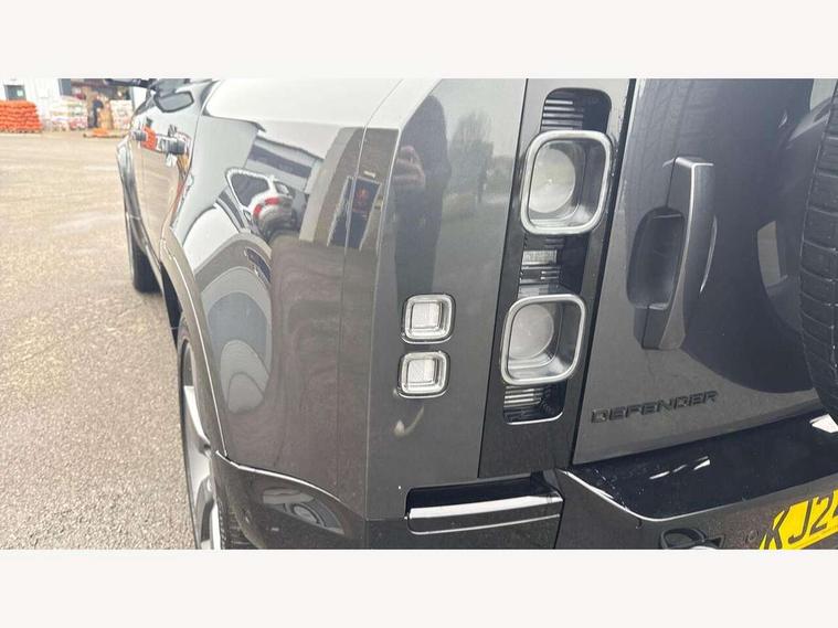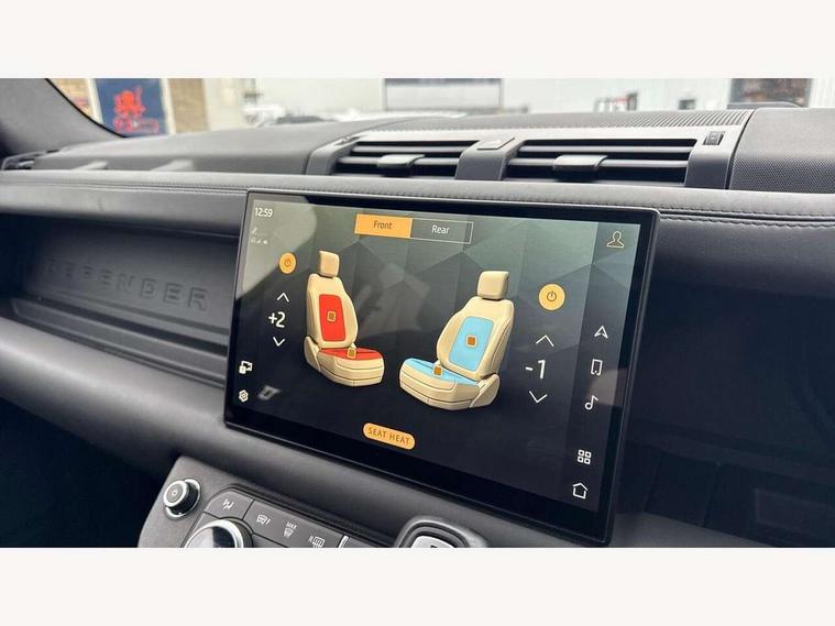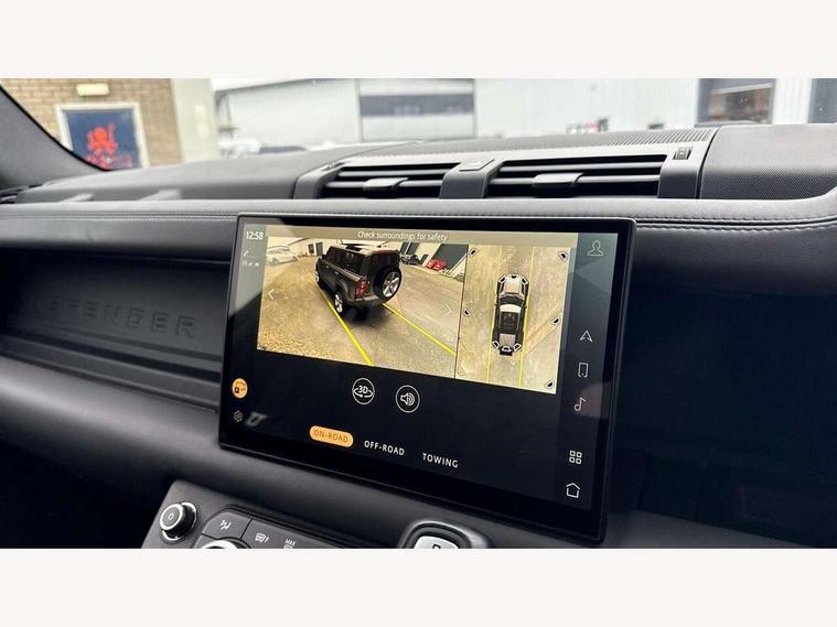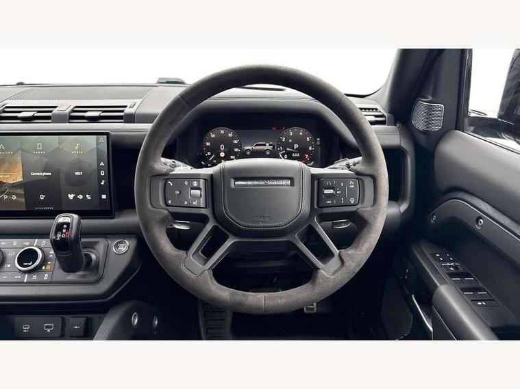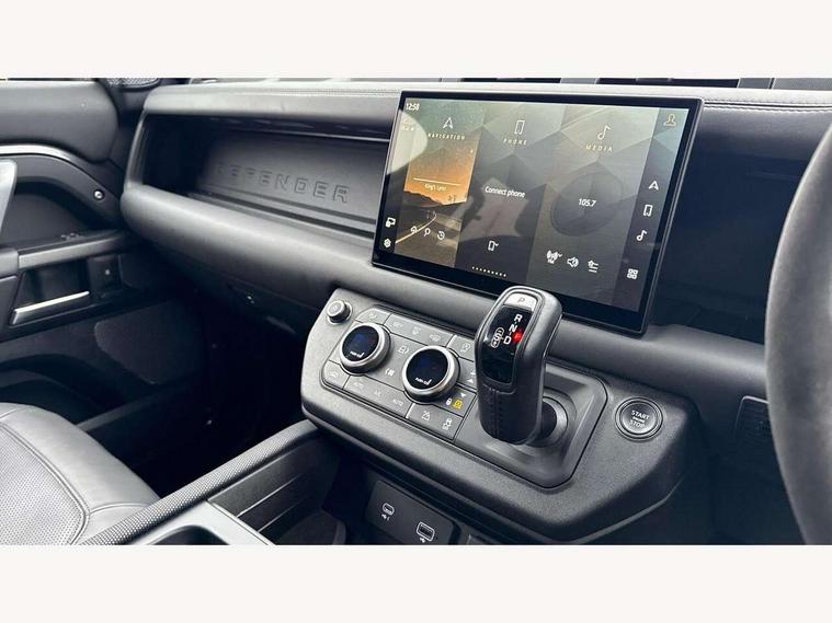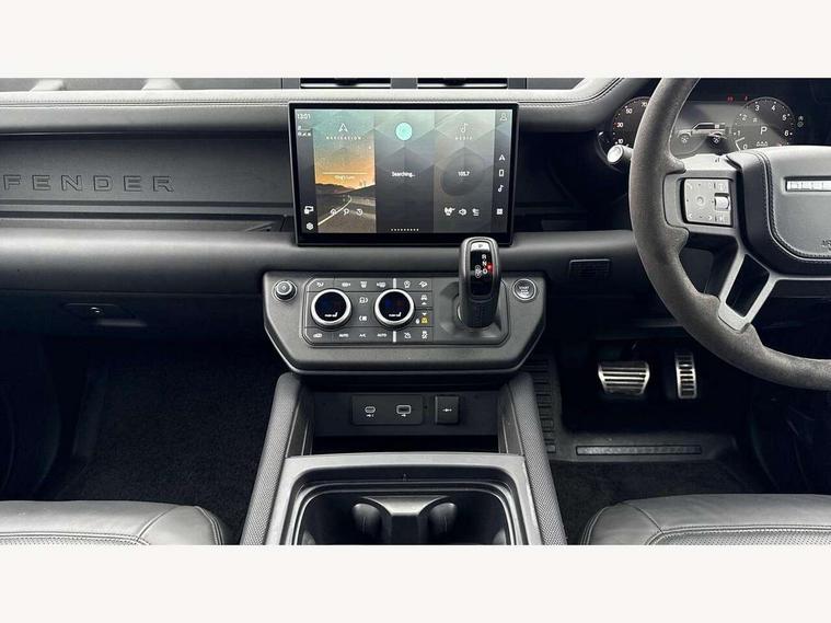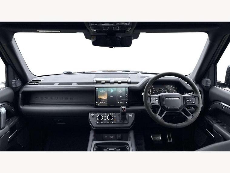 11.4" touchscreen, 360 degree parking aid, 3D Surround Camera with 360 View, 180 Rear View, Front Traffic Detection, Forward Vehicle Guidance, Tow Hitch Assist and clear sight Ground View, Adaptive cruise control, Android Auto, Apple CarPlay, Assisted tailgate with soft close, Blind spot assist, Bluetooth system, Brake pad wear indicator, Clear exit monitor, Connected navigation pro, Driver condition monitor, Electric power assisted steering (EPAS), Garage door opener (Homelink), Head up Display, Interactive driver display, Lane keep assist, Push button start, Rear collision monitor, Rear traffic monitor, Traffic sign recognition with adaptive speed limiter, Trip computer, Wade Sensing, 8 speed automatic transmission, Adaptive dynamics, All terrain progress control, All wheel drive system, Configurable Terrain Response, Electronic active differential with brake torque vectoring, Electronic air suspension, Terrain Response 2 with dynamic program, Twin speed transfer box, DAB Radio (Digital Audio Broadcasting), Pivi pro connected, Advanced tow assist, Automatic headlight levelling, Automatic headlights, Black exposed rear recovery eyes, Centre high mounted stop light, ClearSight interior rear view mirror, Darkened LED tail lights, Electric heated/power fold door mirrors with approach lights and auto dimming driver side, Electric windows with one touch open/close and anti-trap, Electrically deployable towbar, Follow me home lighting, Front fog lights, Headlamp power wash, Heated rear window with timer, Heated washer jets, Heated windscreen, Illuminated metal treadplates with V8 branding, Less roof rack or roof rails, Matrix LED headlights with signature DRL, Privacy glass, Puddle lights, Quad outboard mounted exhaust pipes, Rain sensing windscreen wipers, Rear fog lights, Rear side wing doors, Rear wiper, Side hinged tailgate, Signature graphic (with interior storage), Sliding panoramic roof, Solar attenuating windscreen, Trailer stability assist, V8 badge, 12V power socket in loadspace, 14 way heated and cooled electric adjustable memory front seats with 4 way manual headrests, 3 seat bench in 2nd row, 40:20:40 folding, heated rear seats with centre armrest, Air quality sensor, Alpine lights, Bright metal pedals, Cabin Air Purification plus, Configurable cabin lighting, Domestic plug socket, Durable rubber cabin flooring, Durable rubber loadspace flooring, Ebony morzine headlining, Electric cabin pre conditioning, Electric reach + rake adjustable steering column, Extended leather upgrade, Footwell lights, Front centre console refrigerator compartment, Front passenger isofix child seat attachment, Heated steering wheel, Leather gearshift, Loadspace cover, Loadspace Hook, Multifunction steering wheel, Overhead stowage for sunglasses, Premium cabin lighting, Rear headrests, Rear ISOFIX, Rear reading lights, Satin chrome gearshift paddles, Single front passenger seat, Standard seat configuration, Storage glovebox, Suedecloth steering wheel, Sunvisors with illuminated vanity mirrors, Three-zone Climate Control with Rear Cooling Assist, Twin front cupholders with cover, Online pack with data plan - Defender, 5 x 3 point seatbelts, ABS, Brake hold function, Cornering brake control (CBC), Cross car beam in satin black powder coat brushed finish, Customer configurable autolock, DSC - Dynamic Stability Control, EBD - Electronic brakeforce distribution, Electric parking brake (EPB), Emergency brake assist, Emergency braking, ESP + traction control, Front airbags with passenger seat occupant detector, HDC - Hill descent control, Hill launch assist, Low traction launch, Power operated child locks, Remote for (e-Call, Optimised assistance call, InControl app, Climate, beep and flash and door), RSC - Roll stability control, Seat belt reminder, TPMS (Tyre pressure monitoring system), Activity key, Alarm, Immobiliser, Intrusion sensor, Keyless entry, Locking wheel nuts, Robustec veneer,