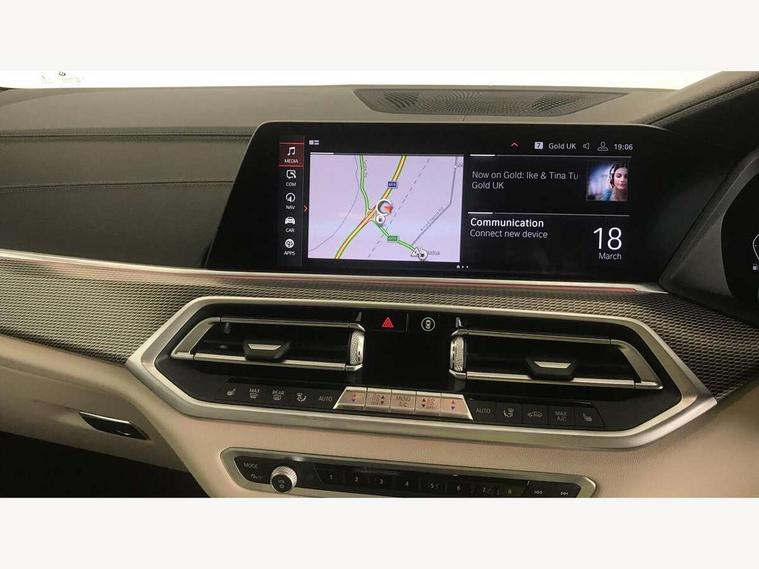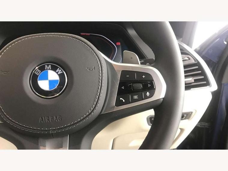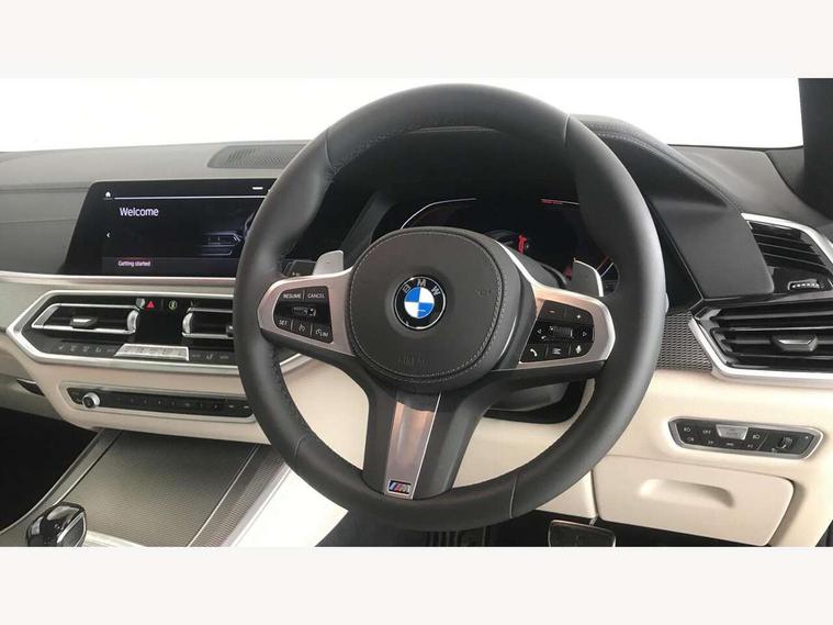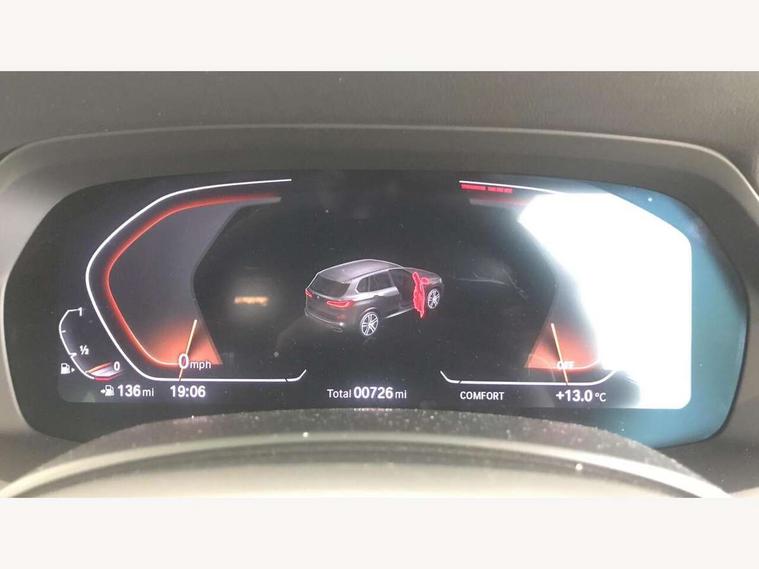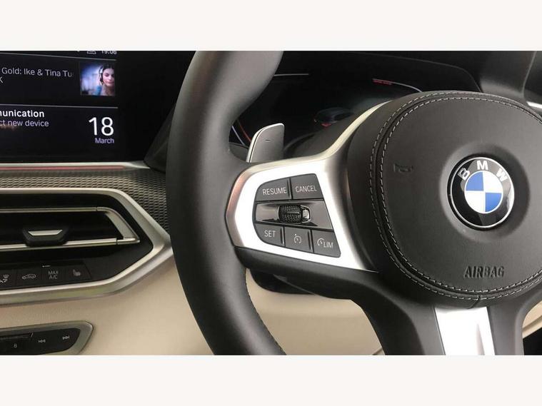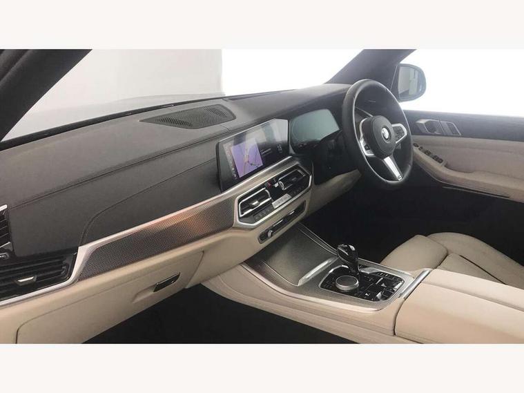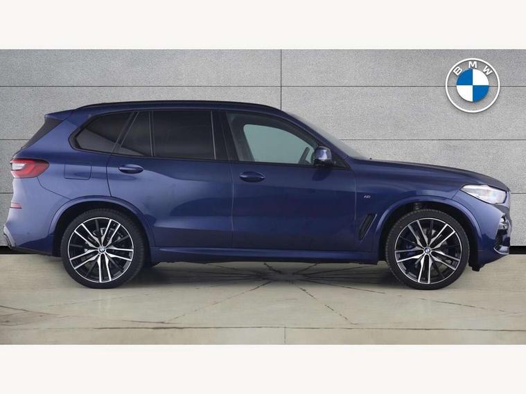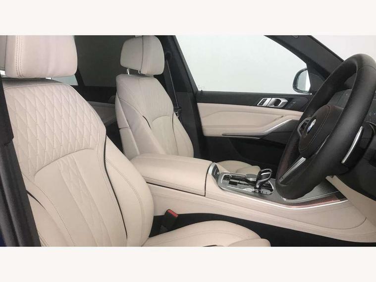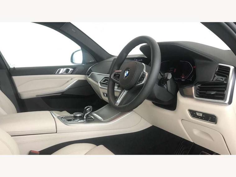 20GB hard disc drive (HDD) memory, Active guard plus, Attentiveness assist, Automatic tailgate with top hinged section open and manual bottom hinged section, BMW ConnectedDrive online services, BMW digital live cockpit professional - 12.3" digital instrument panel and 12.3" CID, with touch/voice command, BMW legal emergency call, BMW Teleservices, Brake force display, Brake pad wear indicator warning light, Enhanced bluetooth hands free facility with Telephony wireless charging, Front/rear park distance control, iDrive touch controller with shortcut buttons, Lights on warning, Oil sensor for level and grade, On board computer inc. average speed, fuel consumption, liquid crystal Info display, journey computer, outside temperature display, personal profile, Parking assistant with ultrasound based assistance system, reversing assistant, lateral parking aid and rear view camera, Service interval indicator, Speed limit info display, Wi-Fi hotspot, Adaptive 2-axle air suspension, Double VANOS, Double wishbone front axle, Drive performance control with ECO PRO comfort + sport mode, Eight speed steptronic sport automatic transmission and gearshift paddles on the steering wheel, High precision injection, Petrol Particulate Filter, Safety battery terminal clamp, Turbocharger with Valvetronic, DAB Tuner enables digital radio reception, Favourite buttons, Hi-Fi loudspeaker system, USB connection, USB type A 1.5A in cupholder, USB Type C 3A in centre armrest, Active Air Stream kidney grille with high-gloss chrome, Adaptive air flap control bar in high-gloss black, Automatically dimming rear view mirror, Body colour bumpers, Body colour door handles, Body colour mirror housing, Dynamic brake lights with LED technology, Exhaust tailpipes - single, left and right with Chrome finisher, Follow me home headlight function, Front and rear electric windows with open and close fingertip control, anti trap facility and comfort closing, Heated windscreen washer jets, High gloss black outer and central air intakes on front bumper with pearlescent chrome finish, High gloss black Side elements, LED daytime running lights, LED fog lights, LED rear lights, M aerodynamic body styling, M designation on left and right front side panels, Pearlescent chrome front grille bars, Rain sensor with automatic headlight activation and windscreen wiper control, Satin aluminium side window graphic, Third brake light in rear spoiler, Variable intermittent rear wash/wipe, Welcome light carpet, X5 on left tailgate, xDrive designation on right tailgate, 12V - Power sockets with 2x centre console and 1x luggage compartment, 40:20:40 split folding rear seats, Ambient interior lighting with 6 pre-designed selectable lights including dynamic function, Centre and rear interior light, Child seat ISOFIX attachment with rear outer seats includes top tether, Compartment in front of cupholder, Electric front seat adjustment with driver memory, Electrical steering column with adjustable height and length with activation and control on the steering column, Foldable rear centre armrest with 2 cupholders and storage compartment, Front and rear cupholders x 2, Front and rear door pockets, Front and rear door sill finishers with illuminated BMW designation, Front and rear door sill inlays with illuminated BMW M designation, Front and rear side armrest integrated into door trim, Front footwell lights, Front reading lights, Light inside glove compartment, Lockable glove compartment, Luggage compartment floor panel with integral storage tray, Luggage compartment lighting, M leather steering wheel, M specific key, M specific pedals, M specific steering wheel, M specific velour floor mats, Make-up mirror lights, Multifunction controls for leather steering wheel, Multifunctional hooks, Rear head restraints, Seat back with flap pocket, Securing rings in luggage compartment, Storage bins on all doors, Storage tray and compartment with cover in centre console, Sunvisors with illuminated vanity mirrors, Toolkit located in luggage compartment, Connected Package Professional - X5, Expanded exterior mirror pack - X5/X5 M, Non-smokers pack - X5, Airbags - driver/front passenger, rear and side, first and second row seats head airbags, front passenger seat airbag deactivation + knee airbag, Anti-lock braking system (ABS), Automatic Stability Control (ASC), Brake drying, Brake energy regeneration, Brake fade compensation, Braking pre-tensioning, Cornering brake control (CBC), Crash sensor activating central locking release, hazard warning lights, fuel cut off, interior lighting + activation of safety battery terminal clamp, Deformation zones - front and rear with door reinforcements and bumpers up to 2.5 mph, DSC - Dynamic Stability Control, Dynamic brake control, Dynamic Traction Control - DTC, Electromechanical parking brake with automatic drive away release and auto hold function, Electronic brake force distribution, Front and rear seatbelts with seatbelt stopper, seatbelt tensioner for front and outer rear seats and belt force limiter, Front head restraints with anti-whiplash, Height adjustable front seatbelts, Hill start assistant, Integrated brake system, M Sport braking system in blue high gloss + blue painted brake calipers with M designation, Mechanical child proof lock on rear doors, Passive protection for pedestrians, Seat occupancy detection for driver and passenger side, Side impact protection, Three 3 point inertia reel seatbelts, Two tone horn, Tyre pressure monitoring system, Ventilated front and rear disc brakes, Warning triangle and first aid kit, Closing system with central locking, Driver and front passenger door centre lock switch, Locking wheel bolts, Thatcham 1 alarm system with remote control and engine immobiliser, Sensatec instrument panel, Start/stop toggle diamond shaped trim finisher in pearl chrome,