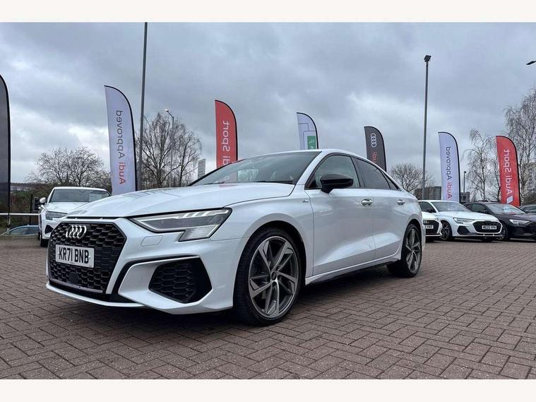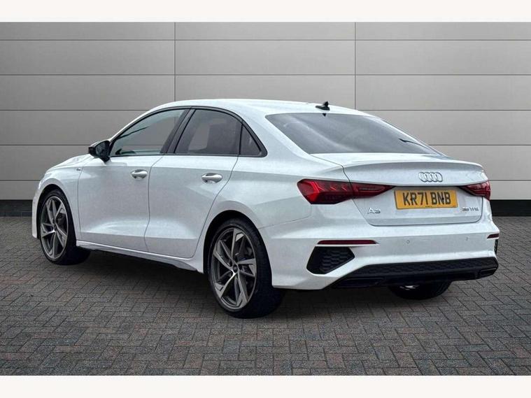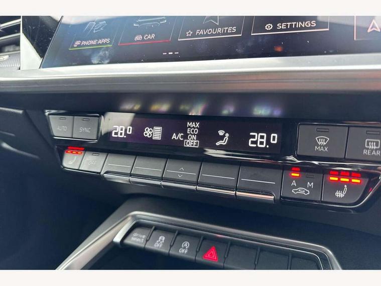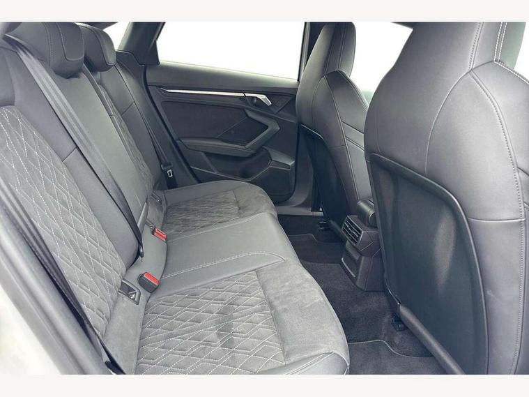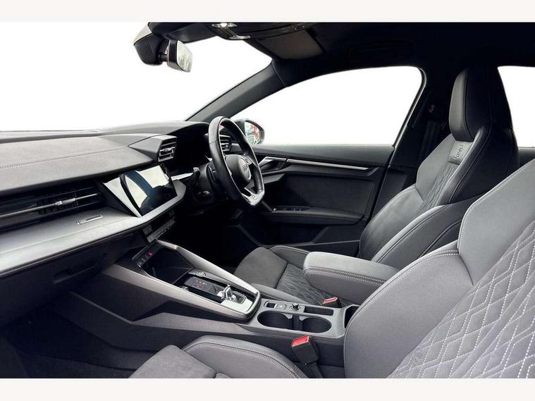 Audi connect emergency call and service, Audi drive select (Auto, Comfort, Dynamic, Efficiency and Individual), Audi smartphone interface, Audi virtual cockpit plus - 12.3" dynamic digital instrument cluster, Automatic start/stop system with recuperation, Bluetooth interface, Collision avoidance assistant, Electromechanical power speed sensitive steering, Lane departure warning system, MMI Navigation Plus with high resolution 10.1" colour touch screen display, Service indicator, Voice control system with natural language interaction, Sports suspension, 2x USB Type C ports (for charging and data transfer), 6 passive loudspeakers, CD player, DAB Digital radio, 3rd brake light, Acoustic glass windscreen, Audi matrix LED headlights, LED rear lights, dynamic front and rear indicators and headlight cleaning system, Auto dimming frameless rear view mirror, Electrically adj heated/folding + automatically dimming exterior mirrors + automatic kerb side function for passenger side exterior mirror, Front electric windows, Illuminated door sills with aluminium inserts at the front with S logo, Integrated LED indicators in door mirrors, LED daytime running lights, Light and rain sensors, Model and engine designation badges at rear, Privacy glass - dark tinted rear window, rear door and side windows, Rear electric windows, S roof spoiler, 12V socket and storage compartment in front centre console, 4 way electrically adjustable lumbar support for driver and front passenger, 40/20/40 split folding rear seat bench with cupholder, Black cloth headlining, Dual zone electronic climate control, Electrically adjustable front seats, Front and rear centre armrest in leather, Front and rear headrests, Front/rear floor mats, Heated front seats, Height and reach adjustable steering wheel, Interior lighting - glove compartment light and right hand side, Luggage compartment floor covering, Seat side bolsters, Stainless steel pedals and front footrest in black, Aluminium interior elements pack - A3, Black styling pack - A3/S3, Dinamica microfibre/mono.pur 550 artificial leather pack - A3 Saloon, Extended ambient lighting pack - A3/S3 Saloon, LED interior lighting pack - A3 Saloon Edition 1/Vorsprung, 3x3 point rear seat belts, Driver and front passenger airbag with passenger airbag deactivation, Electronic Stabilisation Control (ESC) including ABS, ASR and EDL, First aid kit with warning triangle and 2 safety vests, Front side airbags with head airbags and interaction airbag, Hill hold assist, Pre-sense front with pedestrian and cyclist detection, Seatbelt monitoring, Tyre pressure loss indicator, Anti theft alarm, Anti-theft wheel bolts, Electronically operated child lock, Immobiliser, Remote control central locking, Aluminium air vent surrounds, Aluminium trim elements, Dark spectrum aluminium inlays, accent surfaces in the dashboard and centre console in platinum grey silk effect paint finish, 19" 5 arm trapezoid design alloy wheels in titanium matt grey with diamond cut finish,