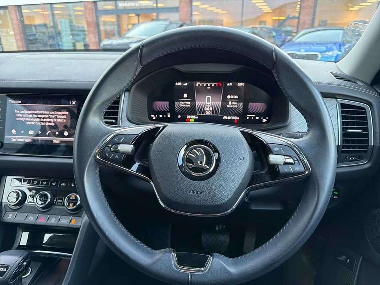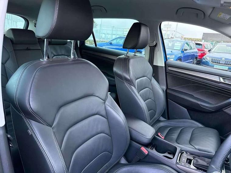 Bluetooth system, Digital voice enhancement, e call+, ECO Stop/start function, Exterior temperature indicator, Rear view camera, Smartlink wireless for apple carplay and wired for android auto, Speed limiter, Tailgate unlocking from outside, USB C Port x 2 in front centre console, Virtual Cockpit - 10.25" digital display, Wireless charging, 8 Speakers, DAB Digital radio, Aero front windscreen wipers with intermittent function, Aero rear window wiper, Auto dimming rear view mirror, Black wheel arch surrounds, Body colour bumpers, Body colour door mirrors and handles, Chrome front grille, Chrome roof rails with chrome window surround, Daytime running lights, Electric adjustable/heated/folding door mirrors, driver side auto dimming with boarding sports and memory function, Electric front and rear windows, Extended rear spoiler with finlets in gloss black, Front fog lights, Full LED matrix headlights with AFS (adaptive front light system), cornering function and AWL (all weather lighting system), Headlight washers, Heated rear window, Invisible tailpipe, LED rear fog light, LED third brake light in rear spoiler, Light assistant (coming/leaving home/tunnel light), Off-road style lower front bumper element, Privacy glass, Rain and light sensors, Rear LED lights (high functionality) with welcome effect and dynamic indicators, Rear side wing doors, Safety reflectors on front and rear doors, Window control switches with black trim, 12V socket in boot, 2 rails with 2 hooks, 2 seat bench in 3rd row, 3 seat bench in 2nd row, 4 foldable roof handles with rear coat hooks, 60:40 foldable rear seat with sliding adjustment and backrest angle adjustment, Bottle holders in door panel in the 1.5 litre front and 1 litre rear, Cargo storage compartments, Chrome headlight control button, Chrome interior door handles, Coat hooks on B pillar, Covered storage compartment on driver side, Decorative door sill covers, Front centre armrest with storage compartment, cup holder and 12V socket, Front courtesy lights, Gear shift lever with chrome frame and black gloss insert, Grey stitching in front and rear armrests and door armrests + door inserts, Height adjustable front headrests, Illuminated and cooled glovebox, Illuminated luggage compartment, Isofix child seat fittings in outer rear seats with top tether, Manually adjustable steering column, Net programme in boot (1x horizontal Net, 2x vertical Nets), Overhead glasses storage compartment, Pollen filter, Rear centre armrest with cupholders, Single front passenger seat, Sliding trunk cover, Small Bags on the inner sides of the front backrests, Sunvisors with illuminated vanity mirrors, Three rear height adjustable headrests, Ticket holder on A Pillar, Umbrella in door panel, Variable boot floor, Auto door release and activation of warning lights in the event of an accident, Child locks on rear doors, Driver and front passenger airbag with knee airbag and front passenger airbag deactivation, Electronic parking brake with hill start assist, Emergency rear braking signal, ESC (incl. ABS+MSR+ASR+EDS+HBA+DSR+RBS+MKB), Front assist with autonomous emergency braking, Front side airbags with curtain airbags, Fuel cut off safety device, Height adjustable front 3 point seatbelts + pretensioners, Hill hold control, Rear disc brakes, Safety vest holder in door, Seat belt reminder for all seats, Three point rear seat belts, Two tone horn, Tyre pressure monitor, Alarm with interior monitoring and tilt sensor with safe function, Anti-theft wheel bolts, Immobiliser, Keyless entry and start system (KESSY), Remote central locking with 2 keys, Grey stitching in dashboard, Linear diamonds decorative inserts, Temporary spare wheel (space saver),