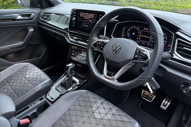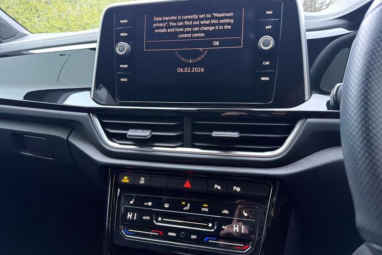 10.25" Digital cockpit pro, Bluetooth mobile phone interface, Driver alert system with fatigue detection, Driver tips and journey analysis, Emergency call service, Lane keeping system Lane Assist, Modified key software - reduce switch off time for key status change to Long no motion, Online services, Park assist including front and rear parking sensors, Service interval indicator, Tailgate/trunk lid release from outside, Think blue trainer driver tips and journey analysis, Warning sound and light for front seatbelts unfastened, Wireless app connect, Battery regeneration during braking, Start/stop function with battery regeneration, Diversity antenna for FM reception, Front and rear 6 speakers, Music playback - MP3, WMA and AAC files, Premium USB cable in choice of either Apple or Android smartphone compatibility, SD card slot, Simultaneous pairing of 2 compatible mobile devices, Title and cover art display, We Connect and We Connect Plus functionality, 3rd brake light, Auto dimming interior rear view mirror, Automatic hazard lights activation under emergency braking, Automatic headlight control with LED separate daytime running lights with coming/leaving home function, Extended roof spoiler, Exterior mirrors aspherical on driver side, convex on front passenger side, External USB type C socket and charging sockets, Front windscreen wiper with intermittent wipe and 4 position delay, Heated rear window, LED Plus headlamps, LED rear combination lamps, LED rear number plate lights, LED tail lamp rear comination lamps, Power windows with comfort operation and circuit breaker, R-Line design body coloured bumpers, Rain sensor, Rear exhaust tailpipe, Rear fog light on one side and reversing lights on both sides, Rear side wing doors, Rear wash/wipe with intermittent wipe setting, Remote electrically foldable door mirrors, puddle lights and reverse activated passenger's door mirror, 12V power socket in centre console, 3 rear head restraints, 3 seat bench in 2nd row, 4 load lashing points in luggage compartment, Air care climatronic air conditoning system with active combination filter and 2-zone temperature control, Black roof lining, Chrome plated radiator grille inserts, air vent surrounds and light switch surrounds, Door and side trim panel with leatherette insert, Drawer under drivers seat, Front + rear carpet mats, Front centre armrest, Front cupholders x 2, Front footwell illumination, Front reading light, Front scuff plates with R logo, Instrument lighting, white adjustable panel illumination, Interior ambient lighting and surround lighting, Interior light delay, Isofix child seat preparation, Leather gearshift handle, Load-through provision with cup holder when folded down ('Unsplit rear seat bench, split folding backrest, with centre armrest), Luggage compartment lighting, Single front passenger seat, Stainless steel pedals, Storage compartment in left and right luggage area, Storage compartment in rear doors, Storage compartments in driver and front passenger doors, Sunvisors with illuminated vanity mirrors, Variable boot floor, height adjustable and removable, Driver assistance pack without proactive passenger protection - T-Roc, 3 point height adj front seatbelts + pretensioners, 3 point seatbelts in outer rear with ECE label, ABS, Child locks on rear doors, Driver and front passenger airbag with front passenger airbag deactivation, Driver and front passenger safety-optimised head restraints, Drivers seatbelt reminder, Electronic parking brake, Electronic Stability Control (ESC) inc EDL (Electronic Differential Lock) and ASR (Traction Control), Front and rear passengers curtain airbag system including front side airbags, Front assist with city emergency braking and pedestrian monitoring, Front seat side impact airbags, Hill start assist, Predictive pedestrian protection, Rear disc brakes, Single tone horn, Tyre pressure loss indicator, Volkswagen roadside assistance, Alarm with interior protection, Anti-theft alarm system with interior monitoring, backup horn, and towing protection, Remote central locking with SAFELOCK, radio remote control with 2 remote control folding keys, Trims for alloy wheels,