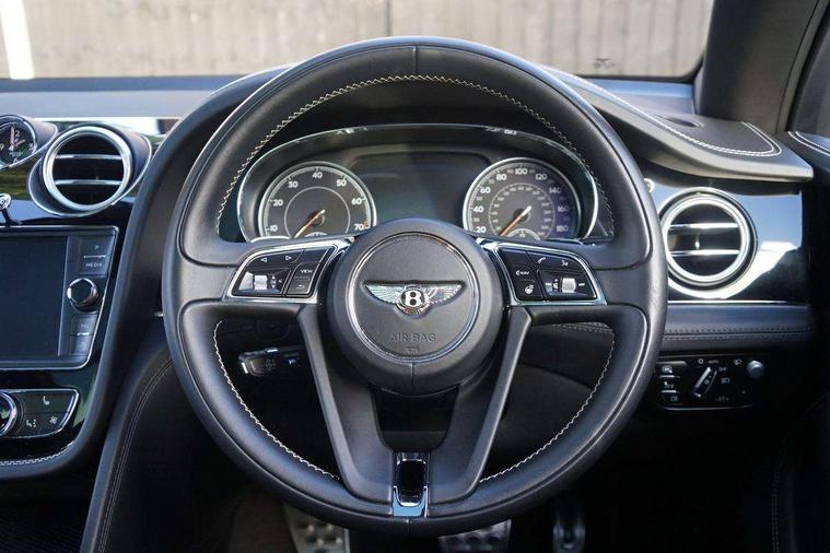 8" touch screen, Apple CarPlay preparation, Blind spot assist, Bluetooth wireless phone connectivity, Front cordless privacy handset for telephone, Front/rear park distance control, Power boot opening and closing, Power latching to all doors for easy entry, Reversing camera, Voice control system, Multi-link rear suspension, 60gb HDD with DVD/CD/2SD cards & WiFi, Bluetooth audio streaming, Satellite Radio, Auto dimming rear view mirror, Automatic headlights with dusk sensor, Elec/heat/adj/fold door mirror+memory, Electric tilt/slide panoramic sunroof, High beam assist, Oval exhaust pipe, Rear foglights, Rear LED tail-lighting/ high level stop lamp, Roof rails, Tunnel detection for auto light control, 12V power in rear centre console, 12V socket in glovebox, 12V socket in luggage compartment, 16 way electric heated front seats with memory, Bentley hide upholstery, Elec adj steering column + memory, Electric heated rear bench seat, Footwell illumination, Isofix attachments on outer rear seats, Lockable cooled glovebox, Multi-zone automatic climate control - two zone, Seatbelts in upholstery colour, Steering column mounted gear shift paddles, Twin front armrests, ABS/EBD, Branded front and rear black brake calipers, Door exit warning collision prevention, Electronic park brake with move-off assist, Electronic stability control, Electronic tyre pressure monitoring, Emergency brake force distribution, ESP + MSR + ASR, Front and rear head airbags, Front and rear thorax airbag system, Front passenger airbag deactivation, Front seatbelt pretensioners with force limiters, Hill hold control, Hydraulic Brake Assist (HBA), Rear outer seatbelt pretensioners with force limiters, Side airbags, Traction control, Immobiliser, Keyless entry, Keyless ignition, Preparation for vehicle tracking, Remote central locking, Volumetric anti theft alarm, Chrome instrument bezels,