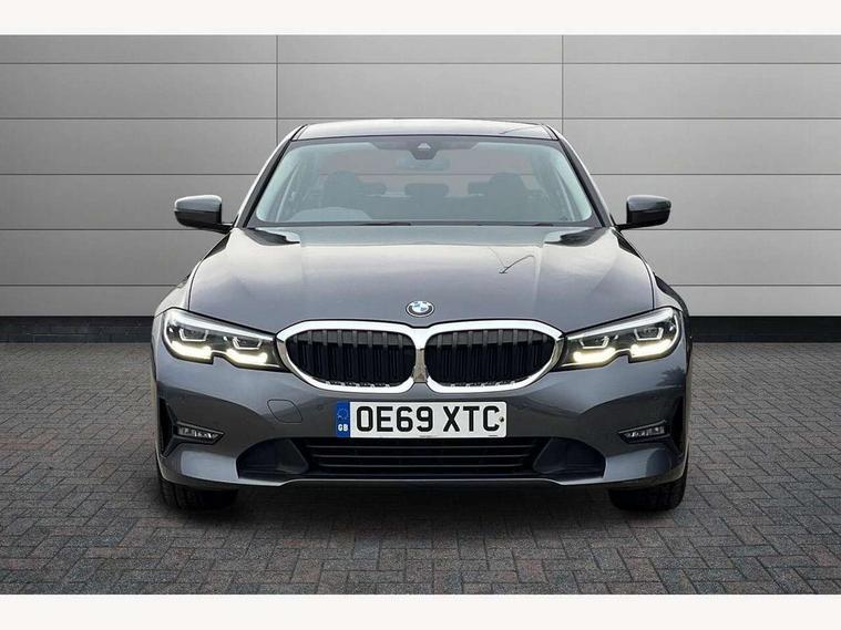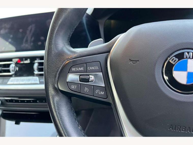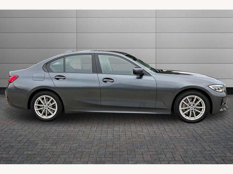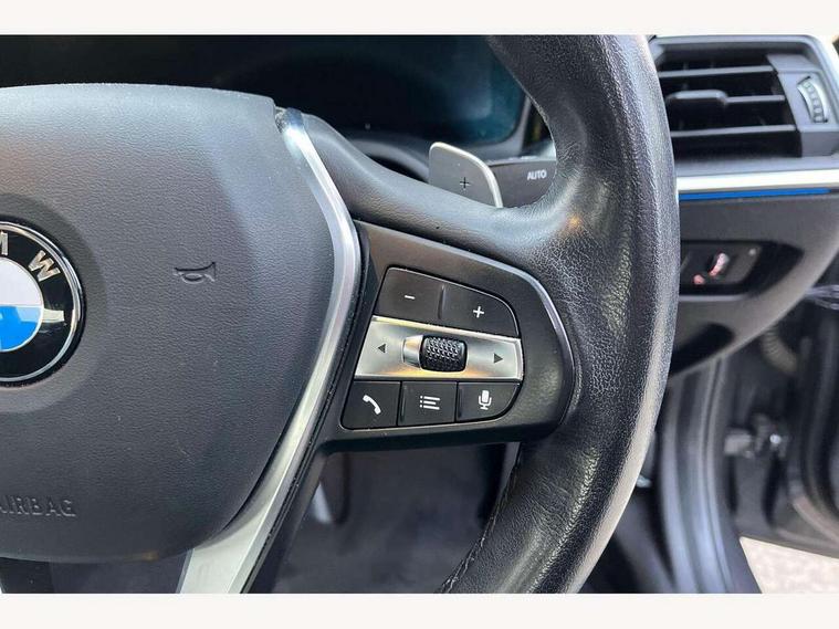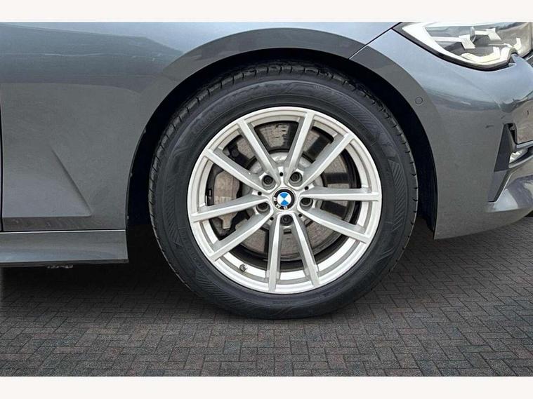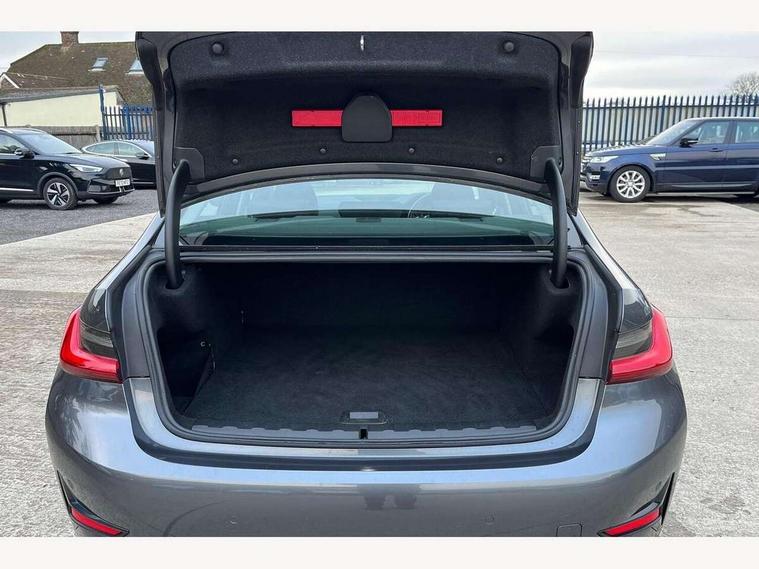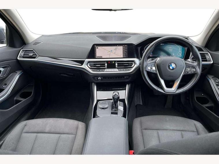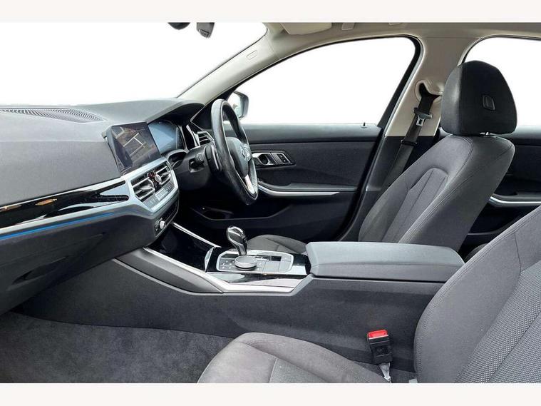 Active guard plus, Attentiveness assist, Auto start-stop, BMW ConnectedDrive online services, BMW iDrive controller on centre console, BMW Live Cockpit Professional sat nav system including 10.25" high resolution display and Intelligent Voice Assistant, BMW service history, BMW Teleservices, Brake pad wear indicator in front and rear, Check Control warning system for monitoring of lights and door/luggage compartment open warning, Condition based service, Cruise control with brake function + speed limiter, Electric power steering, Electric power steering with Servotronic steering optimised at all speed ranges, Instrument cluster with speedometer with mph readout, tachometer, fuel gauge and oil temperature gauge, Integrated owners handbook, Oil sensor for level and grade, warning by check control system, On board computer - average speed+fuel consumption, service interval, clock/date, odometer/trip meter, outside temperature display and ice warning, Optimum shift indicator, Personal Profile - automatic lock when driving away selectable, Balanced 50/50 weight distribution, Battery cut-out switch, Drive performance control - ECO PRO, comfort and sport modes, Electronic differential lock control (EDLC), Sport automatic transmission with steering-wheel mounted gearshift paddles and launch control, Stroke dependent dampers, DAB tuner, Electronic service booklet, Acoustic glazing, Active airstream chrome frame kidney grille with 8 high gloss black vertical slats, Automatic headlight beam throw control with load dependent regulating reaction, dynamic compensation of braking dive and acceleration squat, Black roof mouldings, Body colour - fuel filler flap, front and rear bumpers, door handles and mirror caps with integrated turn indicator + bottom segment in matt black, Dynamic brake lights, Electric windows - front and rear, with open/close fingertip control, anti-trap facility and comfort closing, Exhaust tailpipe - split left and right, Extended LED headlights, Exterior mirrors - electrically folding with anti-dazzle, Fading support, Front and rear bumper system with replaceable deformation elements, Front black door sill finishers with BMW designation, Green tinted heat protection glazing, Interior rear view electrochromatic mirror with automatic anti dazzle function, LED front fog lights, Lightweight engineering, Matt black exterior B pillar, Matt black exterior trim, Model designation on right side of tailgate, Rain sensor with automatic headlight activation, Rear wiper, Shark fin antenna, Two part LED tailights in L-shape with components in smoked glass, brake light, LED turn indicator and rear fog light, Visible VIN plate, Welcome lights in interior and door handle area, Windscreen wipers with integrated washing jets, 12V power socket in front storage compartment, 2 front cupholder in centre console with clamping elements and matt black inlay, 3 rear seats with non folding headrests with 3 point seat belts, 3 zone automatic air conditioning, 4 pieces lashing eyelets in luggage compartment, Ambient lighting with welcome carpet light, Armrest integrated in front and rear door trim + front centre console armrest, Centred top Luggage compartment lights, Four grab handles integrated in roof lining, Front and rear door exit lighting (left / right), Front and rear door pockets, Front and rear reading lights, Front and rear velour floor mats, Front head restraints, Height adjustable mechanically and infinitely variable steering column, Illuminated armrest storage compartment, Illuminated glove compartment with separate small compartment, Interior lighting - front centre over interior mirror with soft light, rear centre and front and rear footwell lighting, Make-up mirror lights, Rear centre armrest with 2 cupholders, Rear centre console with storage compartment and ventilation grille, Sunvisors with vanity mirrors and ticket pocket, Three spoke multifunction sport leather steering wheel, Toolkit located in luggage compartment, Connected pack professional - 3 Series Saloon/Touring, Parking assistant pack - 3 Series, 2 tone horn, BMW emergency call, Brake energy regeneration, Braking pre-tensioning, Child proof locking system in rear door, Child seat ISOFIX attachment rear outer seats, Coasting in idle in ECO PRO mode, Crash sensor activating of airbags, Unlocking doors, hazard warning lights, interior light, safety battery terminal, Driver and front passenger side airbags, integrated in the door side seat backrest bolsters for all seat variants, Driver/Front Passenger airbags, Dry braking, Dynamic brake control, Dynamic stability control + (DSC+) - Anti-lock Braking System (ABS) with brake assist and cornering brake control + Automatic Stability Control (ASC), Dynamic Traction Control - DTC, Electric parking brake including automatic hold function and automatic release of the parking brake when driving off, Front passenger manual airbag deactivation, Head airbags for all 4 outer seats, Hill start assist, Seat belt security check for driver and front passenger, Side impact protection, Three 3 point seat belts on all seats including front belt stopper, pyrotechnic belt tensioners and belt force limiters, Tyre pressure monitoring with three level warning strategy, Ventilated front and rear disc brakes, Warning triangle and first aid kit, Alarm system (Thatcham 1) with remote control and electronic engine immobiliser, Central locking switch for all doors, fuel filler cap and luggage compartment, Remote control with integrated key one button open/close vehicle and windows, sole opening of the luggage compartment lid and panic mode, Start/stop button with Comfort Go keyless engine start and auto Start/stop deactivation button, Reduced rolling resistance tyres,