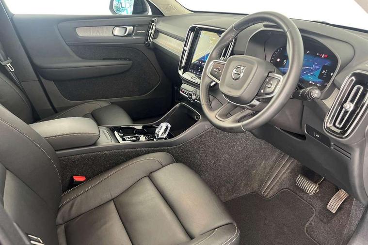 12.3" Progressive Driver Display, 360 degree surround view parking camera with side proximity sensors, 9" centre console portrait touch screen, Adjustable steering wheel force, Android auto (Wired), Apple carplay (wired), Bluetooth handsfree system, Driver alert control, Driver assistance (pilot assist and adaptive cruise control), Driver awareness - Blind spot information system with steer assist, cross traffic alert with autobrake and rear collision warning and mitigation, E-call, Front park assist, Google automotive services - Enabled entertainment apps, navigation with google maps, voice recognition with google assistant, Hands free power tailgate, Intelligent speed assistance, Lane keeping aid, Oncoming Lane Mitigation, Rear park assist, Speed sensitive steering, Volvo cars services with app - Driving journal, emergency and breakdown call, engine remote start, remote door locking/unlocking and vehicle dashboard, Wireless/Inductive Mobile Phone Charging, Automatic transmission with start/stop and manual change functions, Dynamic chassis, DAB Digital radio, Premium Sound by Harman Kardon, Dolby Pro Logic II Surround Sound, Dirac Unison, 12 speakers/600W and subwoofer, Steering wheel mounted remote controls, Active bending pixel LED headlights with adaptive shadow technology, Active high beam incorporating daytime running lights, Adaptive brake lights with high level LED brake lights, Auto dimming feature for exterior door mirrors, Auto dimming interior mirror, Automatic headlamp levelling, Dark tinted windows - rear side windows and rear screen, Front aluminium tread plates, Front and rear electric windows, Headlight cleaning system, High gloss black front and rear skid plate, High gloss black front bumper deco, High gloss black mesh front grille with high gloss black surround, High gloss black window trim, Home safe and approach lighting, Integrated roof rails in high gloss black, LED front fog lights with cornering function, Power glass tilt and slide panoramic sunroof with sun curtain, Puddle lights, Rain sensor with automatic windscreen wiper activation, Rear side wing doors, Rear wiper, Roof antenna, Roof spoiler, Visible VIN plate, 12V socket in front tunnel console and luggage compartment, 2-Zone electronic climate control with CleanZone air quality system and pollen filter, 3 seat bench in 2nd row, 3 Spoke tailored steering wheel with chrome trim, 60/40 versatile split folding rear seat, Centre console cupholders and storage, Flexible load floor and grocery bag holder, Floor mats, Front cabin courtesy lights, Front door pocket, front cupholder, ambient front door, rear reading, rear courtesy, instrument panel and tailgate lighting, Front footwell illumination, Front headrests, Front reading lights, Front seat cushion extensions, Front side step illumination (under door), Glovebox bag hook, Heated front seats, Height/reach adjustable steering column, High gloss centre tunnel deco, Illuminated glovebox, Illuminated luggage compartment, Illuminated vanity mirrors + ticket holder, Integrated waste bin, Isofix attachments on outer rear seats, Load cover, Load protection net, Multi directional lumbar support for driver and passenger seat, Power driver seat with memory + exterior mirrors memory, Power folding rear headrests, Power passenger seat, Rear armrest with cupholders, Single front passenger seat, Underfloor cargo storage, Climate pack without heated front seats - XC40, 3x3 point rear seatbelts, City safety with steering support with Pedestrian + cyclist + front collision warning with full auto brake and rear auto brake, Driver and passenger airbags, Drivers knee airbag, Electronic parking brake with auto hold, First aid kit, Front and outer rear seatbelt reminder and pretensioners, Front seats SIPS airbags, Hill descent control, Hill start assist, Inflatable curtain, Passenger airbag cut-off device, Power child locks on rear doors, Road sign information display, Run off Road Protection, SIPS (Side Impact Protection System), Slippery road and hazard light alert, Stability and Traction Control with Spin control, Engine Drag Control and Corner Traction Control, Tyre pressure monitoring system, Vehicle deceleration control with Anti-lock Brake System, Electronic Brake Distribution and Emergency Brake Assist, Warning triangle, WHIPS whiplash protection system - front, 2 x Key integrated remote control central locking including with deadlocking system and auto open/close windows and sunroof, Anti-theft alarm including immobiliser/volume sensor + level sensor, Keyless drive includes keyless entry and keyless start, Locking wheel nuts,