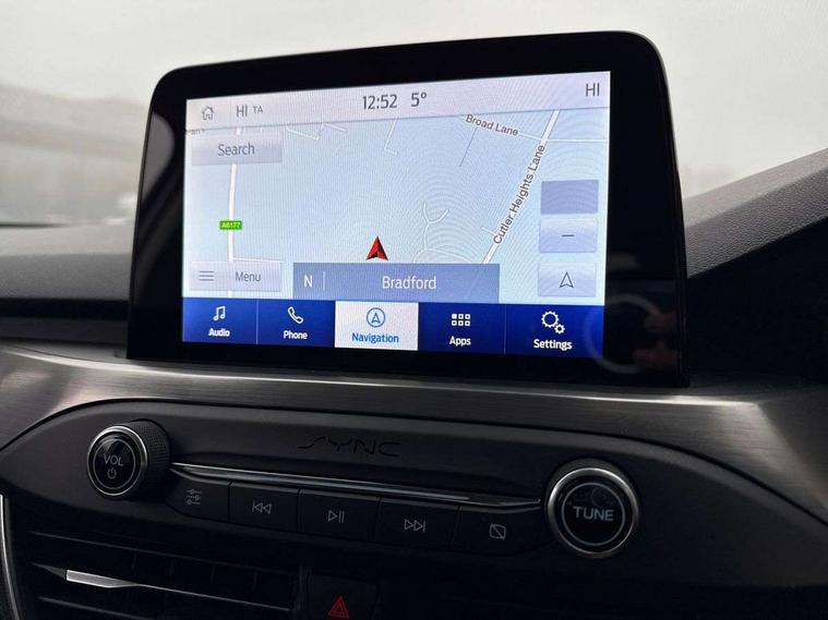 4" TFT coloured cluster screen, Digital clock, Easy fuel capless refuelling system, Eco mode, Ford pass connect, Ford SYNC 3 nav system with DAB radio, 8" colour touch screen, voice control, app link, Apple car play/Android auto and 4.2" TFT coloured cluster, Front and rear parking sensors, PAS, Rotary gear shift dial, Selectable drive mode, Trip computer, 2 USB ports, Aux input, 'Quickclear' heated windscreen/heated washer jets, Auto dimming rear view mirror, Auto headlamps (on/off), Automatic rain sensing wipers, Body colour large rear spoiler, Body coloured bumpers, Body coloured door handles, Body coloured electrically operated and heated door mirrors with side indicators, Electrically operated front and rear windows with one touch opening and closing, Front fog lamps with cornering function, Front variable intermittent wipers with electric wash, Heated rear window, LED daytime running lamp, LED rear lamps, Power folding door mirrors with puddle lights, Tailgate wash/wipe, Upper grille with chrome surround and horizontal bars, 3 spoke leather trimmed steering wheel with integrated audio controls, 60/40 split back and cushion rear seats with 2 height adjustable headrests, Ambient lighting, Centre console with sliding front armrest, Cloth upholstery, Driver's lumbar support, Dual zone electronic air temperature control, Front/rear floor mats, Heated front seats, Height adjustable front headrests, Isofix child seat preparation, Manual passenger seat height and lumbar adjust, Paddle shift controls, Reach + rake adjustable steering column, Rear centre headrest, ABS+Electronic Brake force Distribution, Auto hold function, Driver airbag, Electronic parking brake, Electronic stability control, Front and rear seatbelt reminder, Front inertia reel height adjustable seatbelts with pre-tensioners, Front passenger airbag, Front side airbags, Hill start assist, Passenger airbag deactivate switch, Post collision braking, Pre collision assist with autonomous emergency braking and pedestrian/cyclist detection, Side curtain airbags, Three rear inertia reel lap/diagonal seatbelts, Tyre pressure monitoring system, Ford keyfree system with Keyless entry and keyless start, Keyless entry, MyKey system, Remote central locking & engine immobiliser, Thatcham category 1 alarm, 16" 15 spoke sparkle silver alloy wheels, Mini steel spare wheel,