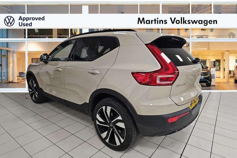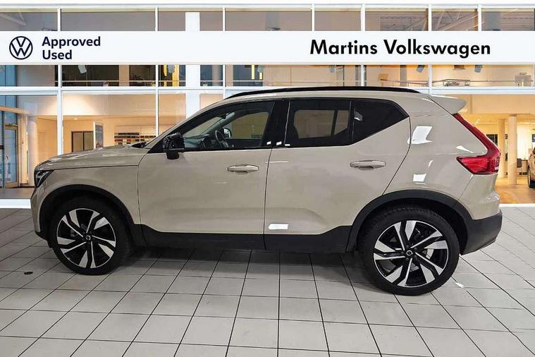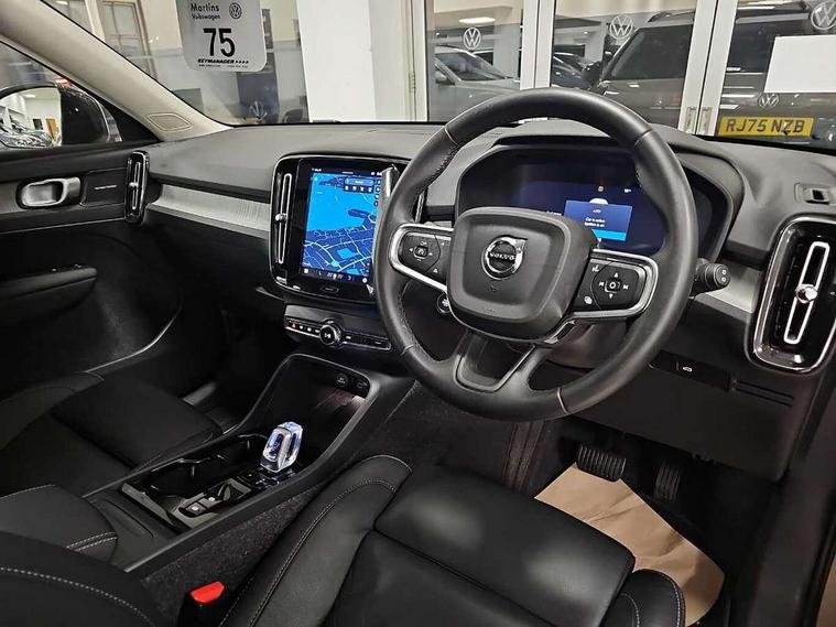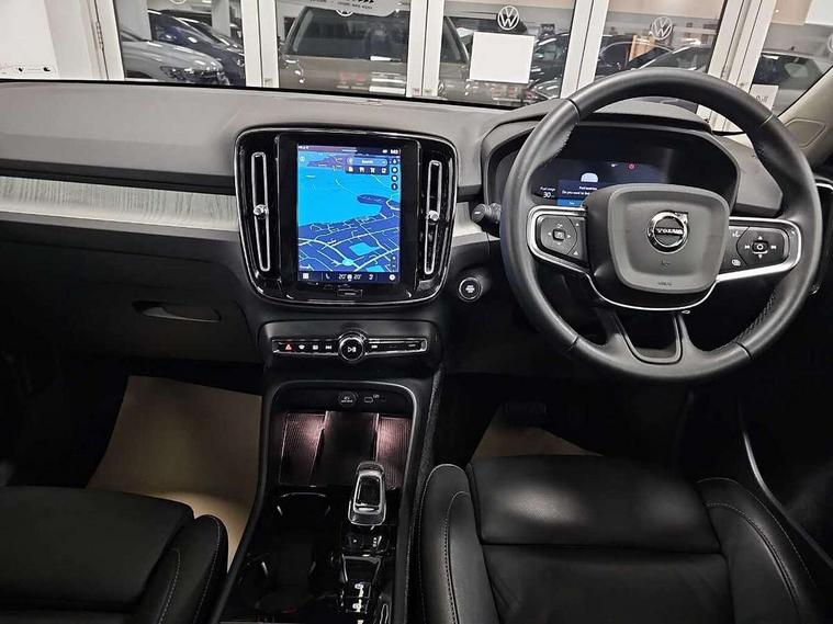 12.3" Progressive Driver Display, 360 degree surround view parking camera with side proximity sensors, 9" centre console portrait touch screen, Adjustable steering wheel force, Android auto (Wired), Apple carplay (wired), Bluetooth handsfree system, Driver alert control, Driver assistance (pilot assist and adaptive cruise control), Driver awareness - Blind spot information system with steer assist, cross traffic alert with autobrake and rear collision warning and mitigation, E-call, Front park assist, Google automotive services - Enabled entertainment apps, navigation with google maps, voice recognition with google assistant, Hands free power tailgate, Intelligent speed assistance, Lane keeping aid, Oncoming Lane Mitigation, Rear park assist, Speed sensitive steering, Volvo cars services with app - Driving journal, emergency and breakdown call, engine remote start, remote door locking/unlocking and vehicle dashboard, Wireless/Inductive Mobile Phone Charging, Automatic transmission with start/stop and manual change functions, Dynamic chassis, DAB Digital radio, Premium Sound by Harman Kardon, Dolby Pro Logic II Surround Sound, Dirac Unison, 12 speakers/600W and subwoofer, Steering wheel mounted remote controls, Active bending pixel LED headlights with adaptive shadow technology, Active high beam incorporating daytime running lights, Adaptive brake lights with high level LED brake lights, Auto dimming feature for exterior door mirrors, Auto dimming interior mirror, Automatic headlamp levelling, Dark tinted windows - rear side windows and rear screen, Front aluminium tread plates, Front and rear electric windows, Headlight cleaning system, High gloss black front and rear skid plate, High gloss black front bumper deco, High gloss black mesh front grille with high gloss black surround, High gloss black window trim, Home safe and approach lighting, Integrated roof rails in high gloss black, LED front fog lights with cornering function, Power glass tilt and slide panoramic sunroof with sun curtain, Puddle lights, Rain sensor with automatic windscreen wiper activation, Rear side wing doors, Rear wiper, Roof antenna, Roof spoiler, Visible VIN plate, 12V socket in front tunnel console and luggage compartment, 2-Zone electronic climate control with CleanZone air quality system and pollen filter, 3 seat bench in 2nd row, 3 Spoke tailored steering wheel with chrome trim, 60/40 versatile split folding rear seat, Centre console cupholders and storage, Flexible load floor and grocery bag holder, Floor mats, Front cabin courtesy lights, Front door pocket, front cupholder, ambient front door, rear reading, rear courtesy, instrument panel and tailgate lighting, Front footwell illumination, Front headrests, Front reading lights, Front seat cushion extensions, Front side step illumination (under door), Glovebox bag hook, Heated front seats, Height/reach adjustable steering column, High gloss centre tunnel deco, Illuminated glovebox, Illuminated luggage compartment, Illuminated vanity mirrors + ticket holder, Integrated waste bin, Isofix attachments on outer rear seats, Load cover, Load protection net, Multi directional lumbar support for driver and passenger seat, Power driver seat with memory + exterior mirrors memory, Power folding rear headrests, Power passenger seat, Rear armrest with cupholders, Single front passenger seat, Underfloor cargo storage, Climate pack without heated front seats - XC40, 3x3 point rear seatbelts, City safety with steering support with Pedestrian + cyclist + front collision warning with full auto brake and rear auto brake, Driver and passenger airbags, Drivers knee airbag, Electronic parking brake with auto hold, First aid kit, Front and outer rear seatbelt reminder and pretensioners, Front seats SIPS airbags, Hill descent control, Hill start assist, Inflatable curtain, Passenger airbag cut-off device, Power child locks on rear doors, Road sign information display, Run off Road Protection, SIPS (Side Impact Protection System), Slippery road and hazard light alert, Stability and Traction Control with Spin control, Engine Drag Control and Corner Traction Control, Tyre pressure monitoring system, Vehicle deceleration control with Anti-lock Brake System, Electronic Brake Distribution and Emergency Brake Assist, Warning triangle, WHIPS whiplash protection system - front, 2 x Key integrated remote control central locking including with deadlocking system and auto open/close windows and sunroof, Anti-theft alarm including immobiliser/volume sensor + level sensor, Keyless drive includes keyless entry and keyless start, Locking wheel nuts,