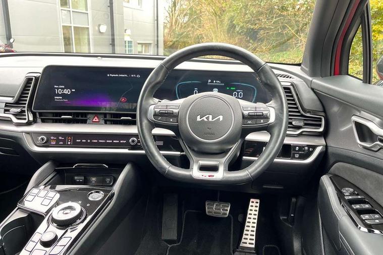 12.3" Display with navigation, 4.2" supervision colour cluster display, Apple car play/Android Auto with voice control, Drive mode selector, Driver attention warning, E-call, Forward collision avoidance assist (FCA) - city/pedestrian/cyclist/junction covering, Front and rear parking sensors, Highway Driving Assist (HDA), Intelligent speed limit assist, Kia Connect (UVO), Lane Following Assist (LFA), Lane keep assist, Low washer fluid warning, Motor driven power steering, Rear view monitor, Reversing camera system integrated into centre fascia screen, Smart cruise control with stop and go functionality, Tailgate, Trip computer, Windscreen washer level indicator, Intelligent Stop and Go, 6 speaker audio system, Bluetooth audio streaming, DAB Radio with MP3, Rear USB port, Steering wheel mounted audio controls, USB C type charging ports on centre console, USB C type charging ports on side of front seats, USB port for connection of a media device, All round electric windows with drivers and front passenger auto up/down and safety function, Auto dimming rear view mirror, Automatic headlight control system, Automatic window defogger, Backlite glass heated with timer, Black and body coloured bumpers, Body colour exterior door handles, Body colour radiator upper garnish and door garnish, Electrically adjustable/heated/folding door mirrors with LED indicators, Front and rear chrome skid plates, Gloss black door mirrors, Gloss black radiator grille, Gloss black side sill and wheel arch body mouldings, Glossy black roof rack, GT-Line exterior styling, High beam assist, Interior electrochromic mirror, LED daytime running lights, LED front fog lamps, LED headlamps (low and high beam - MFR type), LED High mounted stop light, LED rear combination lamp, Rain sensing wipers with aero blades, Rear fog lamp, Rear privacy glass, Rear side wing doors, Rear spoiler, Rear wiper, Satin finished beltline, Silver window surround, Tinted rear glass, Trailer stability assist, 12V power socket in front centre fascia and luggage compartment, 2nd row personal lamps, 3 seat bench in 2nd row, 3 x passenger assist grips, 40/20/40 split folding rear seat, All-round height adjustable headrests, Aluminium pedals, Automatic air conditioning, Black headlining, Centre console storage box, Cupholders in rear armrest, Door courtesy lamps, Drink holder at centre armrest, Driver and front passenger side sunvisors with illuminated vanity mirrors, Driver's seat manual height adjust, Drivers seat power lumbar support, Front and rear door storage, Front cabin, rear & luggage compartment lights, Front seat and rear pockets, Gear shift indicator, Glovebox illumination, GT-Line Interior Styling, Heated front seats, Heated steering wheel, Interior door lock/unlock function, ISOFIX Child seat top tethers and anchor fixings outer rear seats, Leather steering wheel, Luggage area load cover, Luggage area parcel shelf, Luggage board, Luggage net with hooks, Metal paint interior door handles, Overhead console lamp, Paddle shift controls, Rear cabin light, Rear coat hooks, Single front passenger seat, Suede leather upholstery, Tilt/telescopic adjustable steering wheel, Ventilation ducts to rear compartment, Active front headrests, All round 3-point seatbelts, Anti-lock braking system (ABS), Dual front side airbags, Dual horn, Dynamic brake control, Electronic parking brake with auto hold function, Electronic stability control with downhill brake control, Front passenger airbag cut-off switch, Front seatbelt pretensioners + load limiters, Height adjustable front seatbelts, Hill start assist control (HAC), Impact sensing auto door unlocking, Multi collision brake assist, Rear airbags, Rear door child safety locks, Rear seat alert system, Seatbelt reminder warning, Traction control, Twin curtain airbags, Twin front airbags, Tyre pressure monitoring system, Vehicle stability management, Advanced anti-theft system including immobiliser and alarm, Door deadlocks, Engine Start/Stop Button with Smart Entry System, Locking wheel nuts, Smart key with motion sensor, Speed sensitive auto door locking, Visible vehicle identification number, Aluminium pattern finish centre fascia and door garnish, 18" GT-Line alloy wheels, Tyre mobility kit,