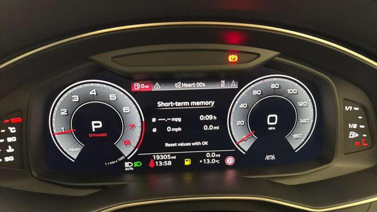 Audi connect safety and service (e-call), Audi connect with Amazon Alexa Integration, Audi drive select, Audi parking system plus - acoustic and visual park assist system for front and rear, Audi virtual cockpit, Automatic start/stop system with coasting functionality, Bluetooth interface, Camera based traffic sign recognition, Lane departure warning system, MMI navigation plus with 10.1" and 8.6" touch screens, Power operated tailgate, Progressive steering, Rear view camera, Service interval indicator, Smartphone interface includes wireless Apple carplay/Android Auto, Voice control system, Sports suspension, Audi front music interface, Audi sound system, Auxiliary input socket, DAB Digital radio, USB connection, Aluminium roof rails, Body colour rear roof spoiler, Body coloured door mirrors, Electric front/rear windows, Electrically adjustable heated and folding + automatically dimming exterior mirrors with memory function, Frameless auto dimming interior rear view mirror, Front intermittent wipers, Heat insulating darkened glass in side and rear windows, Heat insulating glass in windshield, LED rear lights with dynamic indicators, LED signature front daytime running light, LED third brake light, Matrix LED headlights, Matt black rear diffuser with diffuser strip and tailpipes in chrome, Matt black side air intake grille with inlay in matt aluminium, Privacy glass, Radiator grille in anthracite black matt, single frame in chrome and horizontal struts in matt aluminium silver, Rain and light sensors, Rear side wing doors, Rear wiper, 2 zone deluxe electronic climate control, 3 spoke high multi-function perforated leather steering wheel with contrast stitching and shift paddles, 40/20/40 split folding 3 rear seat bench in 3 parts with rear centre armrest, Audi phone box light, Black cloth headlining, Electrically adjustable front seats including seat height, fore/aft position, backrest angle and 4-way lumbar with memory for driver's seat, Front and rear floor mats, Front centre armrest, Front head restraints, Heated front seats, Height/reach adjust steering wheel, Illuminated door sill trims with S logo, Illuminated sun visors with vanity mirrors, Leather gear knob, Luggage compartment system, Rear headrests, Single front passenger seat, Stainless steel pedals and foot rest, Tool kit and car jack, LED Interior Ambient Lighting Pack - A6, Non smoking pack - A6, S line exterior style pack - A6, 3 point seatbelts on all seats, Airbags - Front side, front and rear including head, Audi pre-sense front, EBD - Electronic brakeforce distribution, Electromechanical parking brake, Electronic Stability Control (ESC) including ABS, ASR and EDL, Extended pedestrian protection measures, ISOFIX child seat mounting for front passenger seat and ISOFIX child seat mounting with Top Tether for outer rear seats, Manual child proof rear door locks, Seatbelt monitoring, Tyre pressure warning light, Warning triangle and first aid kit, Anti theft alarm with tow away protection, Anti-theft wheel bolts and wheel loosening detection, Immobiliser, Keyless Go, Remote central locking, Matt brushed aluminium inlays,