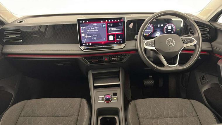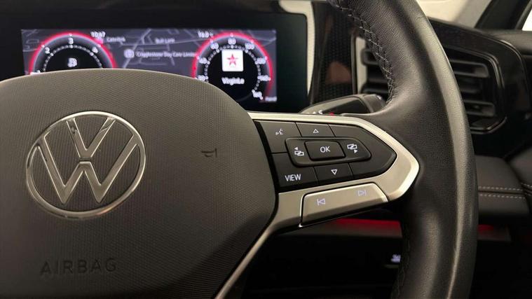 Adaptive cruise control (ACC), Advanced driver attention and drowsiness monitor, Bluetooth mobile phone interface, Digital Cockpit Pro - 10.25" high resolution dash display screen with customisable menus and information, Dynamic road sign display, E-Sim card for online connectivity, eCall emergency call service, Front Assist - Autonomous emergency braking with pedestrian and cyclist monitoring, Lane change system, Side assist, Rear traffic alert and Exit warning system, Lane keeping system Lane Assist, Multifunction front facing camera, Oncoming vehicle braking when turning including swerve support, Park assistance plus with front and rear parking sensors, Power assisted steering with speed sensitive, Start/stop system with regenerative braking, Warning signal and warning light for front and rear seatbelts not fastened, Wireless App-Connect, Front wheel drive, Digital radio reception (DAB), Diversity antenna for FM reception, Ambient lighting with logo projection, Auto dimming interior rear view mirror, Automatic headlight control system, Body coloured bumpers and air intake with chrome trim, Body coloured door handles, Body-coloured exterior mirror housings, Coming/leaving home lighting function, Heat insulating glass in side and rear windows, Heat insulating windshield, Heated rear window, High level 3rd brake light, Illuminated door handle recesses, Illuminated lightline between headlamps, Rain sensor windscreen wipers, Rear fog light on one side, reversing light on both sides, Rear side wing doors, Rear wiper, 12V outlet in center console rear and in luggage compartment, 12V socket in centre console, 3 bench rear seats in 2nd row, Air care climatronic 3 zone air conditioning system with rear air conditioning control panel, Carpet mats, front and rear, Centre console with illuminated storage compartment with sliding cover and two drinks holders, Ceramique headlining, Door and side trim panel in foam film and woven fabric, Front centre armrest, ISOFIX anchors for child seats on outer rear seats and front passenger seat compatible with i-Size, Mechanical rear seat release, Power adjustable lumbar support in front, Rear bench seat, split folding, longitudinally movable and folding with load-through hatch and centre armrest, Safety optimised front head restraints, Single front passenger seat, Sun visors with illuminated vanity mirrors, Three rear head restraints, Variable luggage compartment floor, Comfort package incl. Memory feature for Park assist and Safelock - Tiguan, Design package - Tiguan, 3 point seat belt for centre rear seats, 3 Point seat belts in front with pretensioners, 3 point seatbelts in outer rear with ECE label, Driver and front passenger airbag with front passenger airbag deactivation, Electronic parking brake with auto hold, Front and rear curtain airbags, Front and rear side airbags, Front centre airbag, Front disc brakes, Manual child proof rear door locks, Rear disc brakes, Two tone horn, Warning triangle, Anti theft wheel bolts, Soul instrument panel,