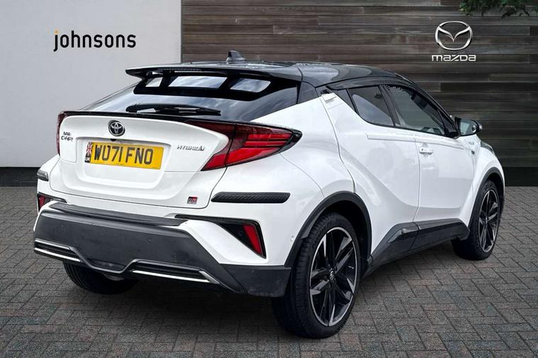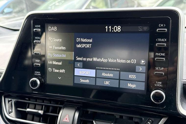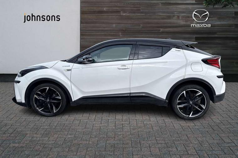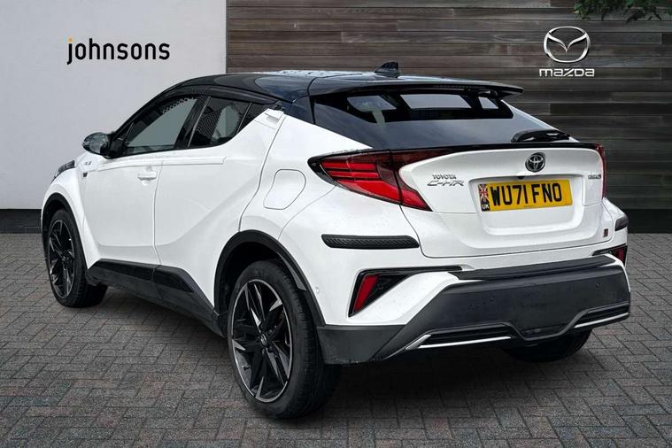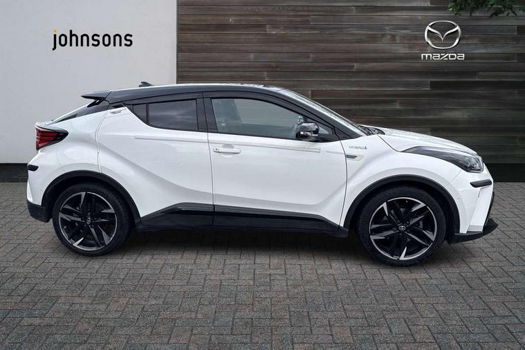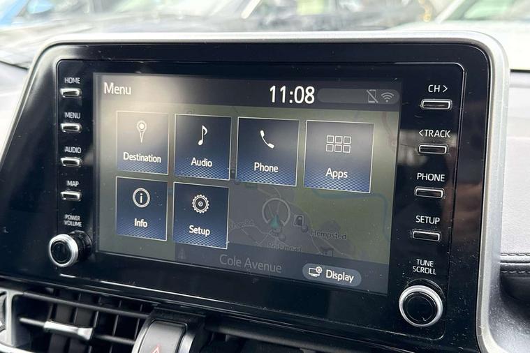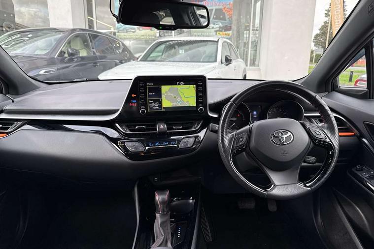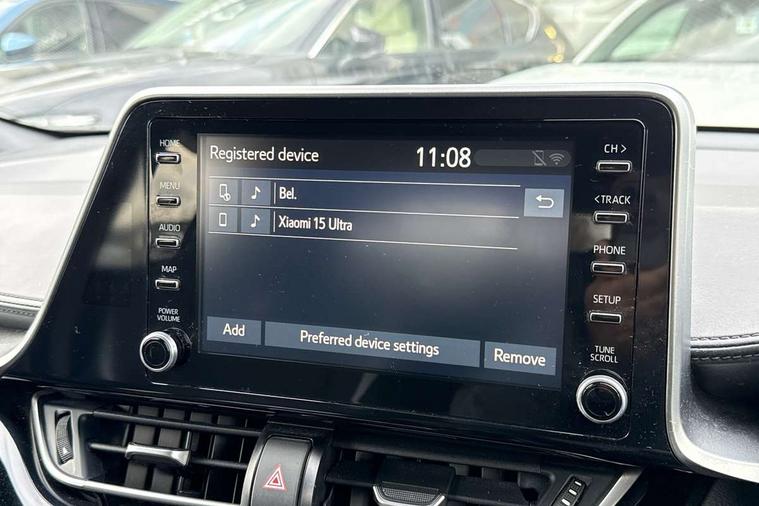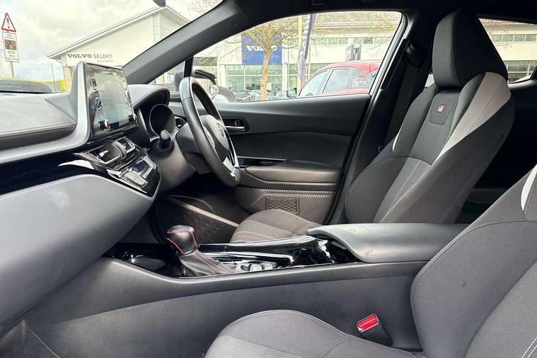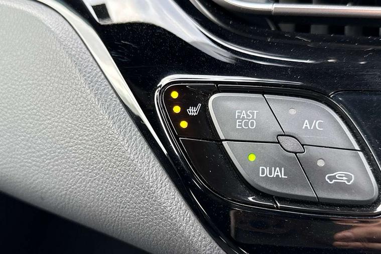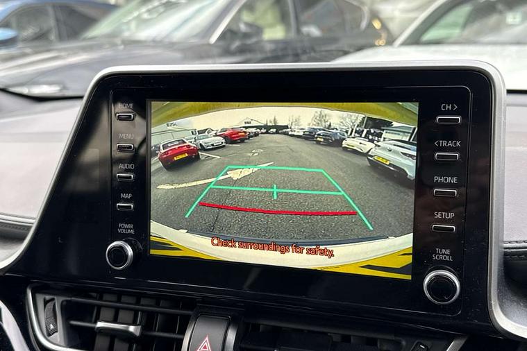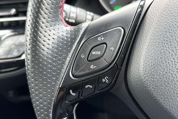 4.2" coloured TFT screen for multi-information display, Adaptive cruise control, Bluetooth connectivity, Electric power steering, Hybrid system indicator, Lane departure alert with steering control, Remote boot door release in cabin, Remote boot door release in key, Reversing camera, Road sign assist - RSA, Simple Intelligent parking assist, Touch 2 Go navigation system, Trip computer, Voice recognition, Vehicle Stability Control (VSC), 6 speakers, AM/FM radio, DAB Radio (Digital Audio Broadcasting), Toyota touch 2 multimedia system with 8" display, USB connector, Wi-fi connectivity, Adaptive front light system, Adaptive LED Headlights, Anti-jam protection on power windows, Auto high beam, Auto up and down function on all power windows, Automatic headlight levelling, Automatic headlights, Automatic headlights cut-off, Black and body coloured rear bumper, Black upper front grille, Body colour door handles, Body colour door mirrors, Body coloured front bumper, Boot door release with push button, Chrome front lower bumper, Electric heated door mirrors, Follow me home headlights, Front and rear power windows, Front spoiler lip in black, Honeycomb lower front grille, LED daytime running lights, LED fog lights, LED front light guide, LED High mounted stop light, LED rear brake lights, LED rear combination lights, Noise reduction layer on front windows and windscreen, Power adjustable door mirrors, Privacy glass, Rear sequential indicators, Rear spoiler, Rear tailgate, Rear window defogger, Rear window wiper, Shark fin antenna, UV-filter on driver and passenger windows, UV-filter on rear windows, 12v power outlet - front, 3 rear headrests, 3 spoke perforated leather steering wheel, 60/40 split folding rear seat, Adjustable rear headrests, Adjustable speed limiter switch on steering wheel, Assist grips front and centre pillar, Audio and telephone switches on steering wheel, Black front door assist grips, Blue ambient lighting on front cup holders, Blue ambient lighting on front doors, Boot light, Chrome interior door handles, Driver and front passenger personal light, Driver and front passenger Whiplash Injury Lessening seats, Driver and passenger seatback pockets, Dual zone automatic air conditioning, Fabric upholstery, Floor mats, Front cupholders, Front head restraints, Front sports seats, Glovebox with internal light, Hard tonneau cover, Heated driver and front passenger seats, Hooks for luggage holding net, Humidifying Nanoe air purifier, Illuminated entry system, Isofix attachments on outer rear seats, Leather gearshift, Light on driver sun visor, Light on passenger sun visor, Manual telescopic steering wheel, Manual tilt steering wheel, Manually height adjustable driver seat, Manually height adjustable front passenger seat, Manually reclining driver seat, Manually reclining front passenger seat, Manually sliding driver seat, Manually sliding front passenger seat, Microphone on front personal light, Mirror on driver sun visor, Mirror on passenger sun visor, Multimedia switches on steering wheel, Pollen filter, Power adjustable lumbar support on driver seat, Shopping bag hooks, Slow opening on lower glovebox, Voice recognition switch on steering wheel, Tech with parking sensor pack - C-HR, 16 Disk front wheel brake, 3x3 point rear seatbelts, ABS+EBD+Brake assist, Electronic parking brake, Front and rear seatbelt reminder, Front passenger airbag on/off switch, Hill start assist control (HAC), Pre collision system with pedestrian detection, Pre-tensioners and force limiters, Rear door child safety locks, SRS Airbags - Driver + Front passenger, front side, front and rear curtain and driver's knee airbags, Toyota safety sense, Tyre pressure monitoring system, Acoustic vehicle alert system (AVAS), Glass-breaking alarm sensors, Immobiliser, Intrusion alarm, Intrusion sensor, Motion sensor alarm, Power door locks, Power passenger window lock, Remote central locking, Black lower dashboard, Black upper dashboard, Piano black console, Silver deco line on upper dashboard, 19" Black machined alloy wheels, Tyre repair kit,