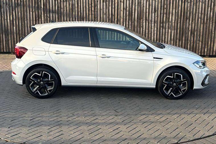 Adaptive cruise control with follow-to-stop and speed limiter, Advanced driver attention and drowsiness monitor, Bluetooth mobile phone interface, Digital Cockpit Pro with 10.25" Display, Dynamic road sign display, Emergency call service, Multifunction camera, Power assisted speed sensitive steering, Preparation for We connect and We connect plus, Speedo and rev counter, electronic odometer, trip, service interval display and fuel gauge, Standard rear axle, Travel Assist - Lane keeping system and traffic jam assist, Travel assist including emergency assist, Trip computer, Warning signal and warning light for front and rear seatbelts not fastened, Washer fluid level indicator, Wireless app connect, Front wheel drive, Rear shock absorpion, Start-stop system with battery regeneration (recuperation - energy recovery during braking), DAB Digital radio, Diversity antenna for FM reception, Body colour bumpers, Body colour door handles, Electric front windows, Front scuff plates with R-Line logo, Heat insulating glass windscreen, Power folding adjustable/heated exterior mirrors and front passenger exterior mirror lowering function, Rear electric windows, Rear fog light, Rear side wing doors, Rear windscreen washer and wiper with interval delay, Third brake light, 12V power socket in centre console, 2 USB-C ports in the front, 2 USB-C charging sockets on the center console in the rear, 3 rear head restraints, 60/40 split folding rear seat and rear seat bench not split, Air care climatronic air conditoning system with active combination filter and 2-zone temperature control, Black roof lining, Carpet mats, front and rear, Chrome plated radiator grille inserts, air vent surrounds and light switch surrounds, Door and side trim panel, Driver and front passenger seat height adjustment, Driver/passenger sunvisors with illuminated vanity mirrors, Front centre armrest, Front footwell illumination, Front seat backrest storage pockets, Front sports comfort seats, Handbrake lever handle in leather, Headliner in recycled material, Isofix child seat preparation easy-fit (for two outer rear seats, and front passenger seat) compatible with I-size, Karoso artvelours cloth upholstery, Leather trimmed gear knob, LED interior light with switch off delay and dimmer, 2 reading lights front and rear, Luggage compartment cover, Luggage compartment floor, Luggage compartment lighting, Lumbar adjustment for front seats, Single front passenger seat, Stainless steel pedals, Standard pedal cluster, Three spoke leather wrapped multifunction steering wheel with shifting paddles, Light and sight pack - Polo R-Line/Black Edition, 3 point height adj front seatbelts + pretensioners, 3x3 point rear seatbelts, ABS, Driver and front passenger airbag with front passenger airbag deactivation, Drivers and front passengers safety optimised head restraints, ESC (Electronic stability control) + EDL (Electronic Differntial lock) and ASR (Traction control), Extended and predictive pedestrian/ cyclist protection, Front curtain and side airbags with center airbag, Front/rear disc brakes, Hill hold control, Manual child lock in rear doors, Single tone horn, Tyre pressure loss indicator, Alarm with interior protection, Anti-theft alarm system with interior monitoring, backup horn, and towing protection, Anti-theft wheel bolts, Electronic engine immobiliser, Chrome applications on rotary light, mirror adjustment, window regulator switches, outlet with frame in black, Dark grey anodised matt decorative inserts in dash and front door panels, 16" Coventry alloy wheels, Low rolling resistance tyres,
