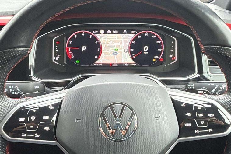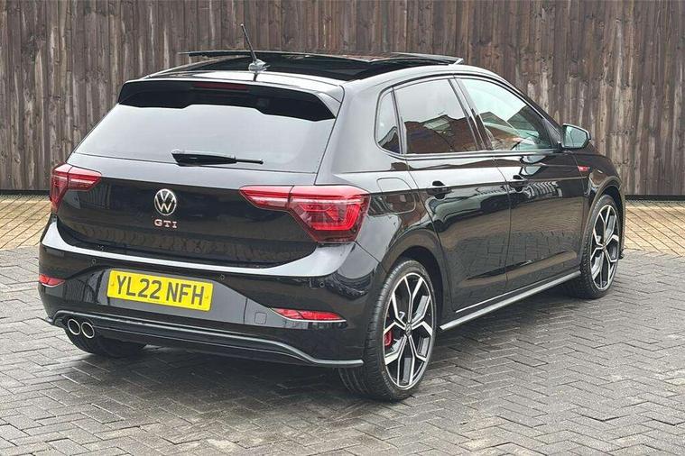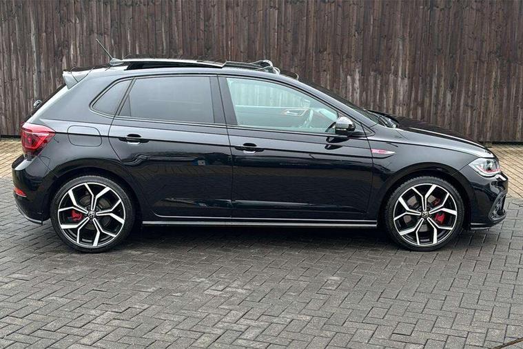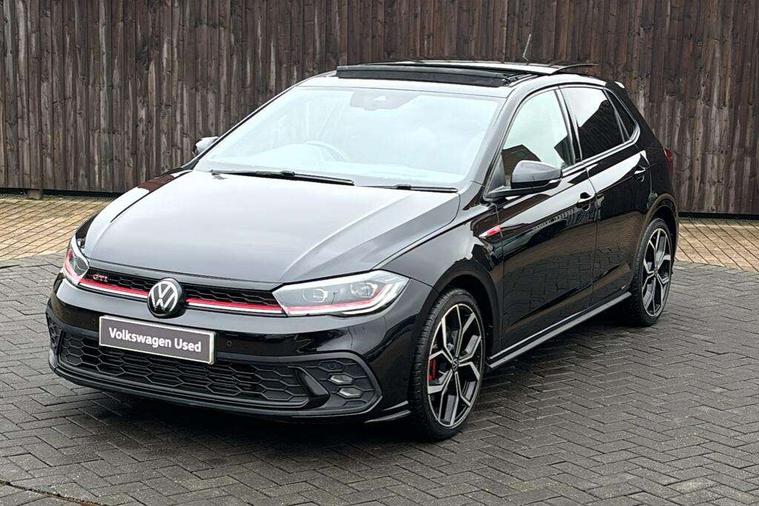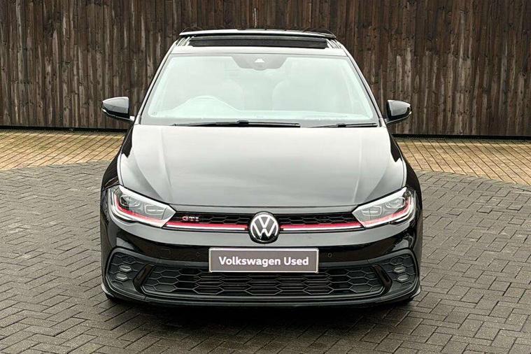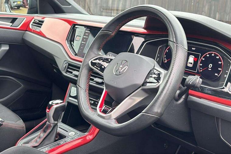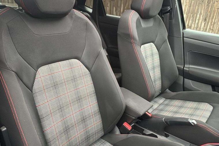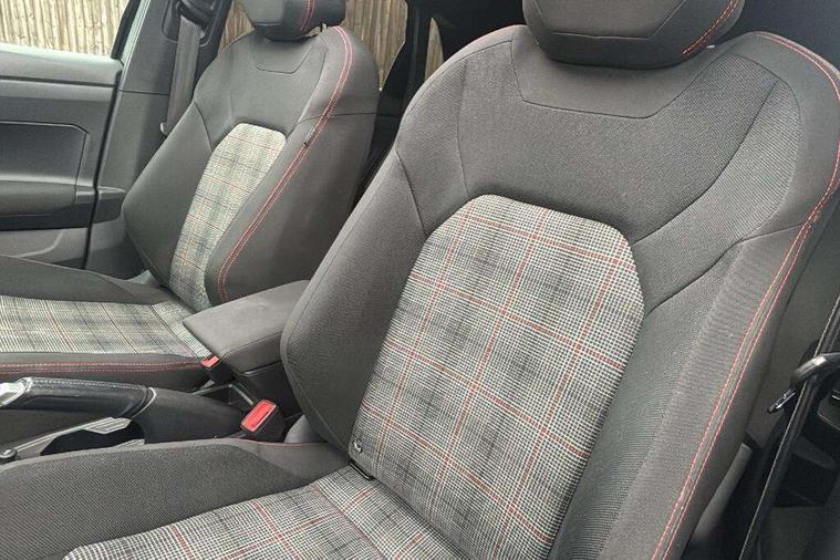 Adaptive cruise control with follow-to-stop and speed limiter, Bluetooth mobile phone interface, Digital Cockpit Pro with 10.25" Display, Driver alert system, Dynamic road sign display, Eco mode, Emergency call service, Power assisted speed sensitive steering, Preparation for We connect and We connect plus, Speedo and rev counter, electronic odometer, trip, service interval display and fuel gauge, Travel Assist - Lane keeping system and traffic jam assist, Travel assist including emergency assist, Trip computer, Warning signal and warning light for front and rear seatbelts not fastened, Washer fluid level indicator, Wireless app connect, Adaptive chassis control, Front wheel drive, Heavy duty rear axle, Rear shock absorpion sports version, Sports select suspension lowered by 15mm, Start-stop system with battery regeneration (recuperation - energy recovery during braking), DAB Digital radio, Diversity antenna for FM reception, Front and rear 6 speakers, Body colour bumpers, Body colour door handles, Electric front windows, Front scuff plates in aluminium with GTI logo, Heat insulating darkened glass in side and rear windows, Heat insulating glass windscreen, Power folding adjustable/heated exterior mirrors and front passenger exterior mirror lowering function, Rear electric windows, Rear fog light, Rear side wing doors, Rear windscreen washer and wiper with interval delay, Sport bumpers with air intakes with honeycomb structure, Third brake light, Twin chrome exhaust tailpipes, 12V power socket in centre console, 2 USB-C ports in the front, 2 USB-C charging sockets on the center console in the rear, 3 rear head restraints, 60/40 split folding rear seat and rear seat bench not split, Air care climatronic air conditoning system with active combination filter and 2-zone temperature control, Black roof lining, Ceramique headliner, Chrome plated radiator grille inserts, air vent surrounds and light switch surrounds, Door and side trim panel, Driver and front passenger seat height adjustment, Driver/passenger sunvisors with illuminated vanity mirrors, Front + rear carpet mats, Front centre armrest, Front footwell illumination, Front seat backrest storage pockets, GTI sports gearshift knob in aluminium leather, Handbrake lever handle in leather, Isofix child seat preparation easy-fit (for two outer rear seats, and front passenger seat) compatible with I-size, LED interior light with switch off delay and dimmer, 2 reading lights front and rear, Luggage compartment cover, Luggage compartment floor, Luggage compartment lighting, Single front passenger seat, Stainless steel pedals, Standard pedal cluster, Three spoke leather wrapped multifunction sports steering wheel with shifting paddles, IQ LED matrix headlights pack - Polo, Light and sight pack - Polo GTI, Sports suspension pack - Polo, 3 point height adj front seatbelts + pretensioners, 3x3 point rear seatbelts, ABS, Driver and front passenger airbag with front passenger airbag deactivation, Drivers and front passengers safety optimised head restraints, ESC (Electronic stability control) + EDL (Electronic Differntial lock) and ASR (Traction control), Extended and predictive pedestrian/ cyclist protection, Front and rear disc brakes with red brake calipers, Front curtain and side airbags with center airbag, Hill hold control, Manual child lock in rear doors, Two tone horn, Tyre pressure loss indicator, Alarm with interior protection, Anti-theft alarm system with interior monitoring, backup horn, and towing protection, Anti-theft wheel bolts, Electronic engine immobiliser, Chrome applications on rotary light, mirror adjustment, window regulator switches, outlet with frame in black, Low rolling resistance tyres,