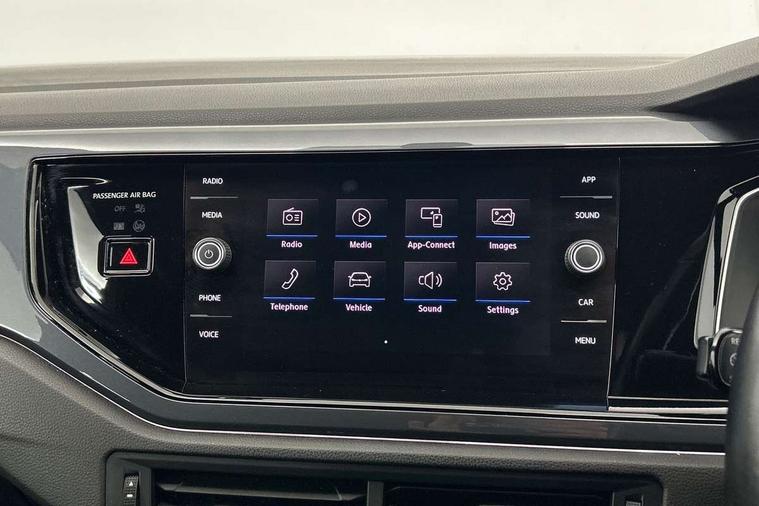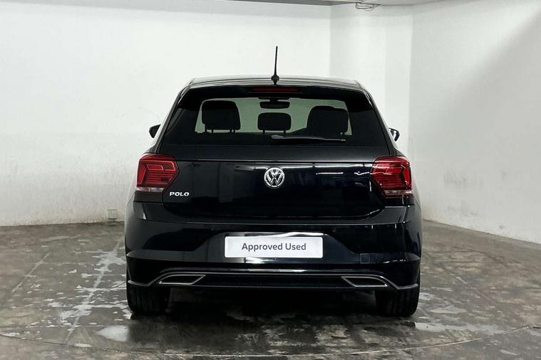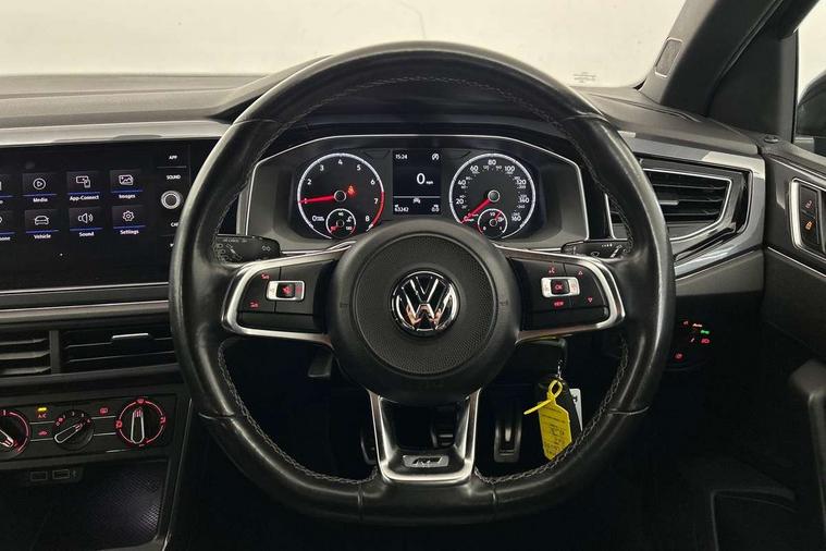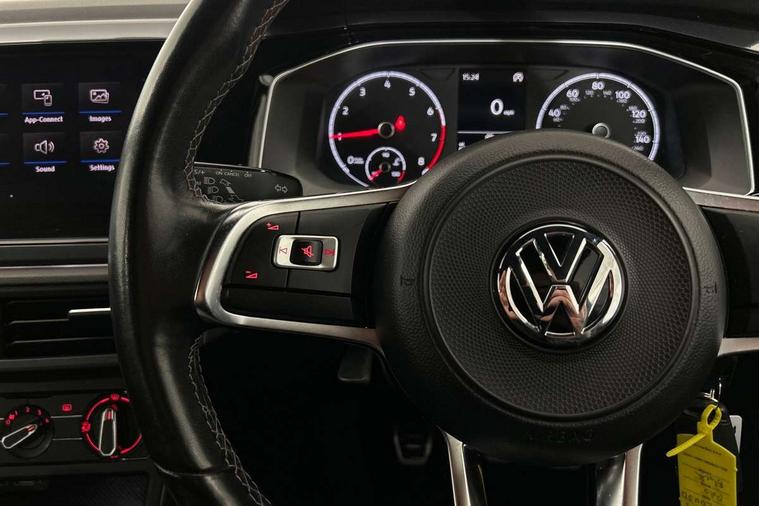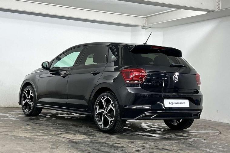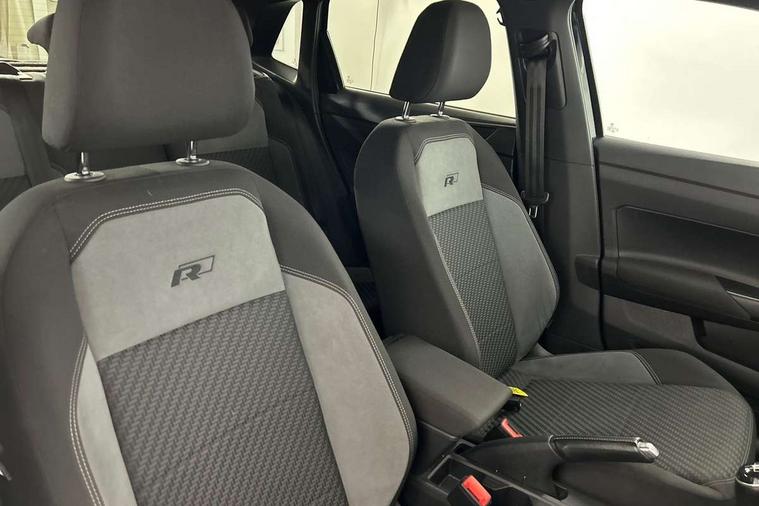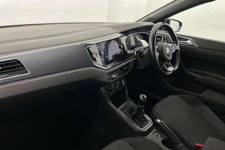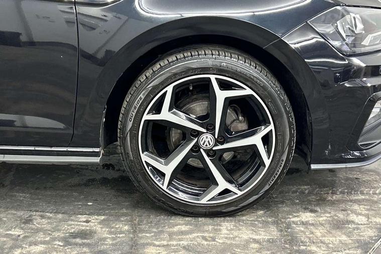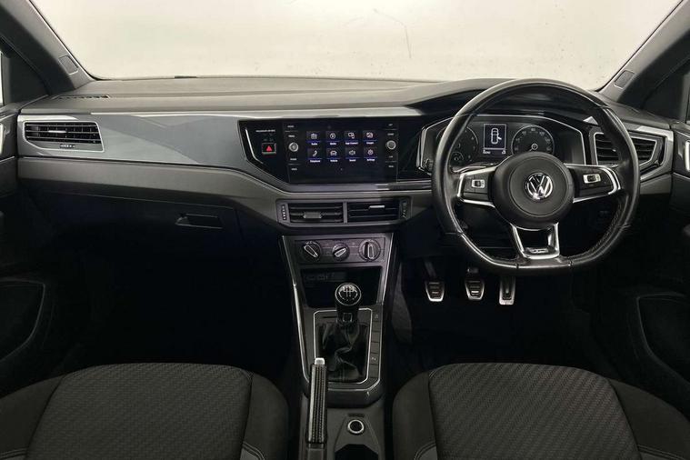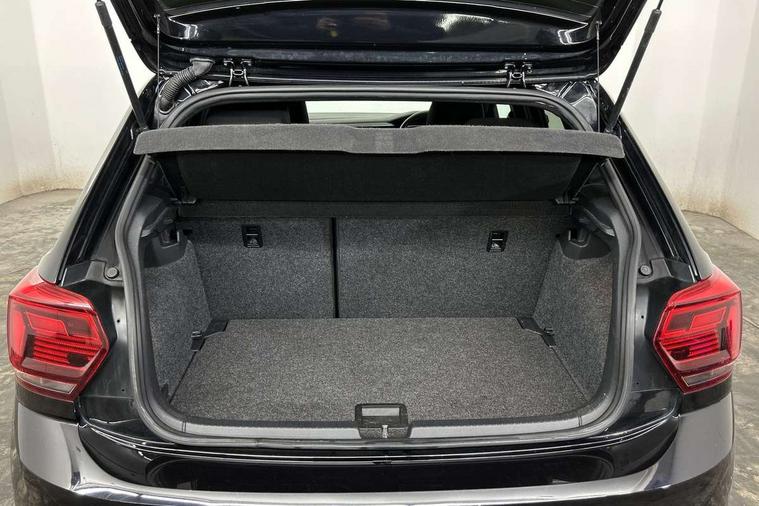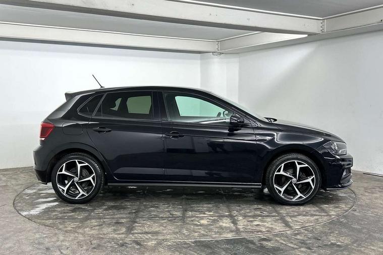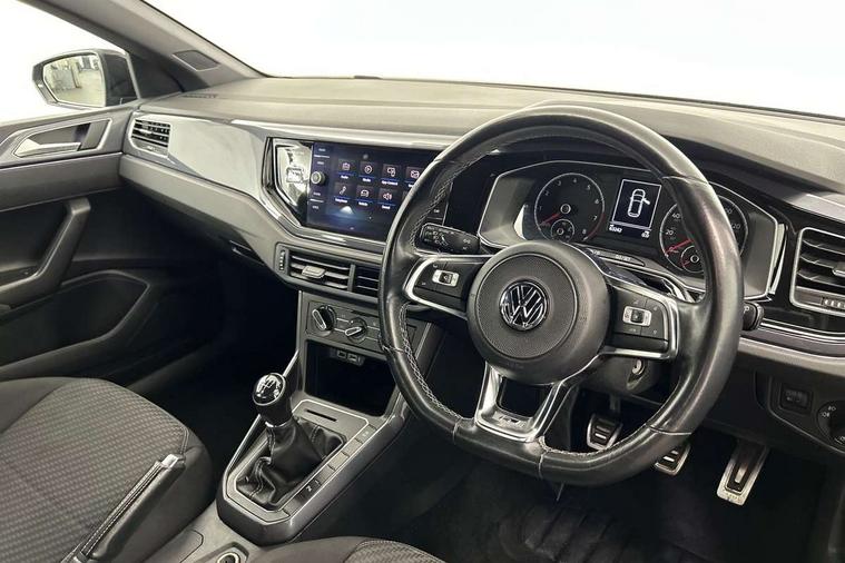 App-Connect, Digital clock, Driver alert system, Lights on warning, Multifunction computer plus, Power assisted speed sensitive steering, Speedo and rev counter, electronic odometer, trip, service interval display and fuel gauge, Start/stop system, Volkswagen connect, Warning buzzer and light for front seatbelts unfastened, Battery regeneration during braking, Galvanished body, Black grille with chrome surround, Body colour door handles, Body coloured side sills, Chrome trimmed strip on lower bumper, Electric front windows, Electrically foldable, adjustable and heated door mirrors with reverse activated kerb view adjustment on passenger's side, Front fog lights including static cornering, Front windscreen washers and wipers with 4 speed intermittent delay, Heated rear window with auto timer, High level 3rd brake light, LED darkened rear light clusters, LED daytime running lights, LED rear number plate lights, Left and right chrome effect trapezoid fascia exhaust tailpipe surrounds, Rear diffuser, Rear electric windows, Rear windscreen washer and wiper with interval delay, reverse activated, Unique R Line badging, 2 bag hooks in luggage compartment, 2 front cupholders and 12 V socket with cover, 3 rear head restraints, 60/40 split folding rear seat, Ambient lighting in front foorwell, front/rear door and dashboard light strips, Carbon flag cloth upholstery, Centre console storage with open storage compartment, Chrome-plated electric mirror adjustment switch surround, Chrome-plated electric window button surround, Driver and front passenger seat height adjustment, Driver and front passenger sunvisors with illuminated vanity mirrors, Dust/pollen filter, Folding rear seat backrest, Front + rear carpet mats, Front centre armrest with storage compartment, Front head restraints, Front seat backrest storage pockets, Front sport seats with lumbar adjustment and R line logo on seat backrest, Gear lever gaiter in black trim surround, Glovebox, Handbrake grip button in chrome effect, Height/reach adjustable steering column, Instrument lighting, adjustable panel illumination, Interior light with delay, Isofix Preparation 2 Rear child seats, Leather gear knob and handbrake grip, LED interior lighting - 2 reading lights front and rear with interior delay and dimming function, Luggage compartment cover, removable, Luggage compartment lighting, Luggage compartment with variable load floor, Stainless steel pedals, Storage compartment in front doors, Storage compartment in rear doors, Storage compartment under front seats, Three spoke leather trimmed multifunction steering wheel with aluminium inserts and R Line Logo, Titanium black roof lining and sun visors, Unique R Line door sill protectors, Light and sight pack - Polo, R Line styling pack - Polo, 3 point height adj front seatbelts + pretensioners, 3x3 point rear seatbelts, ABS, Automatic post collision braking, Driver/front passenger airbag, Drivers and front passengers safety optimised head restraints, ESP with EDL + ASR, Front and rear passenger curtain airbags, Front passenger airbag deactivation, Front seat side impact airbags, Front/rear disc brakes, Hill hold control, Hydraulic Brake Assist (HBA), Single tone horn, Tyre pressure monitoring system, Alarm with interior protection and deactivation via infotainment system, Electronic engine immobiliser, Remote central locking with 2 remote folding keys, Chrome plated air vent surround, Chrome plated instrument surrounds, Shadow steel decorative inserts, Steel space saver spare wheel,