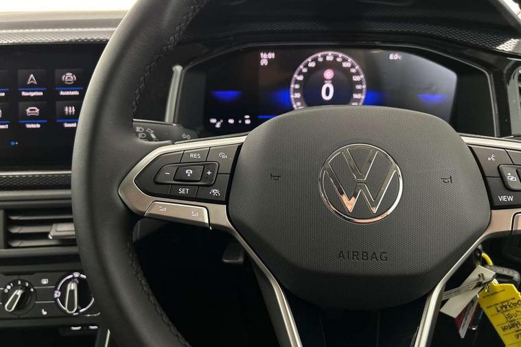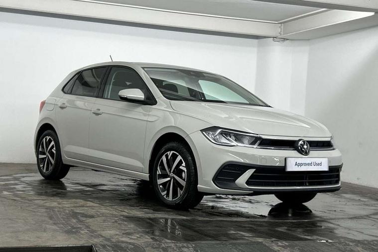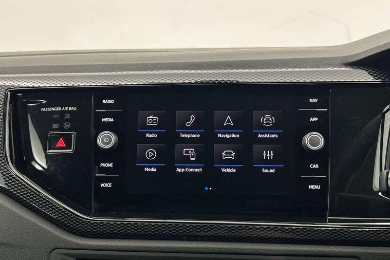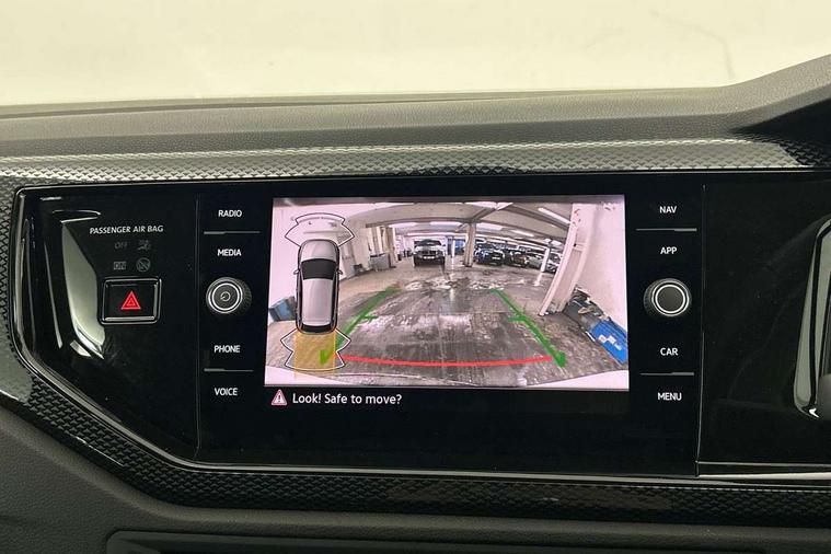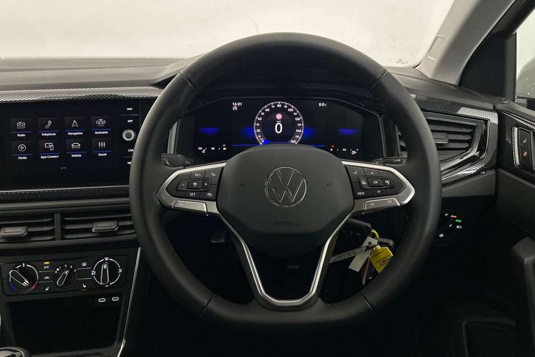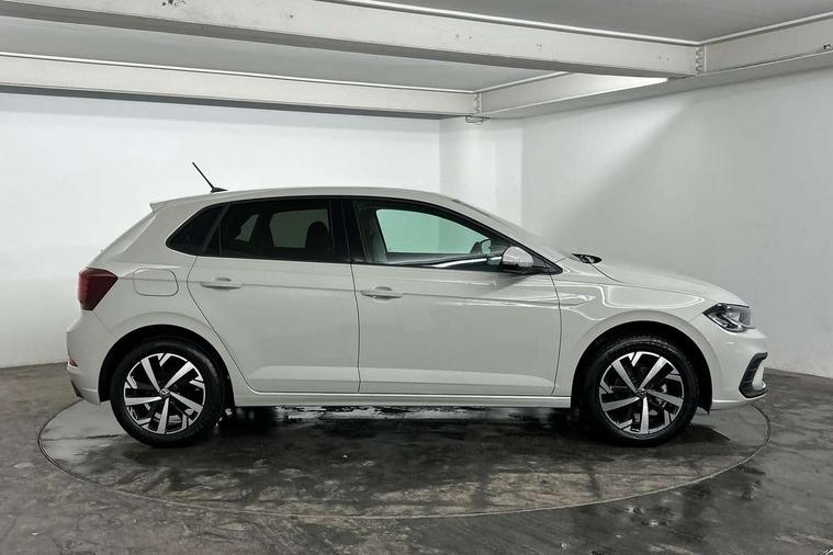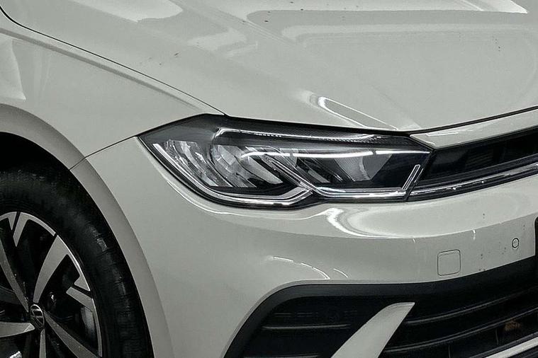 Adaptive cruise control without follow-to-stop and speed limiter, Advanced driver attention and drowsiness monitor, Bluetooth mobile phone interface, Dynamic road sign display, Emergency call service, Mobile phone preparation with inductive charging function, Multifunction front facing camera for distance control, Power assisted speed sensitive steering, Preparation for navigation system with media and internet package, Preparation for We connect and We connect plus, Rear view camera, Speedo and rev counter, electronic odometer, trip, service interval display and exterior temperature gauge, Standard rear axle, Travel Assist - Lane keeping system and traffic jam assist, Travel assist including emergency assist, Trip computer, Warning signal and warning light for front and rear seatbelts not fastened, Washer fluid level indicator, Wireless app connect, Front wheel drive, Rear shock absorpion, Start-stop system with battery regeneration (recuperation - energy recovery during braking), DAB Digital radio, Diversity antenna for FM reception, Automatic dimming interior rear view mirror, Automatic headlight control with LED separate daytime running lights with coming/leaving home function, Body colour bumpers with chrome inserts, Body colour door handles, Body colour door mirrors, Electric front windows, Engine badge deletion, Headlight range adjustment, Heat insulating and laminated safety glass windshield, LED Headlights, LED rear combination lamps, Power folding adjustable/heated exterior mirrors and front passenger exterior mirror lowering function, Rain sensor, Rear electric windows, Rear fog light, Rear side wing doors, Rear tinted glass from B-pillar backwards approx 65% tinted, Rear windscreen washer and wiper with interval delay, Third brake light, 12V power socket in centre console, 2 front and 2 rear reading lights with switch off delay and dimmer, 2 USB-C ports in the front, 2 USB-C charging sockets on the center console in the rear, 3 rear head restraints, 60/40 split folding rear seat and rear seat bench not split, Carpet mats, front and rear, Ceramique roof lining, Chrome plated radiator grille inserts, air vent surrounds and light switch surrounds, Door and side trim panel, Driver and front passenger seat height adjustment, Driver/passenger sunvisors with illuminated vanity mirrors, Front centre armrest, Front seat backrest storage pockets, Front standard seats, Handbrake lever handle in leather, Hartley/Thomas cloth upholstery, Headliner in recycled material, Isofix child seat preparation easy-fit (for two outer rear seats, and front passenger seat) compatible with I-size, Leather trimmed gear knob, Luggage compartment cover, Luggage compartment lighting, Removable luggage compartment floor, Single front passenger seat, Standard climatic zones, Standard pedal cluster, Three spoke leather wrapped multifunction steering wheel, Light and vision pack - Polo, 3 point height adj front seatbelts + pretensioners, 3 point seat belt for centre rear seat, 3 point seatbelts, outer rear with ECE lable, ABS, Driver and front passenger airbag with front passenger airbag deactivation, Drivers and front passengers safety optimised head restraints, ESC (Electronic stability control) + EDL (Electronic Differntial lock) and ASR (Traction control), Extended and predictive pedestrian/ cyclist protection, Front assist with autonomous emergency braking (for Adaptive Cruise Control ACC up to 130 mph), Front curtain and side airbags with center airbag, Front disc brakes, Hill hold control, Manual child lock in rear doors, Rear drum brakes, Single tone horn, Tyre pressure loss indicator, Alarm with interior protection, Anti-theft alarm system with interior monitoring, backup horn, and towing protection, Anti-theft wheel bolts, Electronic engine immobiliser, Lava stone black gloss/matt decorative inserts in dash and front door panels, 16" Torsby alloy wheels, Low rolling resistance tyres,