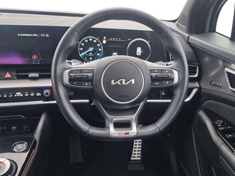 12.3" Driver display screen, 12.3" Touchscreen navigation system, 2 rear USB-C ports, 360 degree around view monitor, Apple car play/Android Auto, Blind spot collision avoidance assist, Blind spot view monitor, Drive mode selector, Driver attention warning, E-call, Emergency stop signalling system, Forward collision avoidance assist (FCA) - city/pedestrian/cyclist/junction covering, Front and rear parking sensors, Highway Driving Assist (HDA), Intelligent speed limit assist, Kia Connect (UVO), Lane Following Assist (LFA), Lane keep assist, Low washer fluid warning, Motor driven power steering, Parking collision avoidance assist (PCA), Rear cross traffic collision avoidance assist (RCCA), Remote smart parking assist, Reversing camera system integrated into centre fascia screen, Safe exit warning (SEW), Smart cruise control with stop and go functionality, Smart power tailgate, Speed limiter, Trip computer, Windscreen washer level indicator, Wireless Smartphone charger, 1x USB-C port in front, Bluetooth audio streaming, DAB Radio with MP3, Harman Kardon premium sound system with 8 speakers, Steering wheel mounted audio controls, USB C type charging ports on centre console, USB port for connection of a media device, All round electric windows with drivers and front passenger auto up/down function, Auto dimming rear view mirror, Automatic headlight control system, Automatic window defogger, Black and body coloured bumpers, Body colour exterior door handles, Body colour radiator upper garnish and door garnish, Dual LED headlights with adaptive driving beam, Electrically adjustable/heated/folding door mirrors with LED indicators, Front and rear chrome skid plates, Gloss black door mirrors, Gloss black radiator grille, Gloss black side sill and wheel arch body mouldings, Glossy black roof rack, GT-Line exterior styling, Heated rear window, High beam assist, Interior electrochromic mirror, LED daytime running lights, LED front fog lamps, LED High mounted stop light, LED rear combination lamp, Panoramic sunroof with tilting and sliding function with electric blind, Rain sensing wipers with aero blades, Rear fog lamp, Rear privacy glass, Rear side wing doors, Rear spoiler, Rear wiper, Satin finished beltline, Silver window surround, Tinted rear glass, Trailer stability assist, 12V power socket in front centre fascia and luggage compartment, 3 seat bench in 2nd row, 3 x passenger assist grips, 40/20/40 split folding rear seat, All-round height adjustable headrests, Alloy pedals, Automatic air conditioning, Black headlining, Centre console storage box, Cupholders in rear armrest, Customisable ambient lighting, Door courtesy lamps, Drink holder at centre armrest, Driver and front passenger side sunvisors with illuminated vanity mirrors, Drivers seat power lumbar support, Electric adjustable driver seat with memory function, Electric adjustable front passenger seat, Front and rear door storage, Front seat and rear pockets, Gear shift indicator, Glovebox illumination, GT-Line Interior Styling, Heated front and outer rear seats, Heated steering wheel, ISOFIX Child seat top tethers and anchor fixings outer rear seats, Leather steering wheel, LED front cabin light, LED interior personal lamp, LED lighting in overhead console, LED rear reading lights, Luggage area LED light, Luggage area load cover, Luggage area parcel shelf, Luggage board, Luggage compartment under floor storage, Luggage net with hooks, Manual adjust steering wheel, Metal paint interior door handles, Paddle shift controls, Rear air conditioning, Rear cabin light, Rear coat hooks, Single front passenger seat, Suede leather upholstery, Ventilated front seats, Ventilation ducts to rear compartment, Active front headrests, All round 3-point seatbelts, Anti-lock braking system (ABS), Dual front side airbags, Dual horn, Dynamic brake control, Electronic parking brake with auto hold function, Electronic stability control with downhill brake control, Front passenger airbag cut-off switch, Front seatbelt pretensioners + load limiters, Height adjustable front seatbelts, Hill start assist control (HAC), Impact sensing auto door unlocking, Multi collision brake assist, Rear airbags, Rear door child safety locks, Rear seat alert system, Seatbelt reminder warning, Traction control, Twin curtain airbags, Twin front airbags, Tyre pressure monitoring system, Vehicle stability management, Customisable automatic door locking, Customisable automatic door unlocking, Door deadlocks, Engine Start/Stop Button with Smart Entry System, Locking wheel nuts, Smart key with motion sensor, Speed sensitive auto door locking, Thatcham category 2 security alarm and immobiliser, Visible vehicle identification number, Aluminium pattern finish centre fascia and door garnish, 18" GT-Line alloy wheels, Tyre mobility kit,