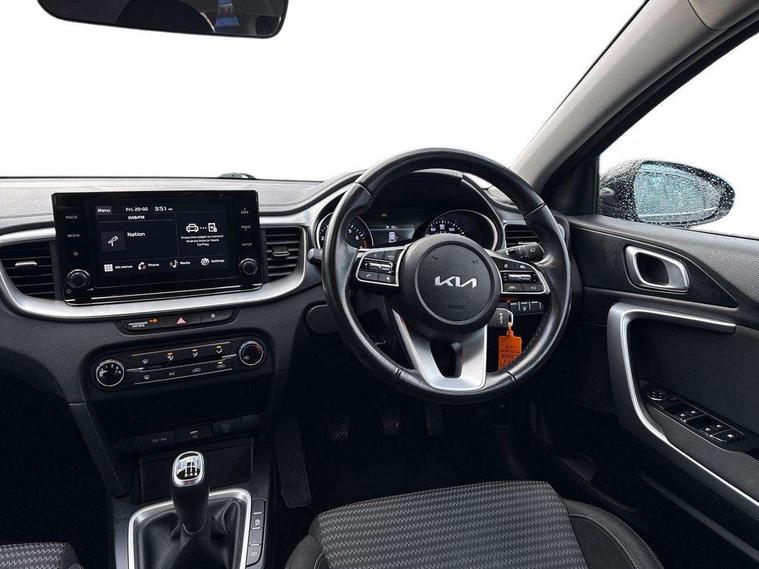 4.2" supervision colour cluster display, 8" colour touch screen, Android auto with voice control, Apple car play with voice control, Bluetooth with Voice Recognition & Music Streaming, Cruise control + speed limiter, Driver attention warning, Emergency call service, Forward Collision-Avoidance Assist (FCA) - City/Pedestrian/Cyclist, Lane Following Assist (LFA), Lane keep assist, Motor driven power steering, Reversing camera with dynamic guide lines, Tailgate, Trip computer, Intelligent Stop and Go, 1x Rear USB-C, 2x Front USB (1x USB-C, 1x USB-A), 7 speakers, DAB Radio with MP3, Rear console USB C-type charge port, Steering wheel mounted controls, All-round Electric Windows with Front Auto Up & Down Function, Automatic headlights, Black side sill mouldings with chrome inserts, Black wheel arch trim, Body colour bumpers, Body colour exterior door handles, Body colour rear spoiler, Body coloured door mirrors with matt black lower housing, Body coloured shark fin antenna, Electrically adjustable and heated door mirrors, Heated rear window with timer, High beam assist, High glossy black and satin chrome rear skid plate, LED Bi-Function projection headlights, LED daytime running lights, LED High-mounted Brake Light, LED rear fog light, LED rear lights, Matt black and satin chrome radiator grille, Rear side wing doors, Rear wiper, Satin chrome window surround, Silver roof rails, Smaller XCeed badge on rear left hand tailgate, Tinted glass, Variable front intermittent wipers, Windscreen Washer Level Warning, 3 seat bench in 2nd row, 60/40 split folding rear seat, Air conditioning, All-round height adjustable headrests, Centre console storage box/armrest, Chrome interior door handles, Cloth door trim, Cupholders in centre console, Driver and passenger front seat pockets, Driver's seat height adjuster, Front and luggage area 12V power sockets, Front and rear door storage, Front cabin map light with sunglasses case, Illuminated driver and front passenger sunvisors with vanity mirror, ISOFIX Child seat top tethers and anchor fixings, Leather steering wheel, Luggage area light, Luggage area parcel shelf, Luggage hooks, Premium cloth upholstery, Rear cabin light, Rear centre armrest with cupholders, Single front passenger seat, Tilt/telescopic adjustable steering wheel, ABS with Electronic Brakeforce Distribution (EBD) and Brake Assist System (BAS), All round 3-point seatbelts, Dual horn, Electronic stability control (ESC) and vehicle stability management (VSM), Front passenger airbag cut off switch, Height adjustable front seatbelts, Hill start assist control (HAC), Impact sensing auto door unlocking, Manual handbrake, Rear door child safety locks, Seatbelt reminder warning, Traction control, Twin curtain airbags, Twin front airbags, Twin front side airbags, Tyre pressure monitoring system, Alarm system, Engine Immobiliser & Deadlocks, Locking wheel nuts, Remote central door locking with fold away key, 16" alloy wheels, Tyre mobility kit,