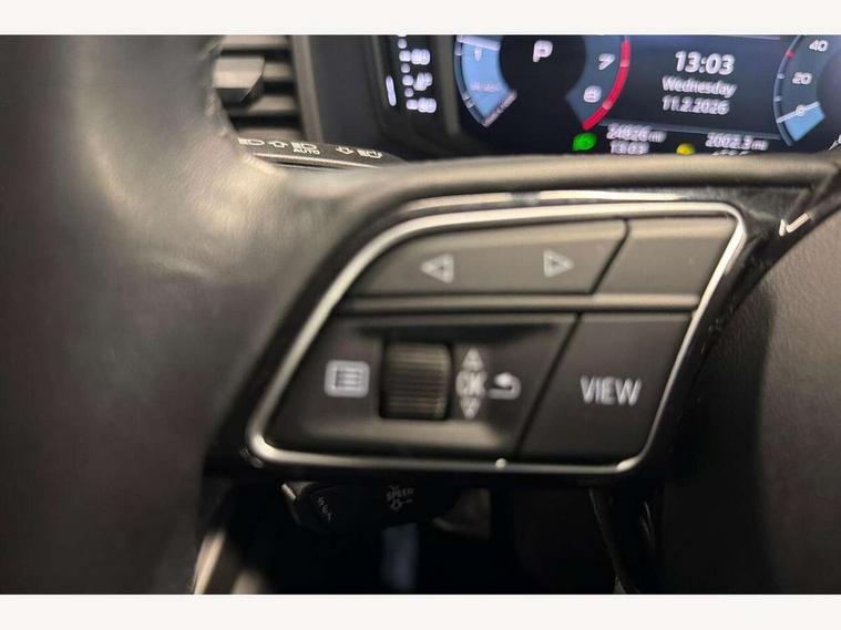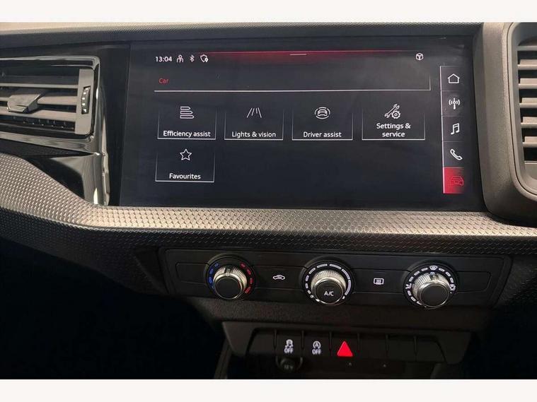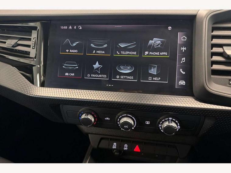 10.25" Digital instrument cluster display classis style instrument dials + speed, odometer, time, outside temperature, telephone menu + fuel level warning, Audi smartphone interface with connect compatible smartphone via USB directly MMI display + Nav, music, third party apps controlled via MMI controller, Automatic start/stop system, Bluetooth interface, Driver's information system, Electromechanical power steering, Emergency e-call, Emergency services call system, Lane departure warning system, Service interval indicator, Speed limiter, Voice control system, Washer fluid level indicator, Dynamic suspension, 1 x SDXC card reader, 2 x USB type C connection points, 6 passive loudspeakers, DAB Digital radio, MMI radio plus with 8.8" colour MMI display screen and MMI touch, Auto dimming rear view mirror, Body coloured bumpers, Body coloured door mirrors, Electric front and rear windows, Electrically adjustable, heated, folding door mirrors with integrated LED side indicator, Front side air inlets with front spoiler lip and rear diffuser in matt black grained, Heat insulating glass windscreen and side windows, Heated rear windscreen, High level LED brake light, LED headlights with LED rear lights + dynamic rear indicators + headlight adjustment and high beam, turning light + LED daytime running lights, Radiator grille in matt black, Rain and light sensors, Rear fog lights, Rear side wing doors, Rear wing door, Rear wiper, 12V socket in centre console with two cup holders, 3 rear seats with headrests, 3 seat bench in 2nd row, 3 spoke leather multifunction plus steering wheel, 40:60 Split folding rear seat or folded fully, Air vents, door handle recesses and centre console in black, Delta cloth upholstery, Driver and passenger seat with manual height adjust with forward and backwards adjustment, Front head restraints, Front passenger seat, Front/rear floor mats, Height and reach adjustable steering wheel, ISOFIX child seat mounting for front passenger and outer rear seats including top tether attachment point of outer rear seats, Leather gear knob with aluminium trim, Leatherette handbrake grip, Luggage compartment light with front and rear reading lights, Manual air conditioning, Titanium grey cloth headlining, Luggage compartment pack - A1, 3x3 point rear seatbelts, Audi pre-sense front with pedestrain and cyclist recognition, Brake assist function, Driver and front passenger airbag with front side and head airbags, Electronic Stability Control including ABS, EBD, ASR and EDL, Front passenger airbag deactivation switch, Hill hold assist, Manual rear child locks, Seatbelt height adjustment for front seats, Seatbelt monitoring, Tyre pressure warning light, Warning triangle and first aid kit, Anti theft alarm, Anti theft wheel bolts and loose wheel warning, Immobiliser, Remote central locking with 2 foldaway keys, Black inlays polygon structure, 15" 5 arm design alloy wheels,