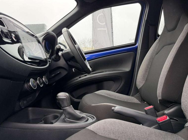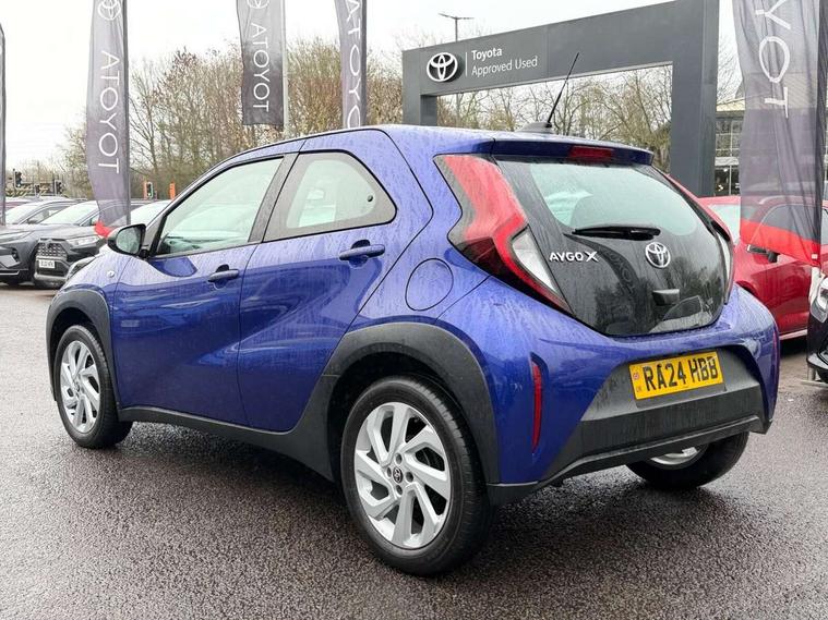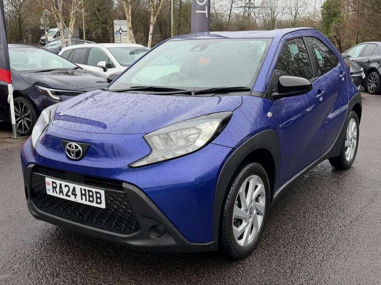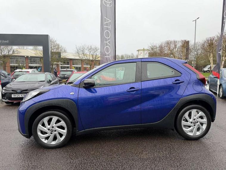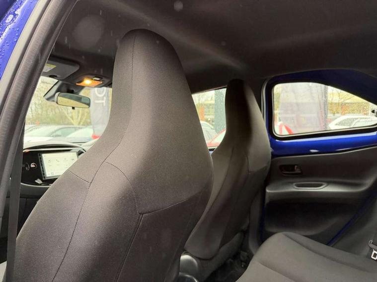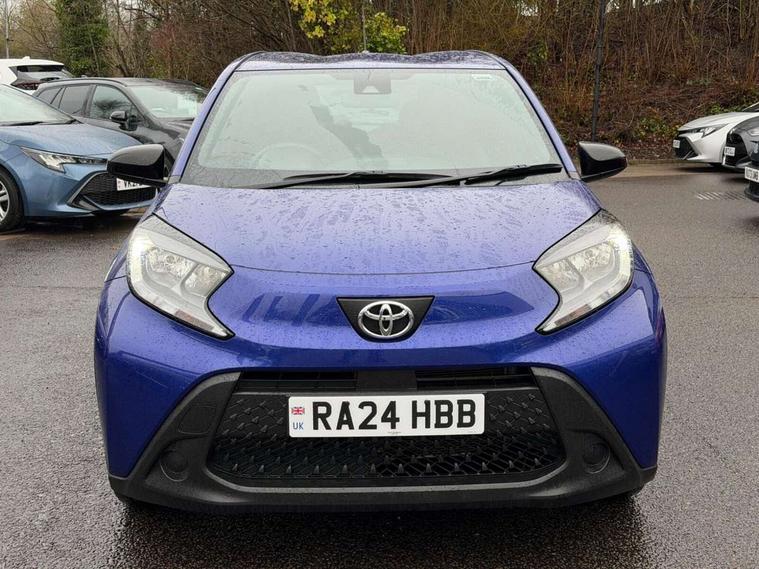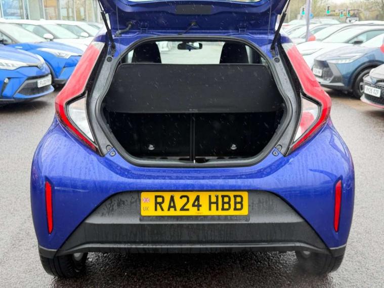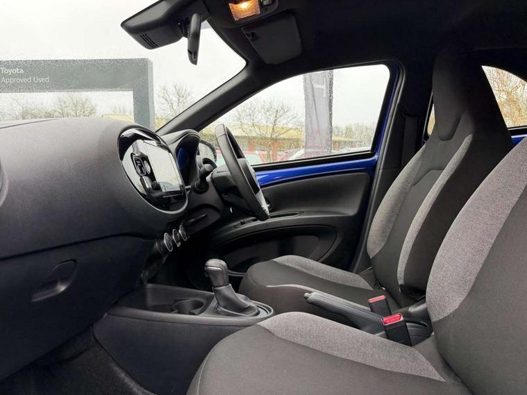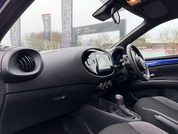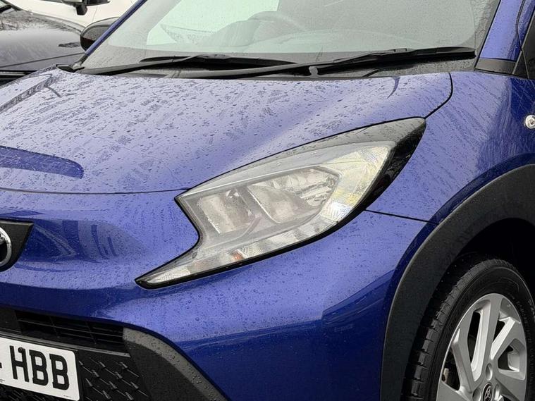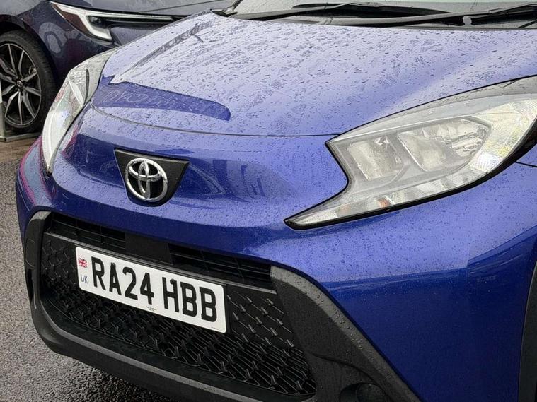 4.2" TFT colour screen, Adjustable speed limiter, Analogue speedometer, Bluetooth connectivity, Digital tachograph, Driver attention alert system, eCall emergency call system, ECO-driving indicator, Electric power steering, Intersection turn assist, Key reminder warning, Noise reduction kit, Pre collision system with emergency steering assist, Reversing camera with static guide lines, Smart phone integration with Apple car play/Android Auto, Speed limit display, Start and stop, Vehicle Stability Control (VSC), 4 speakers, 9" HD multimedia display touch screen with Toyota smart connect, DAB digital audio broadcast, USB connector, Auto headlights, Automatic headlights cut-off, Bicycle towing hook, Black lower front grille, Black rear bumper, Black side protection mouldings, Black upper front grille, Black wheel arch mouldings, Body colour door handles, Body coloured front bumper, Boot door scuff plate, Electric heated door mirrors, Follow me home headlights, Front power windows, Gloss black door mirrors, Headlight cut-off reminder, LED daytime running lights, LED front light guide, LED High mounted stop lamp, Manual day/night rear view mirror, Manual headlight levelling, Pagoda roof, Power adjustable door mirrors, Power back door, Projector halogen headlights, Rain sensor, Rear combination lights LED bulb type, Rear side wing doors, Rear windscreen defogger, Rear windscreen wiper, Short antenna, Variable intermittent windscreen wipers, 12v power outlet - front, 2 seat bench in 2nd row, 3 spoke leather steering wheel, 50/50 split folding rear seat, Adhesive roof headlining, Adjustable speed limiter switch on steering wheel, Audio and telephone switches on steering wheel, Black insert on steering wheel, Boot light, Centre room light, Chrome interior door handles, Chrome surround on air conditioning buttons, Clean air filter, Fabric upholstery, Floor mats, Front and rear cup holders, Front head rest deco art, Front head restraints, Gear shift indicator, Height adjustable driver seat, Intelligent adaptive cruise control switch on steering wheel, ISOFIX child restraint system on rear seats, Lane departure alert switch on steering wheel, Leather gearshift knob, Light grey roof lining, Manual air conditioning, Manual tilt steering wheel, Manually reclining and sliding driver seat, Manually reclining and sliding front passenger seat, Multimedia switches on steering wheel, Pollen filter, Rear door pockets, Rear head restraints, Resin console box storage, Satin silver insert on gear shift knob, Silver stitching on gear shift knob, Single compartment glovebox with lights, Single front passenger seat, Soft tonneau cover, Sun visors with mirror on driver and passenger side, Voice recognition switch on steering wheel, Toyota safety sense pack - Aygo X, Anti lock braking system + Electronic brake force distribution, Child safety door lock, Emergency brake light signal (EBS), Hill start assist control (HAC), Passenger airbag on/off switch, Seat belt reminder for front and rear seats, Supplement restraints system (SRS) - 6 airbags, Traction control, Tyre pressure warning system, Immobiliser, Remote power door locks, Black air vent surround, Black wheel centre caps, Tyre repair kit,