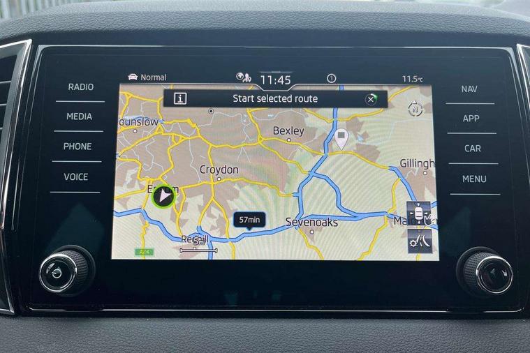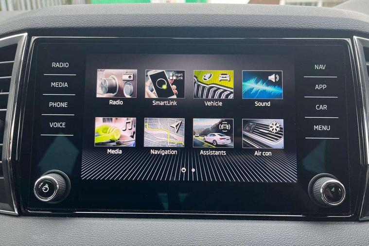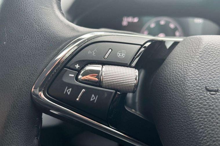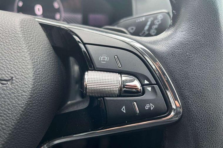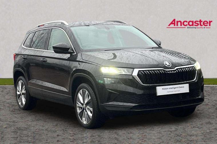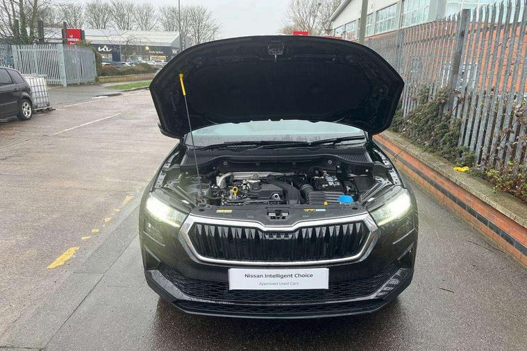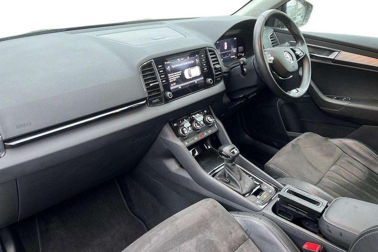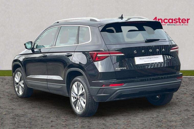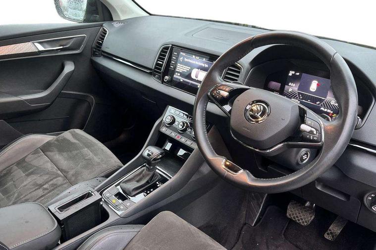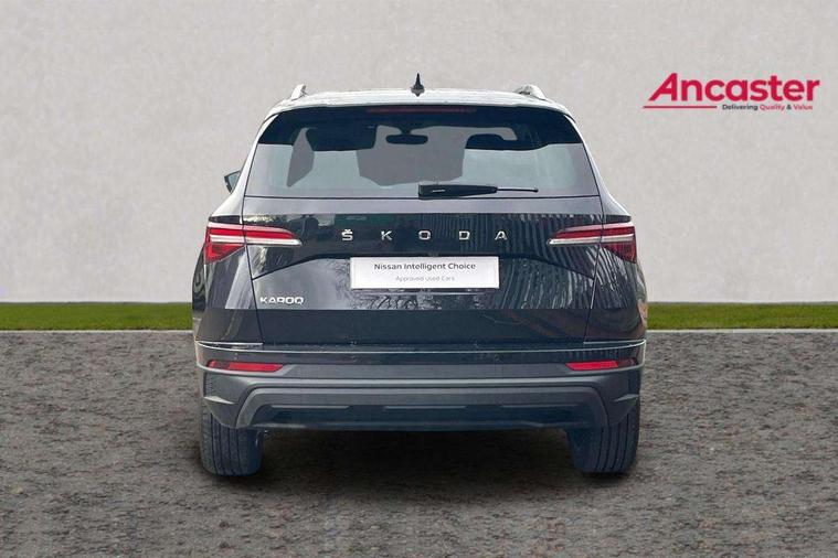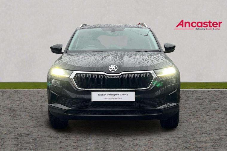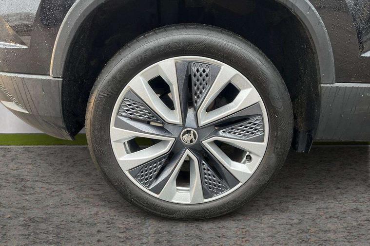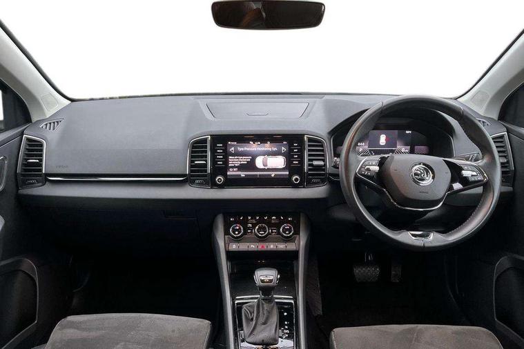 8" Digital display, Care connect, Driver fatigue sensor, Emergency services call system, Outside temperature gauge, Service interval indicator, SmartLink wireless for Apple and wired for Android, Start/stop system with regenerative braking, USB C Port x 2 in front centre console, 8 Speakers, DAB radio with Bluetooth, USB connection, Acoustic glass, Aero front windscreen wipers with intermittent function, Auto dimming rear view mirror with light and rain sensors, Black electric window control buttons, Body colour door mirrors and handles, Dynamic headlight range control with cornering light function, Electric front and rear windows with child proof lock, Heated rear windscreen, LED daytime running lights, LED rear lights with high functionality welcome effect and dynamic indicators, Light assistant (coming/leaving home/tunnel light), Plastic scuff plates, Privacy glass, Rear side wing doors, Rear spoiler, Rear window wiper with washer system and intermittent control, Safety reflectors on front doors, 1.5 litre bottle holders in driver and front passenger door panels, 12V socket in boot, 12v socket in front centre armrest with storage compartment and rear air vents, 2 spoke leather heated multifunction steering wheel with DSG paddles, 2 x Tablet holder, 3 rear height adjustable headrests, 3 seat bench in 2nd row, 4 foldable roof handles with rear coat hooks, Black floor carpet, Chrome inner door handles, Decorative door sills with KAROQ badging, Double sided boot floor, Foldable hooks in the boot, Front head restraints, Height adjustable front three point seats belts with tensioners, Height/reach adjust steering wheel, Ice scraper, Illuminated glovebox, Illuminated luggage compartment, Isofix child seat preparation for front passenger seat, Isofix child seat preparation outer rear, Manual lumbar support for front seats, Pen holder, Pollen filter, Rear boot cover, Rear reading lights, Rubbish bin door, Safety vest holder, Single front passenger seat, Storage box in upper central dashboard closed, Sunvisors with illuminated vanity mirrors, Textile floor mats, Ticket holder, VarioFlex seats with standard rear seat release, Boot pack - Karoq, Chrome roof rails + chrome pack - Karoq, Parking pack - Karoq, Automatic door unlocking in case of crash, Automatic fuel cut off in case of crash, Child locks on rear doors, Driver airbag, Electronic parking brake with auto hold function, Emergency rear braking signal, ESC including ABS, MSR, ASR, EDS, HBA, DSR, RBS, MKB and traction control, Front side airbags, Hill hold control, Knee airbags, Passenger airbag with switch-off function, Pedestrian monitor, Seatbelt reminder signalisation and pretensioner for all seats, Three point seatbelts rear, Two tone horn, Tyre pressure display, Tyre pressure monitor, Alarm with interior monitoring, back up horn and tilt sensor with safe function, Electronic engine immobiliser, Keyless entry and start/stop, Remote central locking with 2 remote folding keys, Chrome framed air vents, 18" Procyon silver alloy wheels with anthracite aero inserts, Anti-theft wheel bolts protection, Storage on wheel cover, Tool kit,