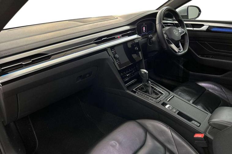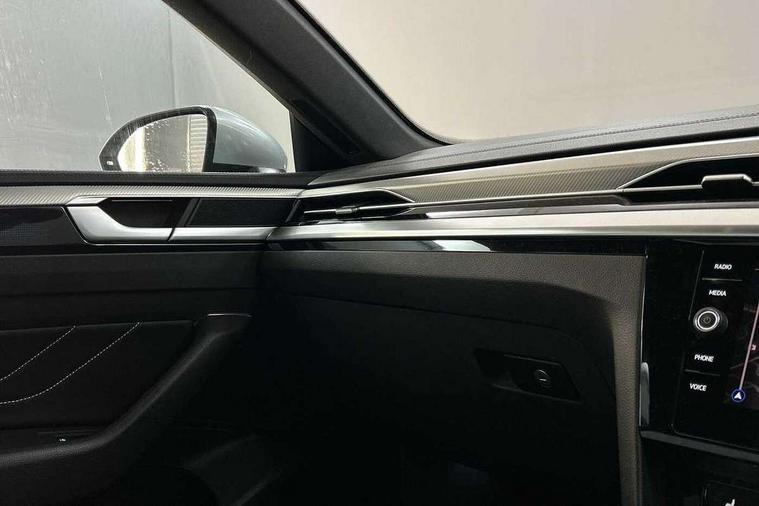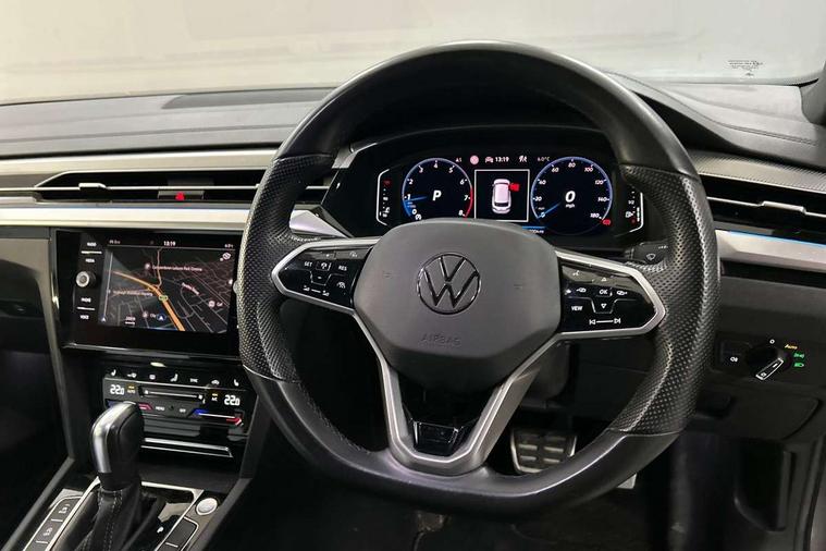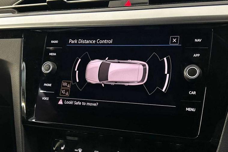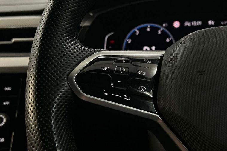 Adaptive cruise control (ACC) with speed limiter, front assist (reacting vehicles pedestrian and cyclists) and follow to stop, App connect including wireless Apple CarPlay, Camera for warning system, Digital cockpit with 10.25" high resolution TFT display screen with customisable menus and information, Driver alert system with fatigue detection, Driver profile selection including ECO function, Dynamic road sign display, eCall - Emergency call service for SOS calls to emergency response, Hands free boot opening, Press and drive key, Progressive steering, Speedo and rev counter, electronic odometer, trip, service interval display and exterior temperature gauge, Travel assist - Lane keeping assist and traffic jam assist, Voice activation for telephone and navigation, Start/stop function with battery regeneration, Premium USB cable in choice of either Apple or Android smartphone compatibility, Auto dimming interior rear view mirror, Body colour door handles, Body colour side skirt, Body coloured top and matt black lower door mirrors with integrated indicators, Chrome plated radiator grille inserts and light switch surrounds, Chrome side window surrounds, Dynamic headlight range control, Electric folding door mirror, adjustable, heated with front passenger exterior mirror lowering function, Front and rear electric windows, Front and rear stainless steel door sill protection, Front windscreen washers and wipers with 4x interval delay, Heat insulating side and rear windows, Heated rear windscreen, Heated windscreen washer jets, High level 3rd brake light, LED rear combination lamp with dynamic indicators, LED rear number plate lights, Left and right chrome effect trapezoid dummy exhaust tailpipe surrounds, Panoramic sunroof with tilting and sliding including integrated roller blind, R Line design body coloured bumpers, Rain sensor, Rear fog lamp on one side and reversing lamp on both sides, Rear windscreen washer and wiper with interval delay, 12V socket in front centre console, 12V socket on rear of front centre armrest, 3 rear head restraints, 30 colours options interior ambient lighting, 60:40 split folding rear seat backrests with centre armrest, Air care climatronic 3 Zone electronic air conditioning with automatic air recirculation, Black roof lining, Chrome trim on upper and lower air vents extending across cockpit, Driver and front passenger sunvisor with vanity mirror, Front + rear carpet mats, Front cupholders x 2, Front footwell illumination, Front sports comfort seats, Glovebox, Heated front seats, Height/reach adjust steering wheel, Isofix child seat preparation easy fit for two outer rear seats, Luggage compartment lighting, Removable luggage compartment cover, Split folding front seat backrest with front centre armrest, Stainless steel pedals, Two LED front reading light, 3 rear three point seatbelts, ABS+EBD+Brake assist, Driver airbag and front passenger airbags with deactivation switch including driver knee airbags, Electronic parking brake, Electronic stability control (ESC) and Electromechanical brake booster, Front disc brakes, Front side airbags with curtain airbags, Hill start assist, Pro active occupant protection to detect critical situations with elevated accident potential from the front, Rear disc brakes, Three point height adjust front seatbelts + pretensioners, Two tone horn, Tyre pressure loss indicator, Warning buzzer for seatbelts if unfastened, Warning triangle, Alarm with interior protection with deactivation via infotainment system, Electronic engine immobiliser, Keyless entry system including start/stop button on centre console, Aluminium decorative inserts, Chrome trim on lower doors in front and rear, Leatherette insert on door and side trim panel in foam film, Piano black decorative inserts in centre console,