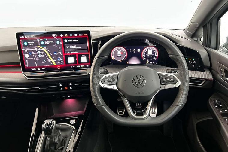 Activated carbon canister, Adaptive cruise control (ACC), Advanced driver attention and drowsiness monitor, Dynamic road sign display, Dynamic steering, E-Sim card for online connectivity, eCall emergency call system, Multi-color Digital cockpit pro, selection of different info profile possible, Multifunction front facing camera for distance control, Navigation system, Oncoming vehicle braking when turning including swerve support, Preparation for light assist system, Speed limiter, Speedo, rev counter, electronic odometer, trip, service interval display, exterior temperature and fuel gauge, Traffic jam assist, Voice enhancer and voice control, Warning signal and warning light for front and rear seatbelts not fastened, We connect plus preparation, We connect preparation, Wireless app connect, Petrol Particulate Filter, Start-stop system with battery regeneration (recuperation - energy recovery during braking), XDS electronic differential lock for improved traction and handling, 2 USB C ports in front, 2 USB charging sockets on the centre console in the rear charging capacity upto 45W, Comfort telephony + wireless charging, without wireless aerial connection, Digital radio reception (DAB), Diversity antenna for FM reception, Gaming platform via car app, Infotainment system with 12.9" display, Mobile phone interface with inductive charging feature, 3rd brake light, Auto headlights, Automatic headlamp activation with Coming home and Leaving home feature, Body colored bumpers in R-Line style, Body colour door handles, Exterior ambient lighting with illuminated door handles, Exterior mirrors convex on the left and aspherical on the right, Front and rear electric windows, Heat insulating windshield made of laminated glass, LED daytime running lights, Rear exhaust tailpipe, Rear fog light on one side and reversing lights on both sides, Rear side wing doors, Rear windscreen washer and wiper with interval delay, Remote electrically foldable door mirrors, puddle lights and reverse activated passenger's door mirror, Welcome light with surround lighting, 12V socket in front centre console, 12V socket in luggage compartment, 3 rear head restraints, 3 seat bench in 2nd row, Ambient lighting with 30 colour including LED light unit in front footwell with selectable light colour, Brushed stainless steel pedals, Carpet mats, front and rear, Chrome plated radiator grille inserts, air vent surrounds and light switch surrounds, Front centre armrest, Integrated front head restraints, ISOFIX anchors for child seats on outer rear bench seats and on front passanger seat compatible for i-Size, Leather gearshift handle, Luggage compartment lighting, Premium sports seats in front, Rear cupholder and loadthough, Single front passenger seat, Soul black instrument panel, Split folding backrest with centre armrest and unsplit rear seat bench, Storm grey roof lining, Sun visors with illuminated vanity mirrors, 3 point height adj front seatbelts + pretensioners, 3 rear three point seatbelts, ABS, Autonomous emergency braking front assist with pedestrian and cyclist monitoring, Child locks on rear doors, Driver and front passenger airbag with front passenger airbag deactivation, Electronic parking brake with auto hold, ESC (Electronic Stability Control), Extended pedestrian protection measures, Rear disc brakes, Two tone horn, Tyre pressure loss indicator, Volkswagen roadside assistance, Anti theft wheel bolts, Preparation for alcohol interlock, Decorative inserts carbon grey for dashboard and front door trim panels,